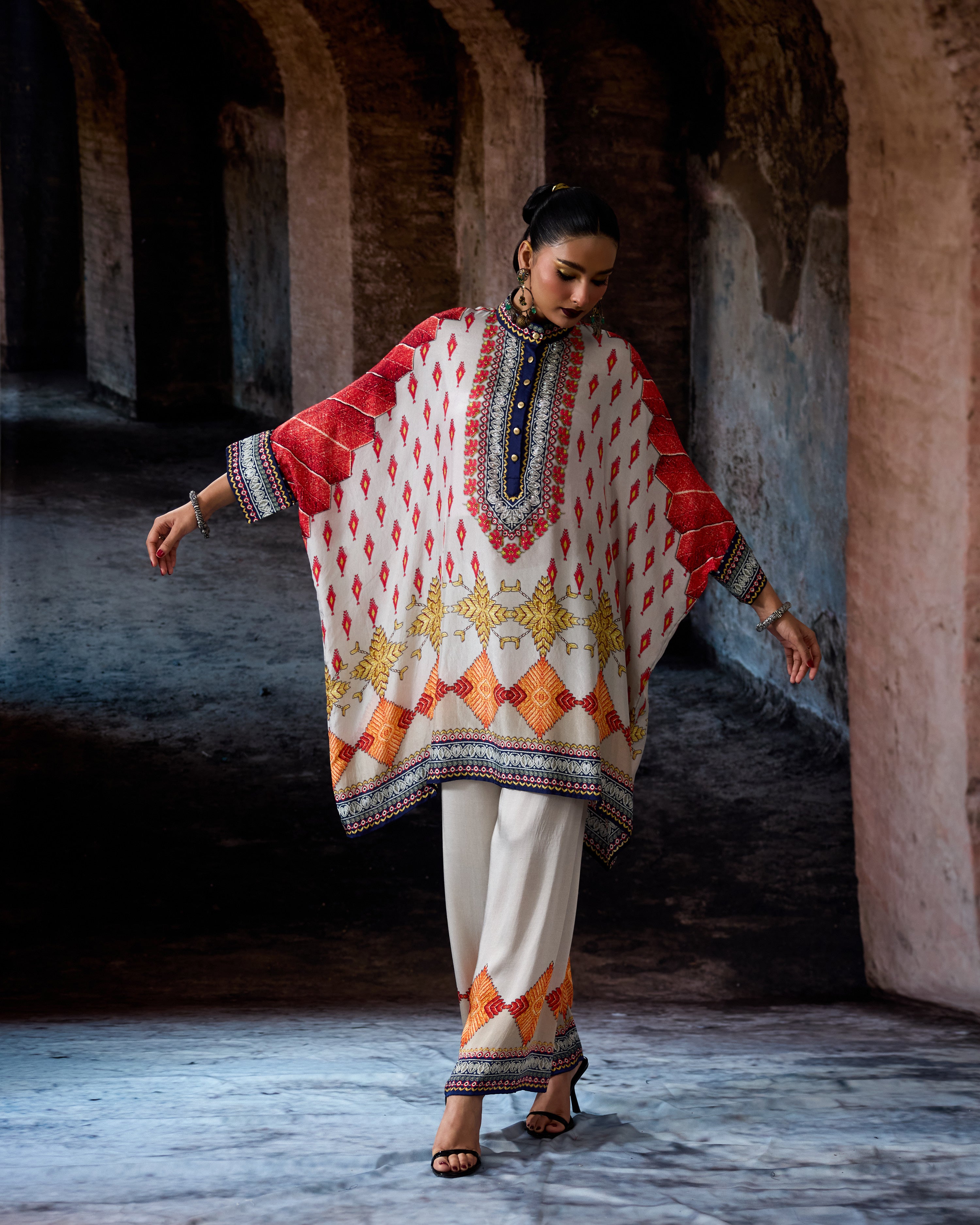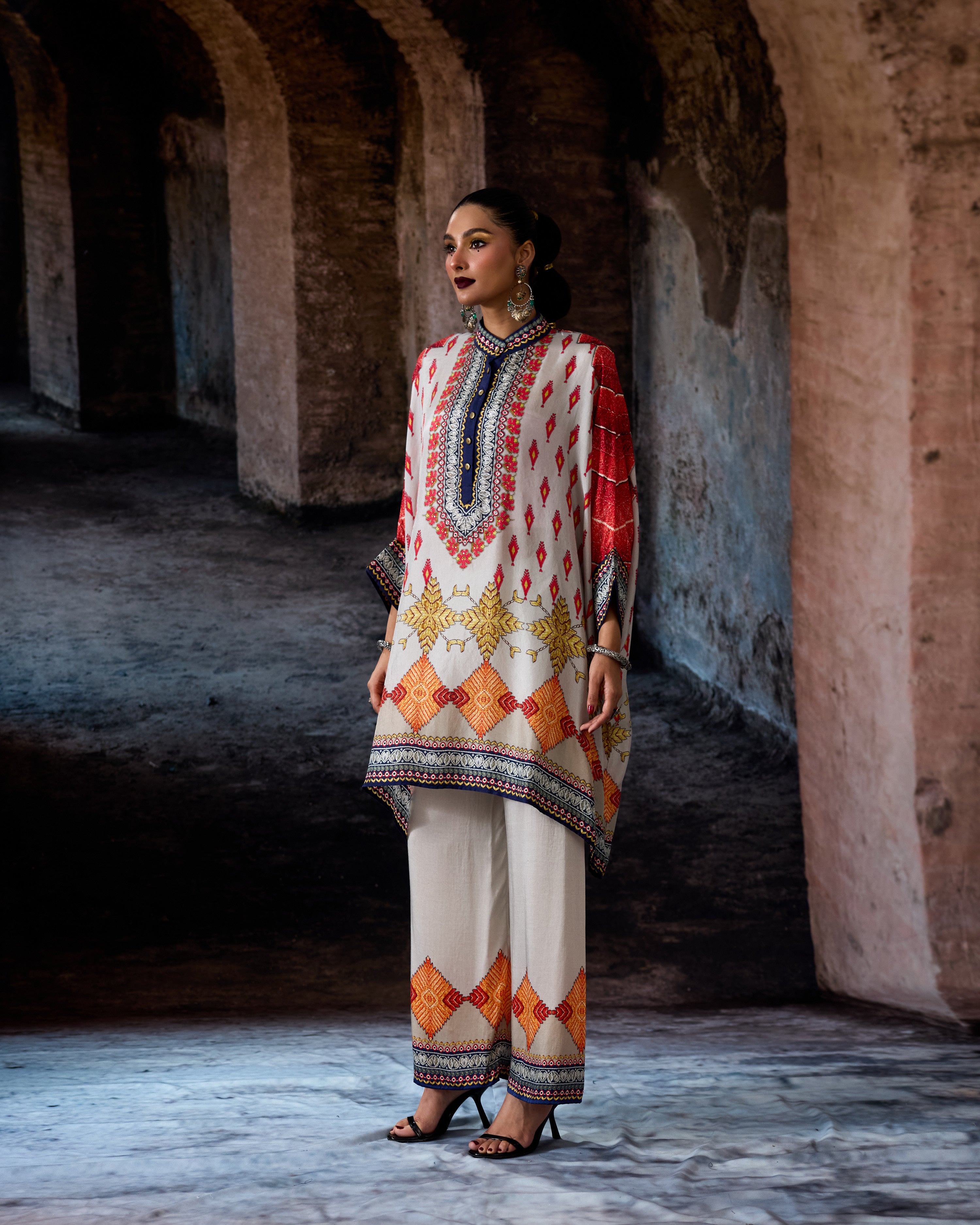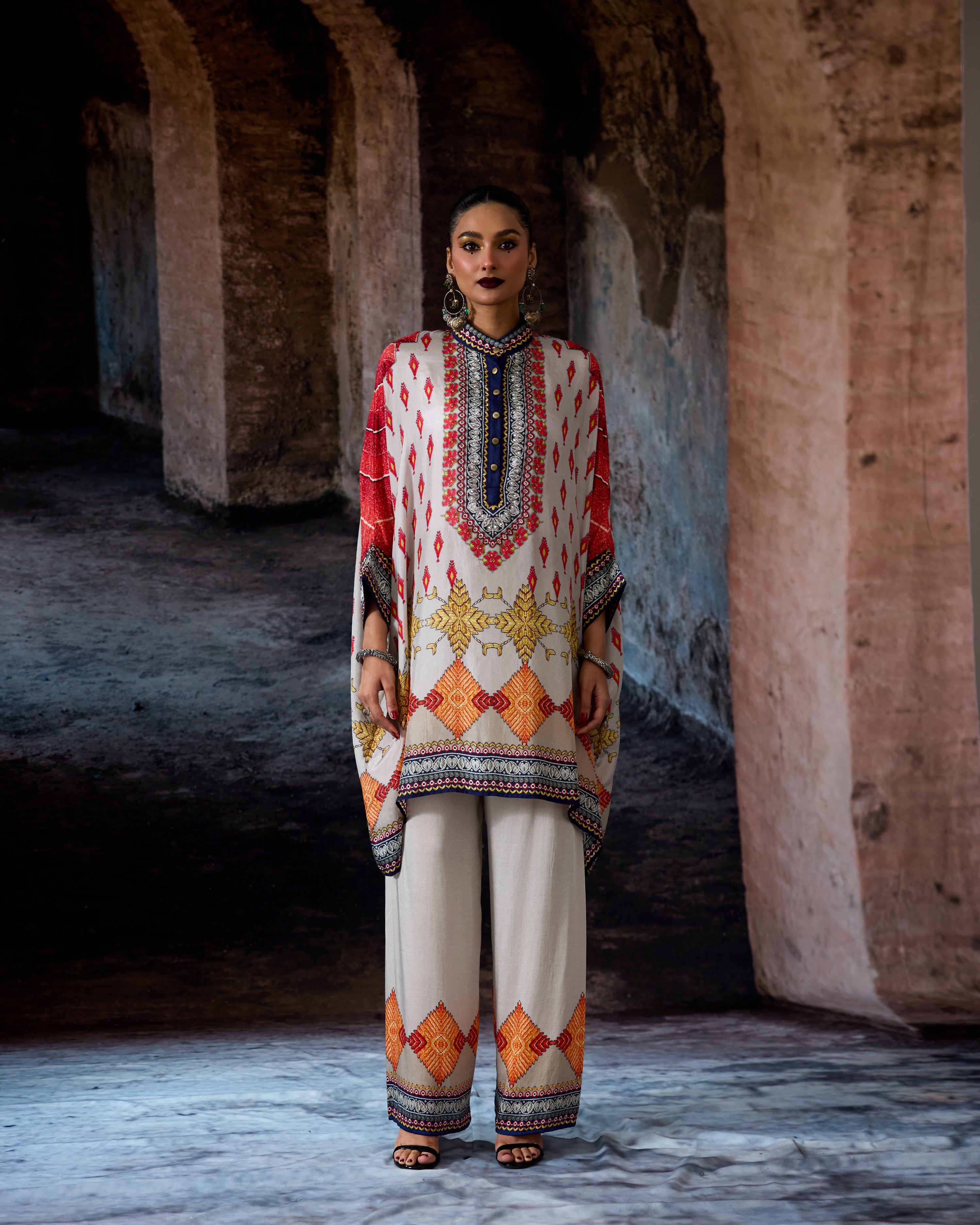 This tunic comes with a coordinating printed Palazzo pant which can be ordered as per the drop down menu as a set.
