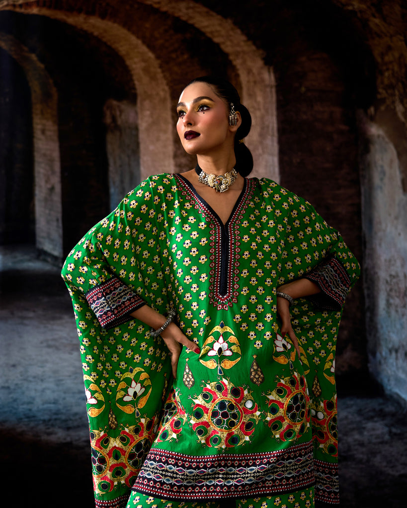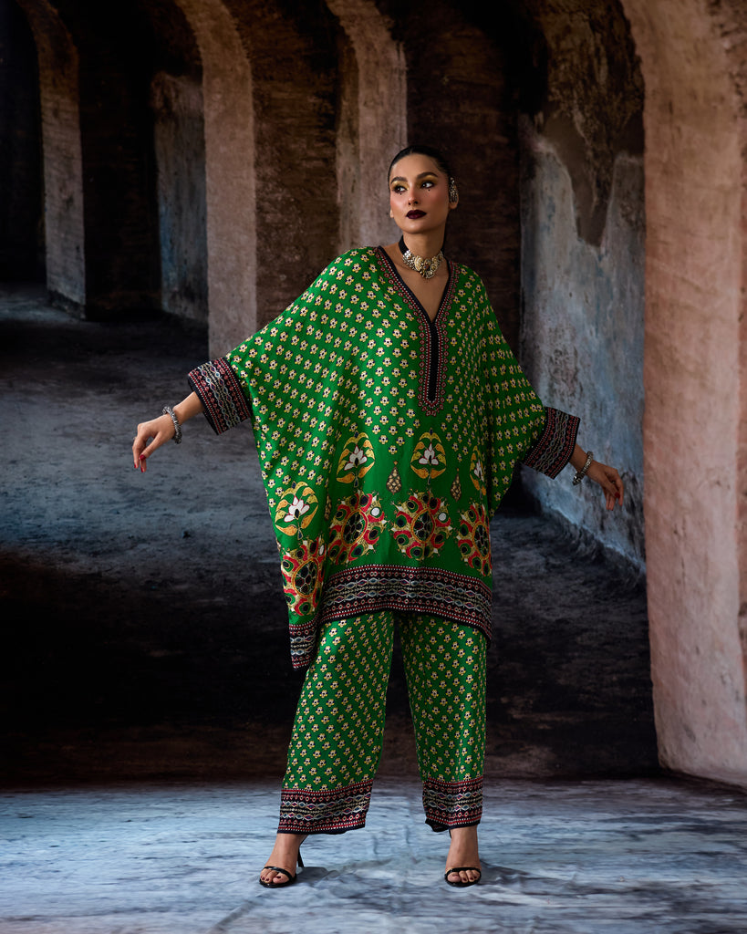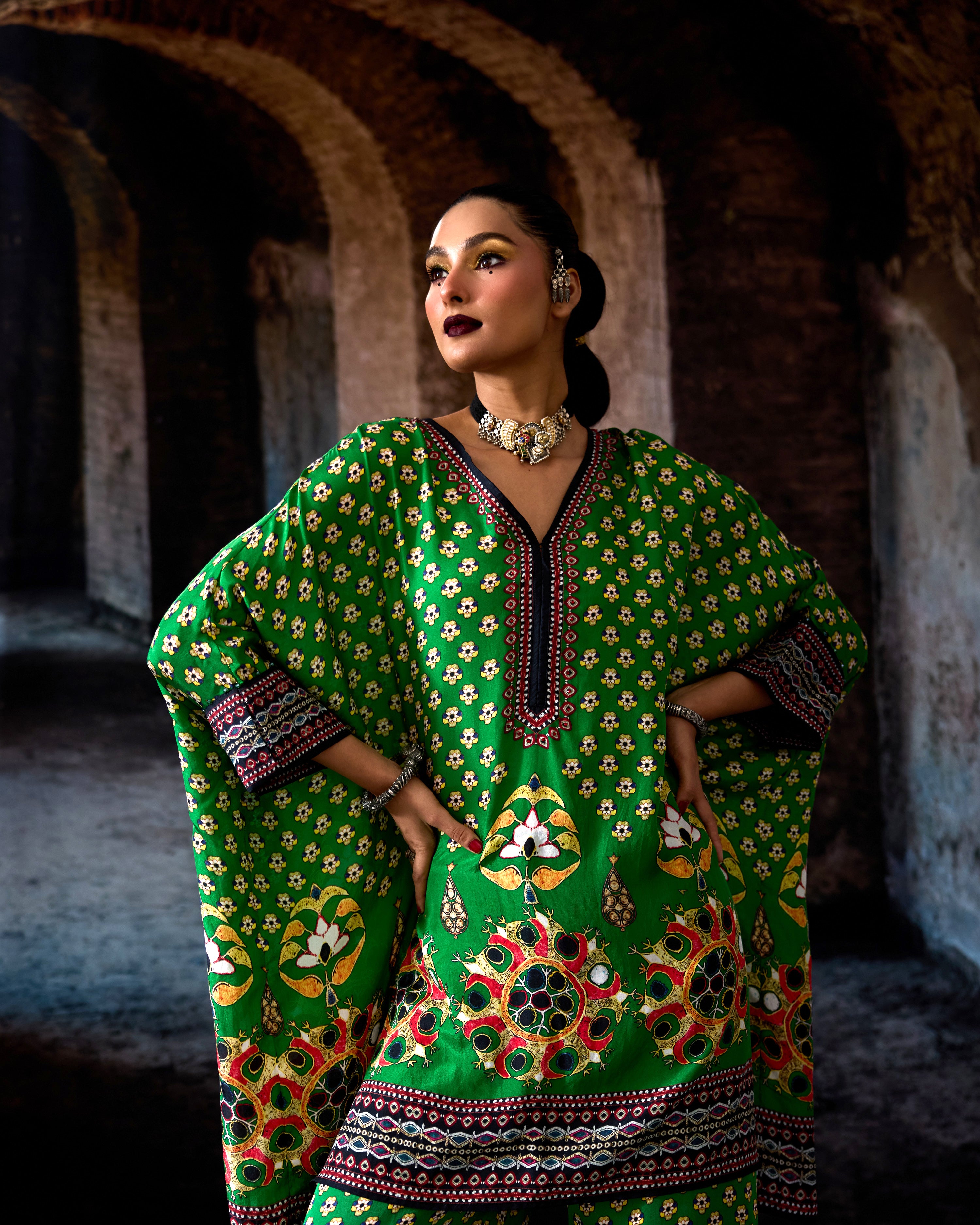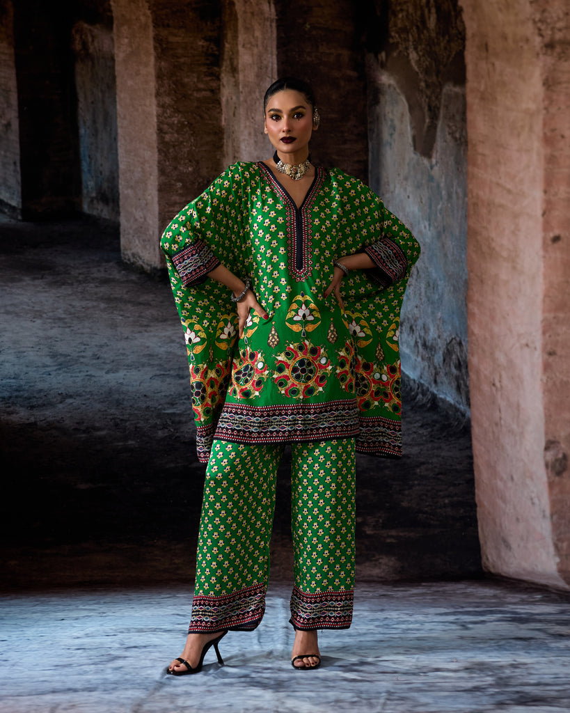 This tunic comes with a coordinating printed Palazzo pant which can be ordered as per the drop down menu as a set.