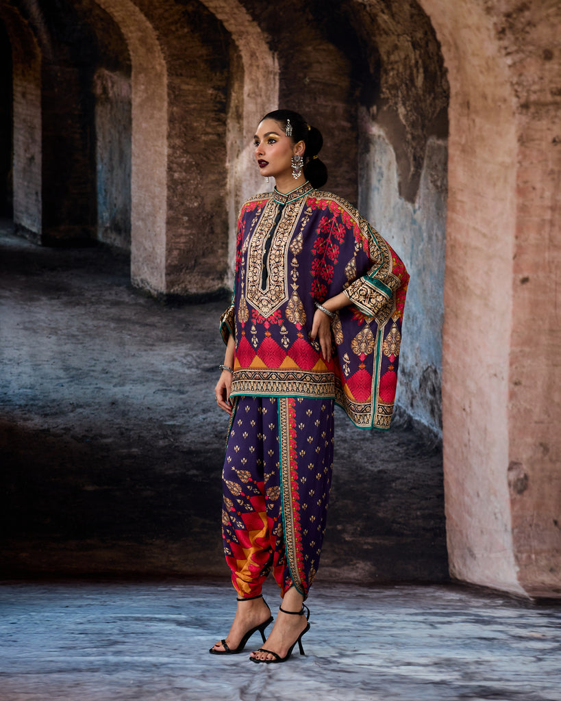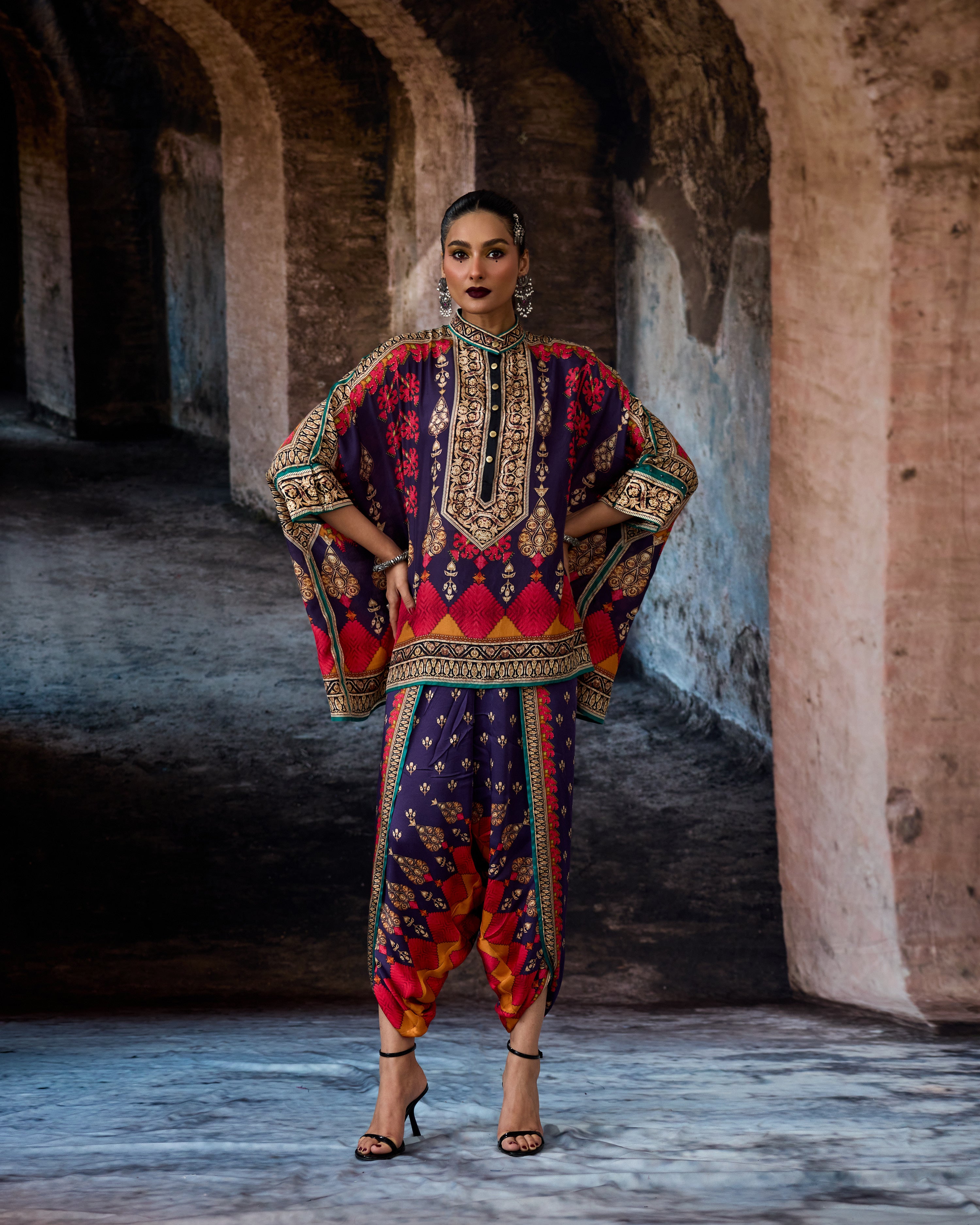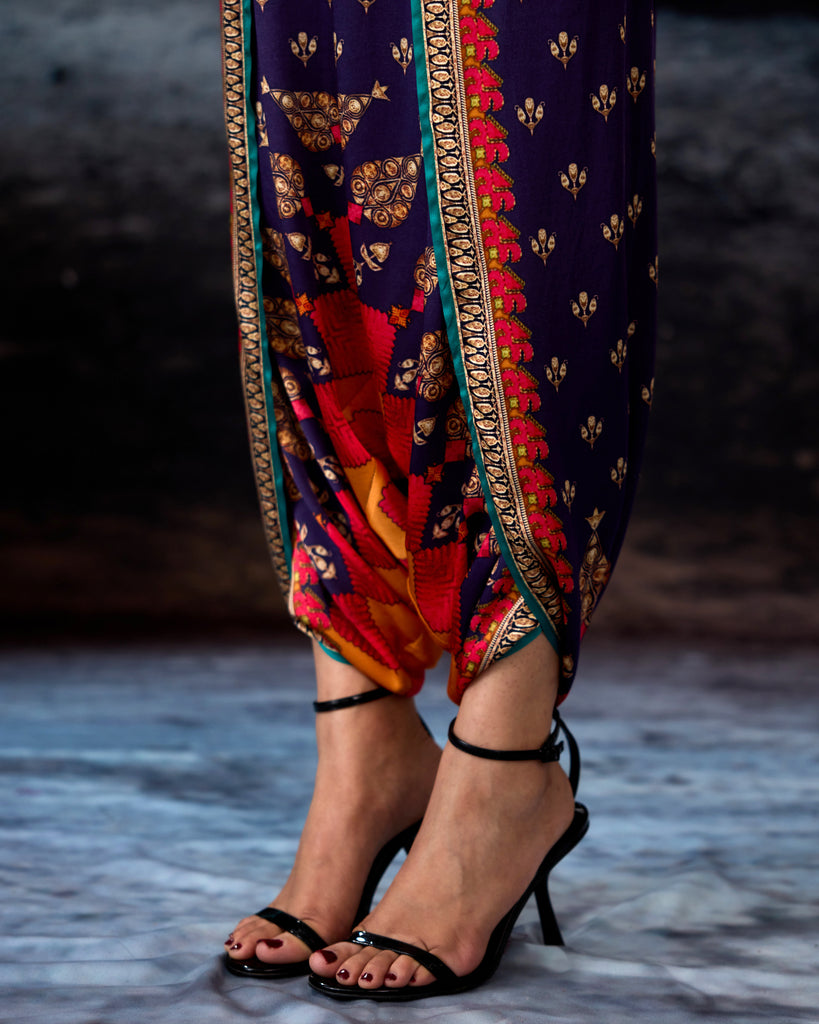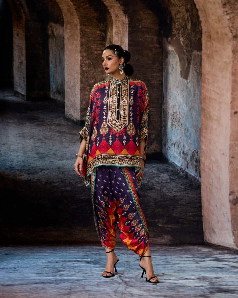 This tunic comes with a coordinating printed Dhoti pant which can be ordered as per the drop down menu as a set.