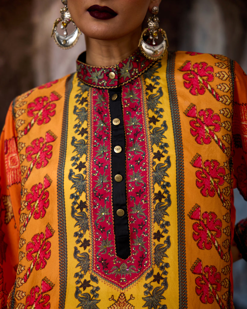 This tunic comes with our coordinating printed Palazzo pant with a printed border which can be ordered as per the drop down menu as a set.