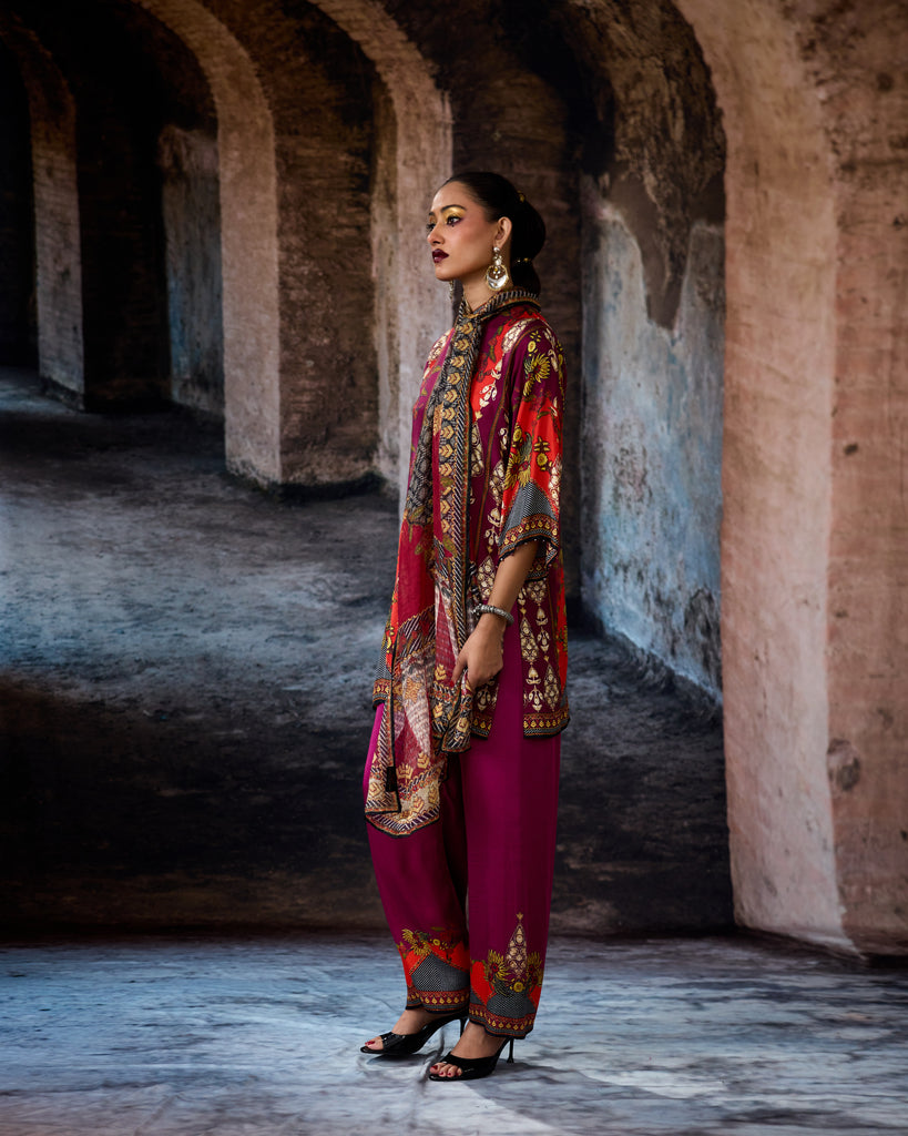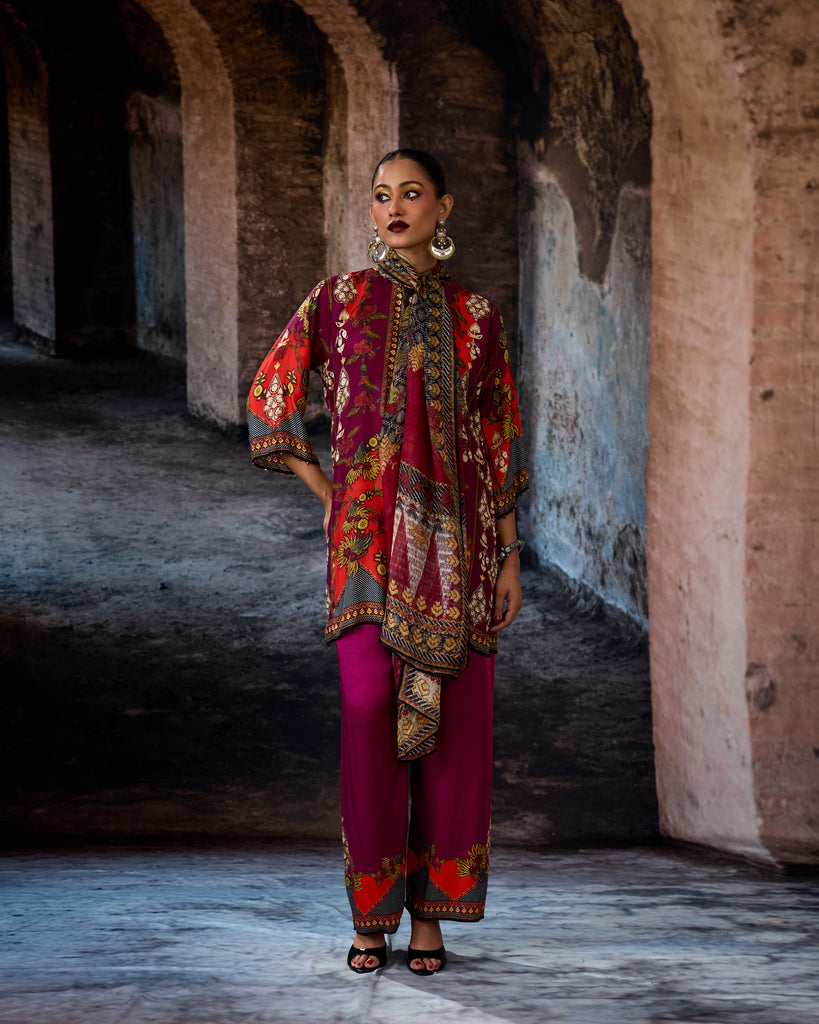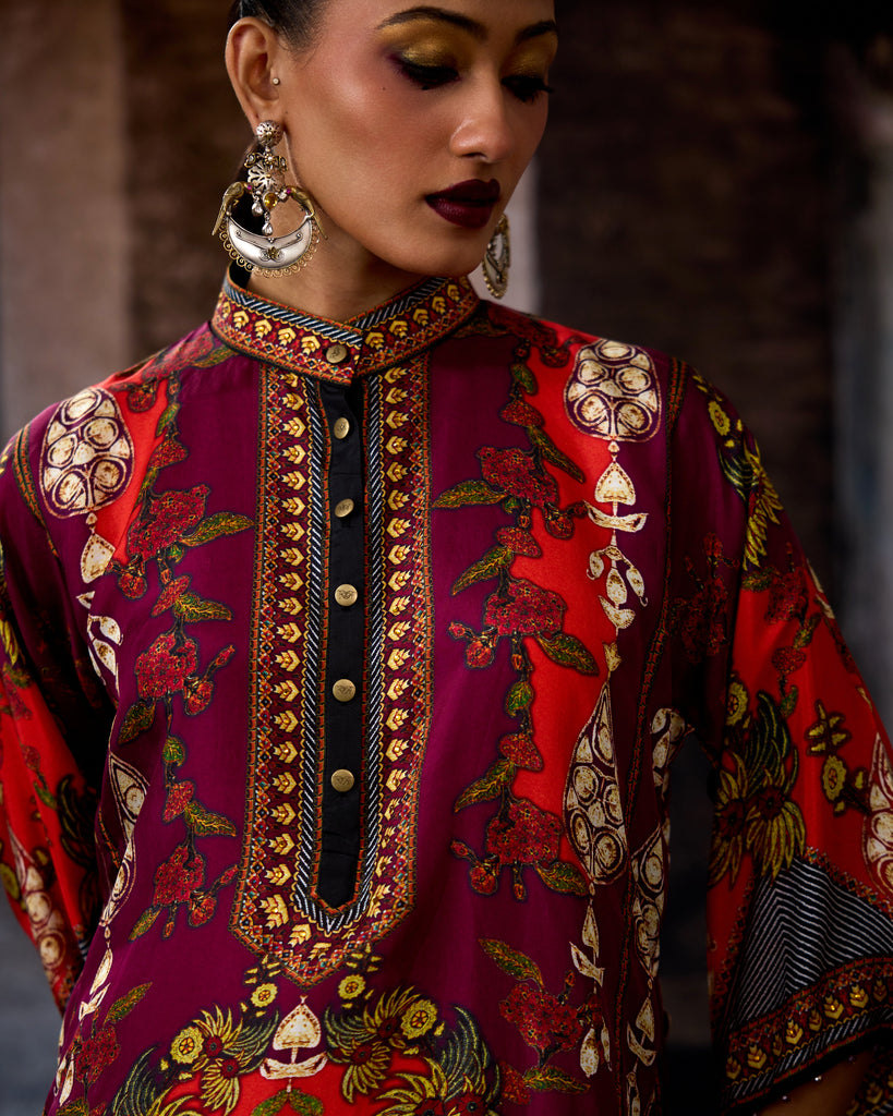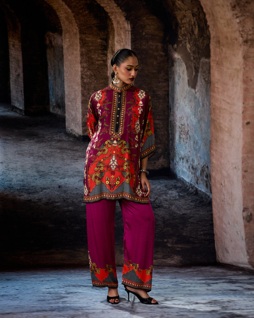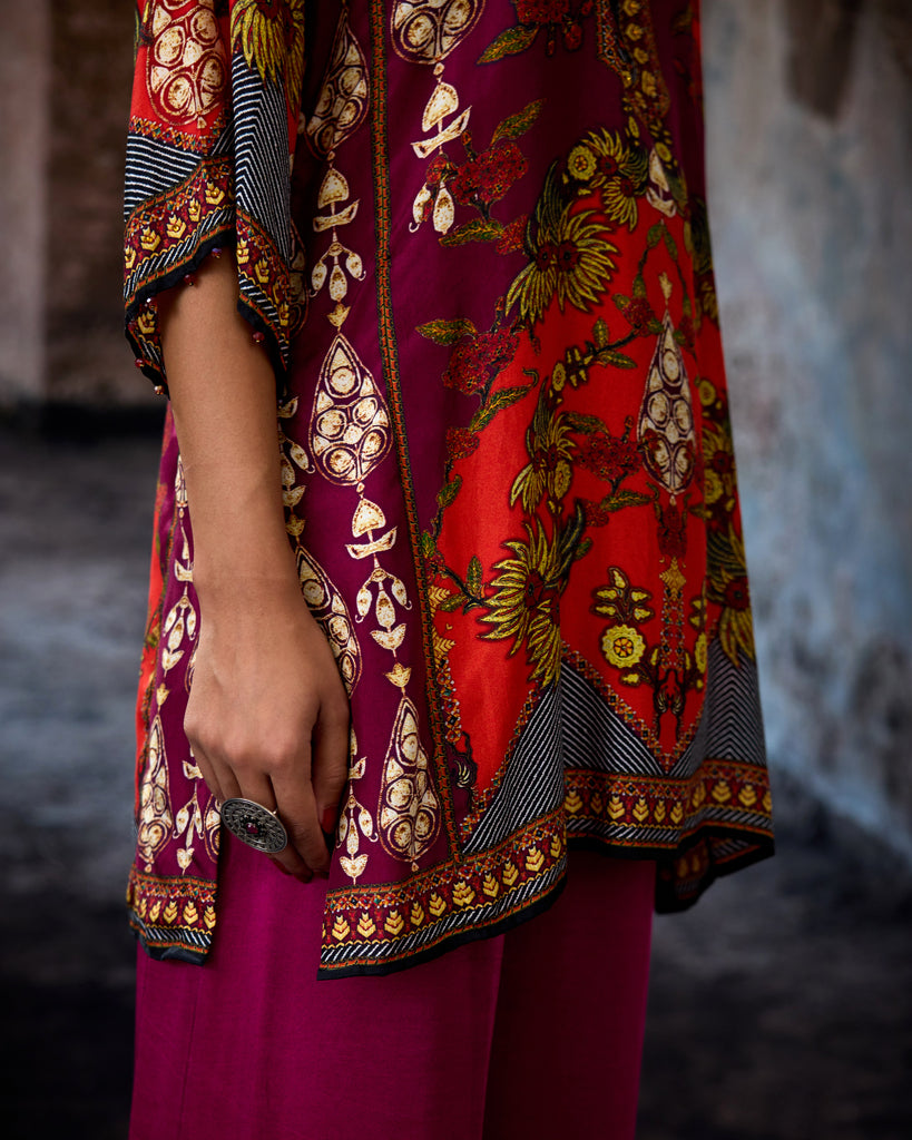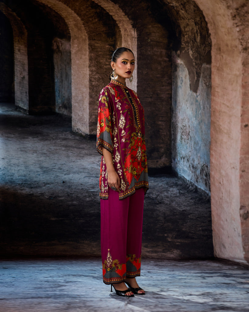 This tunic comes with our coordinating printed Palazzo pant with a printed border which can be ordered as per the drop down menu as a set.