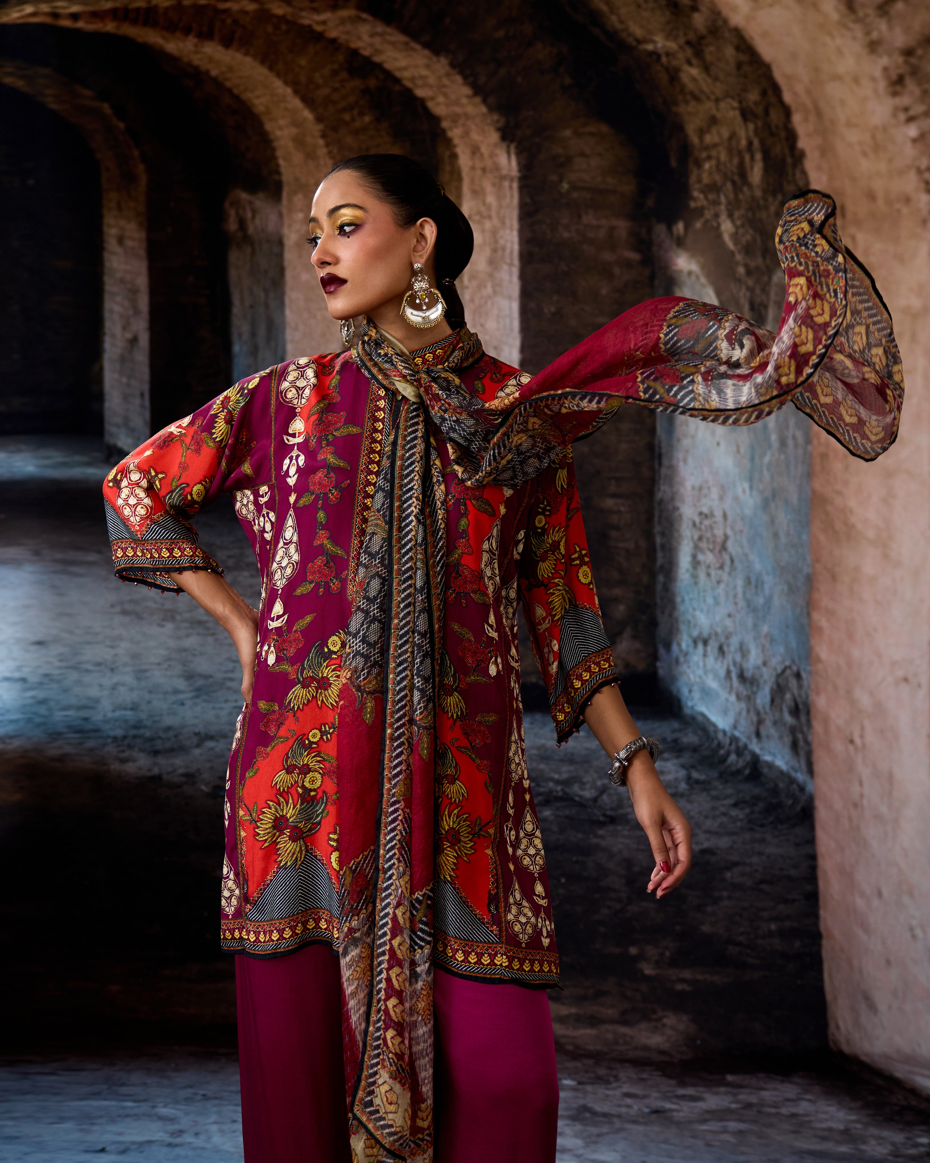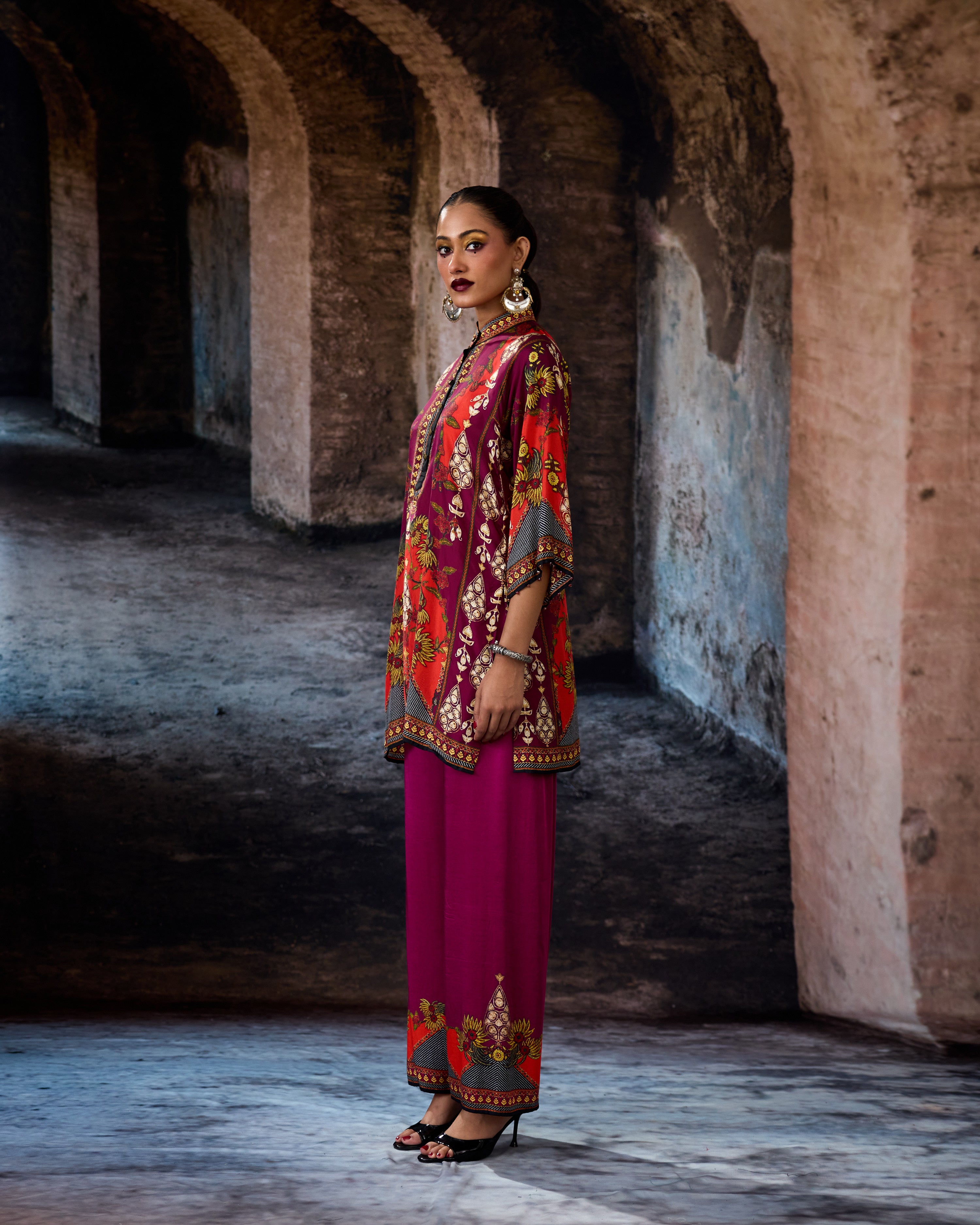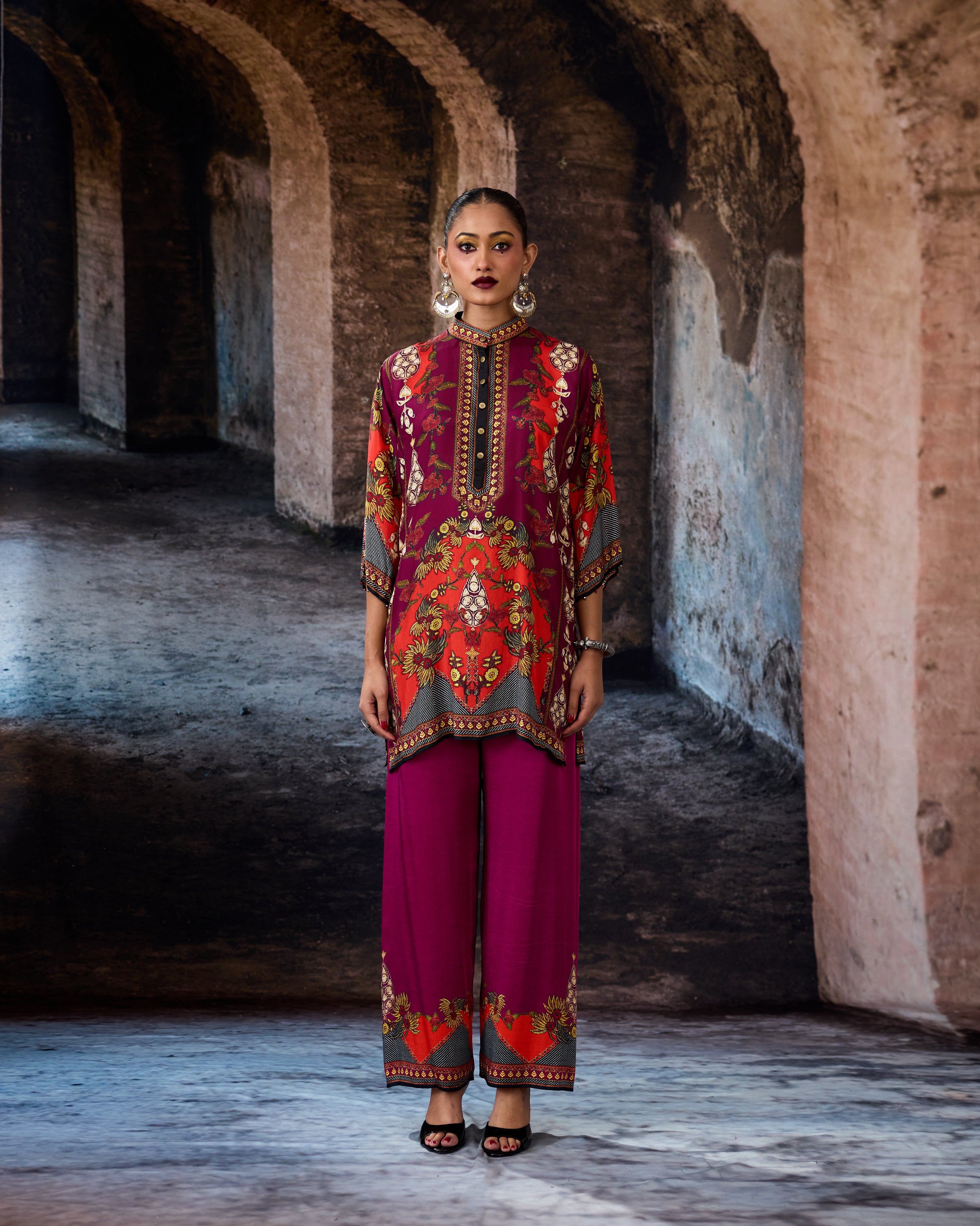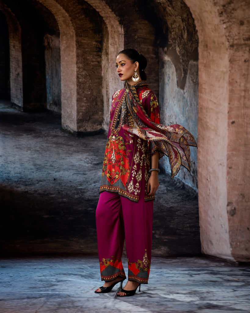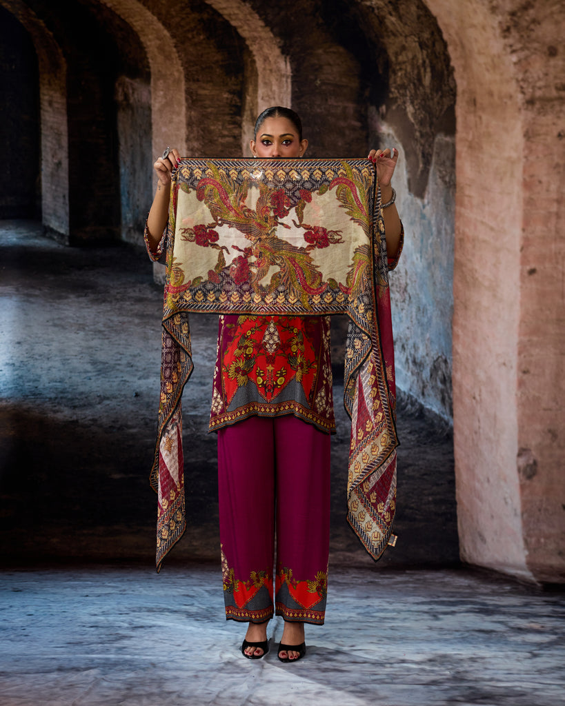 This tunic comes with our coordinating printed Palazzo pant with a printed border which can be ordered as per the drop down menu as a set.
