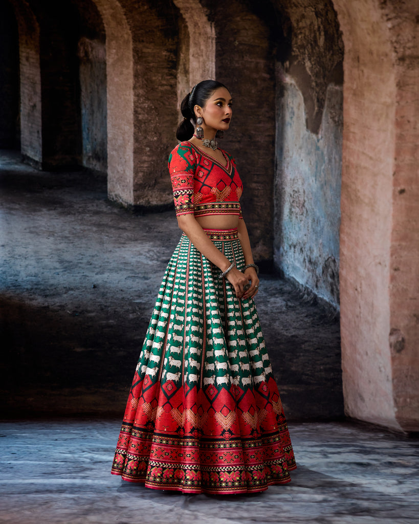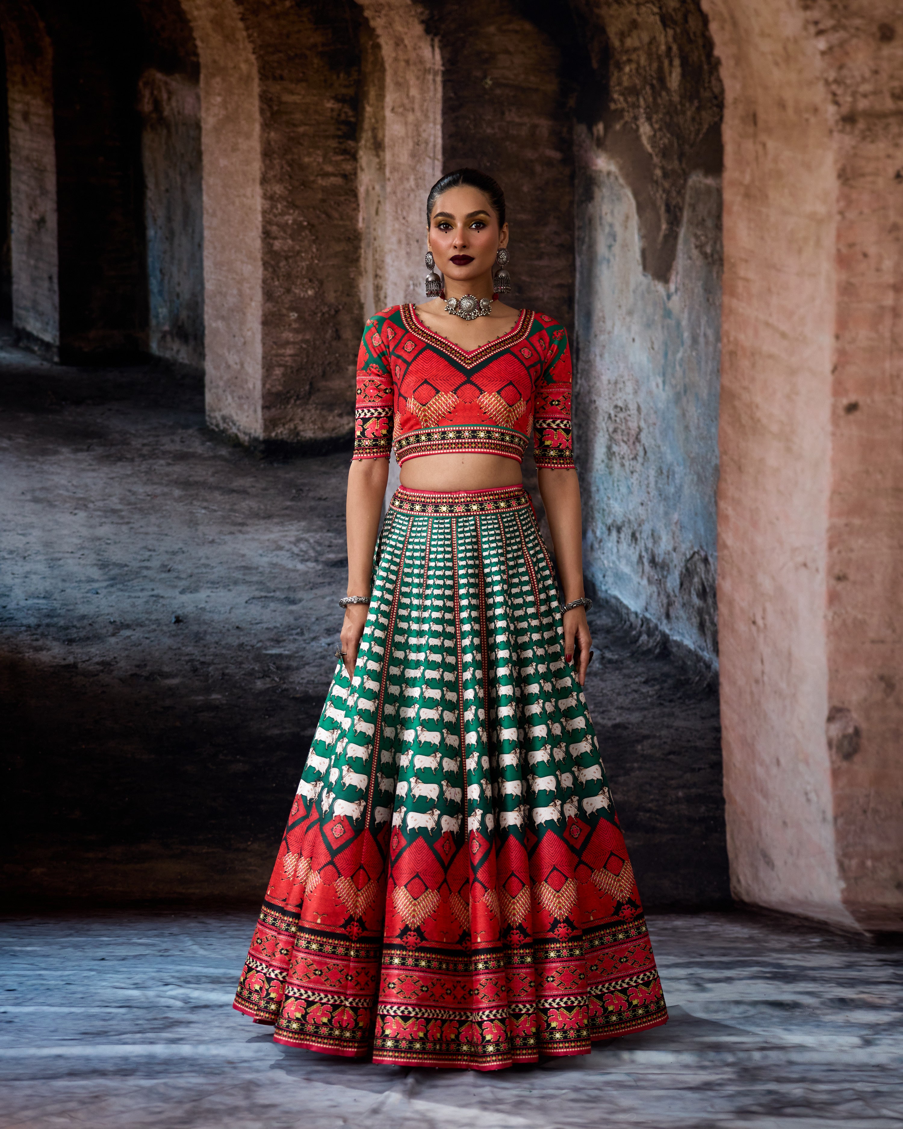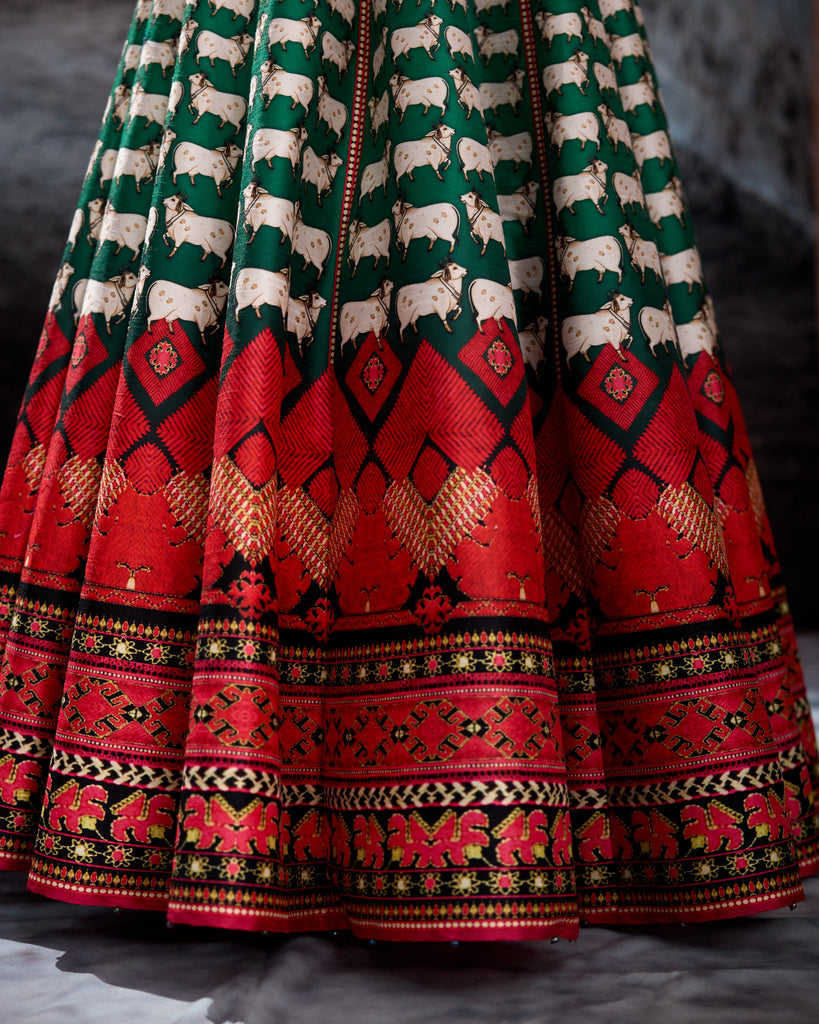 Lehenga Length: 42" - 44" (kindly email us your desired length if to be customised at store@ranawat.com with your order number or whattsapp us at +919810060160)