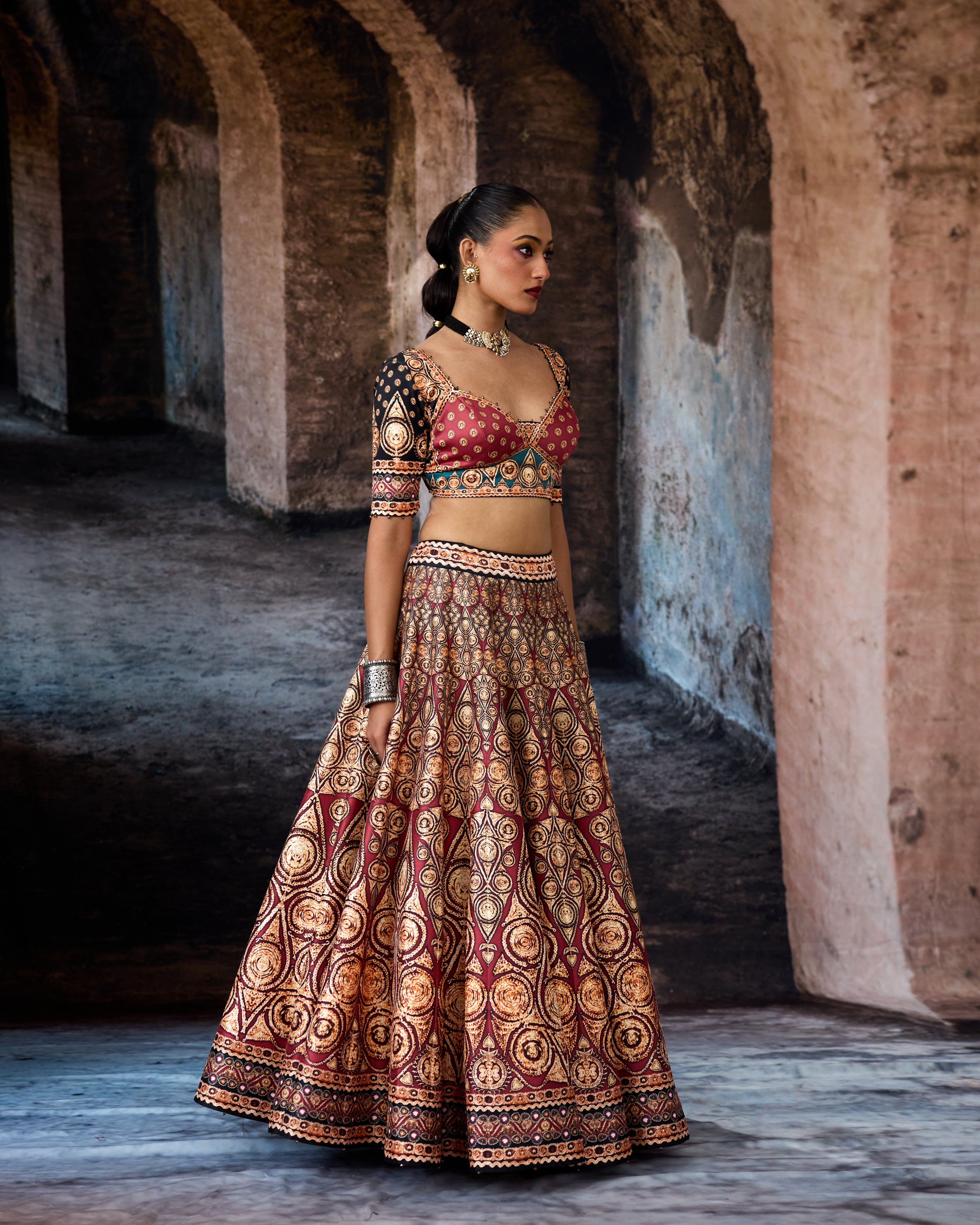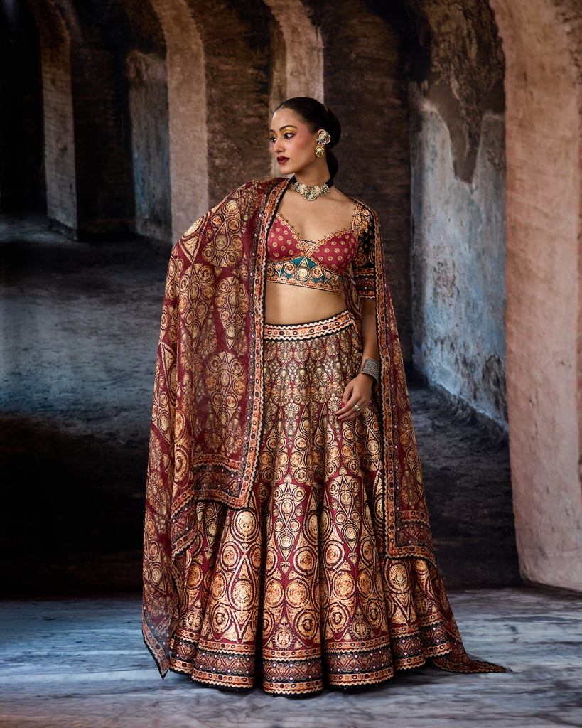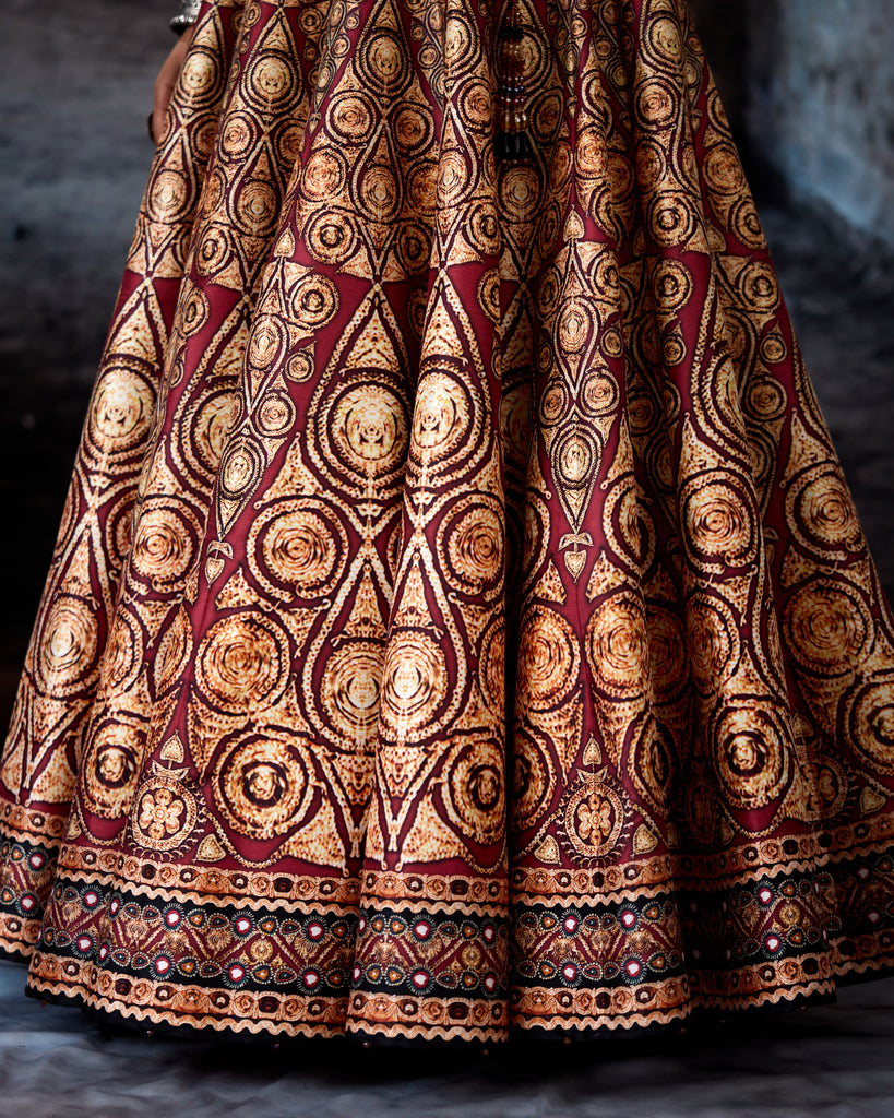 A printed lehenga set.