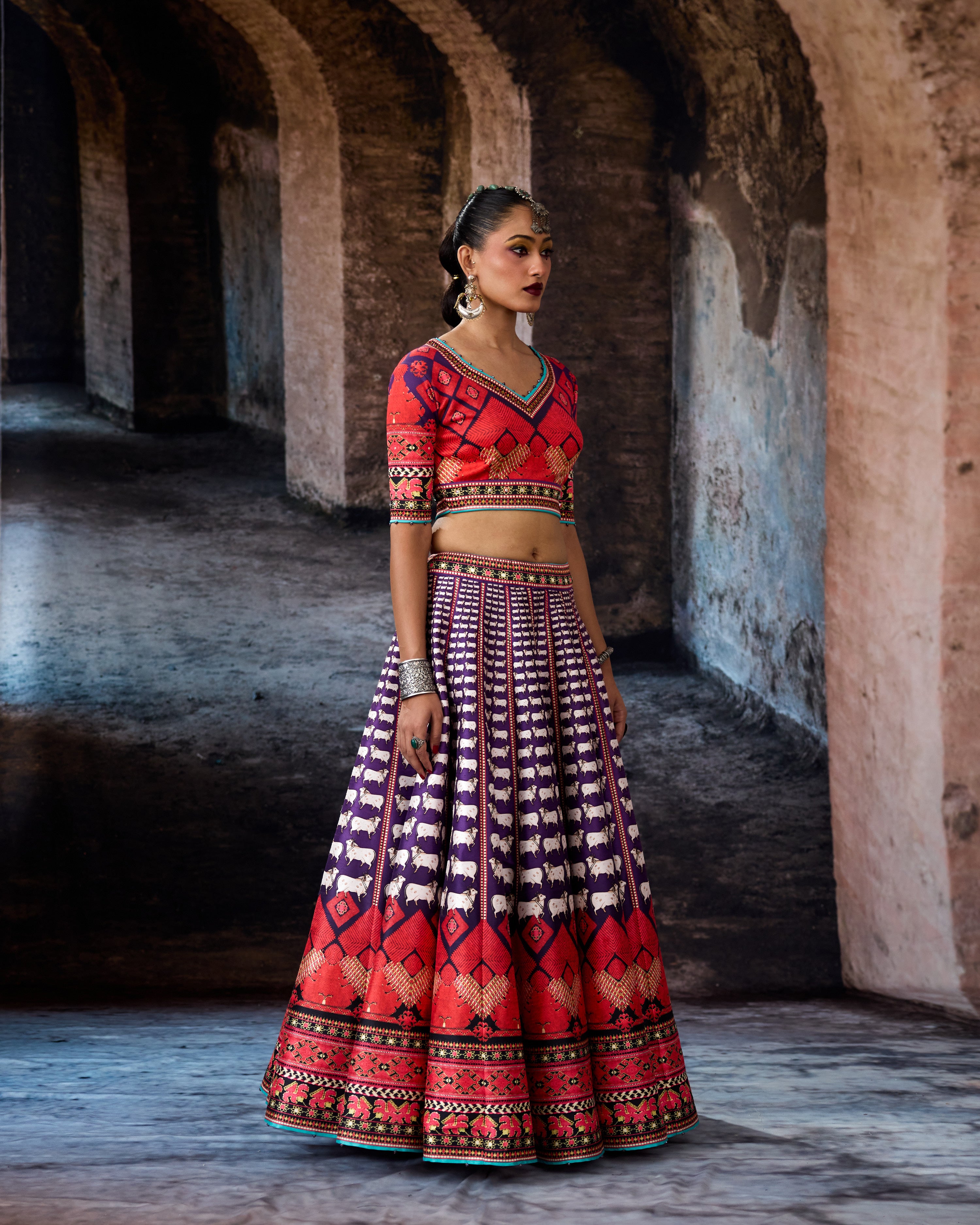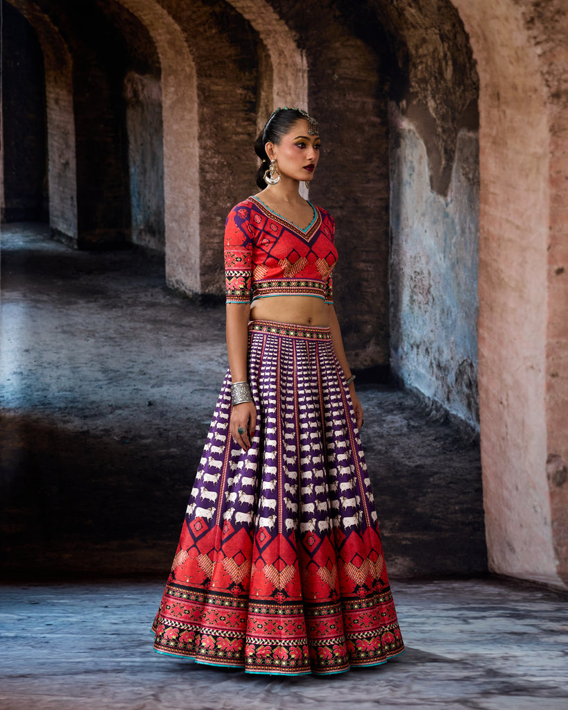 Lehenga Length: 42" - 44" (kindly email us your desired length if to be customised at store@ranawat.com with your order number or whattsapp us at +919810060160)