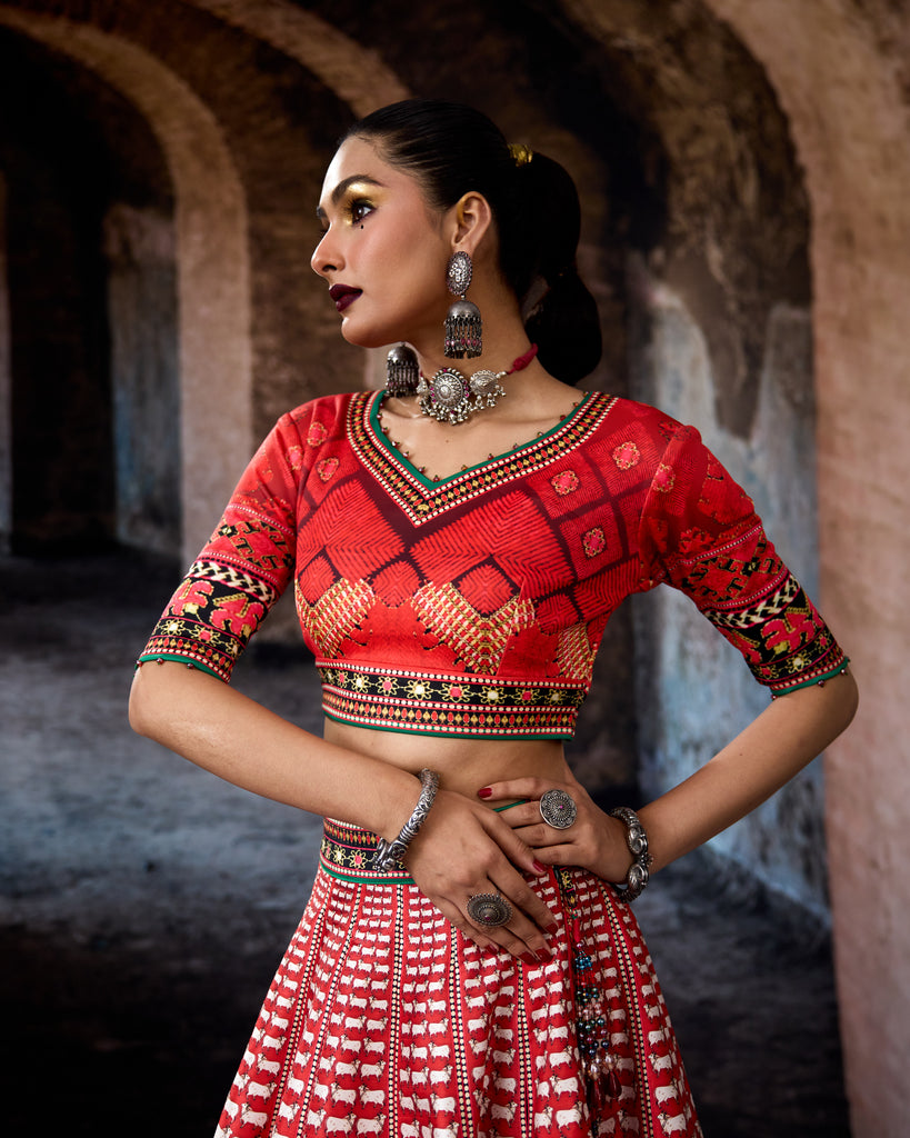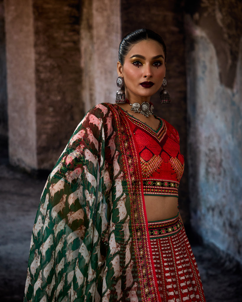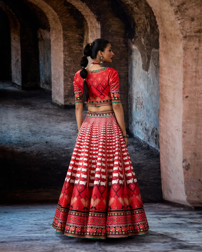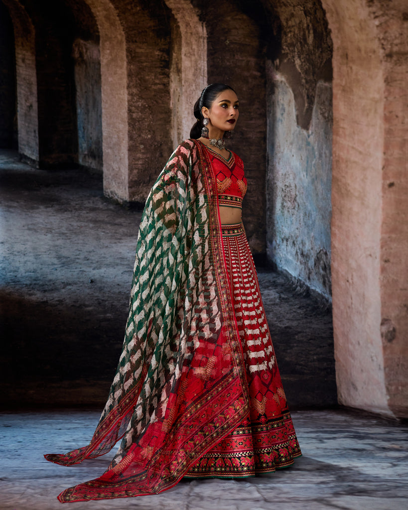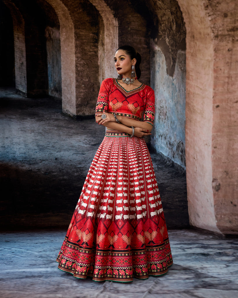 Lehenga Length: 42" - 44" (kindly email us your desired length if to be customised at store@ranawat.com with your order number or whattsapp us at +919810060160)