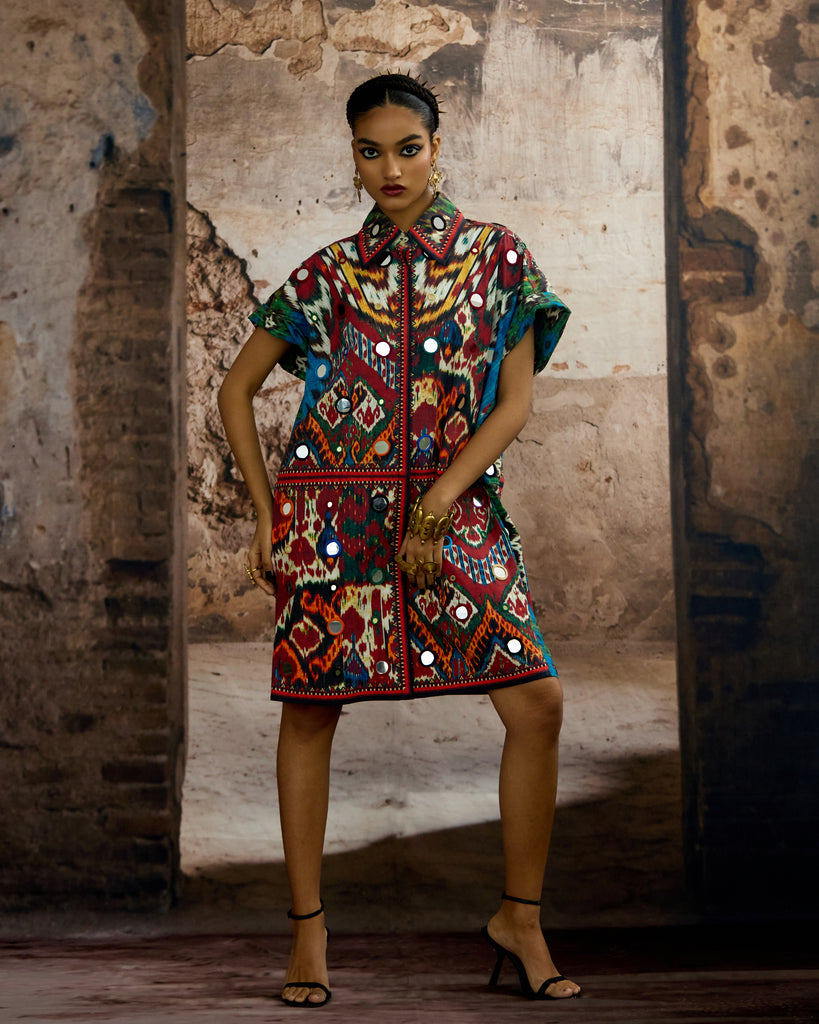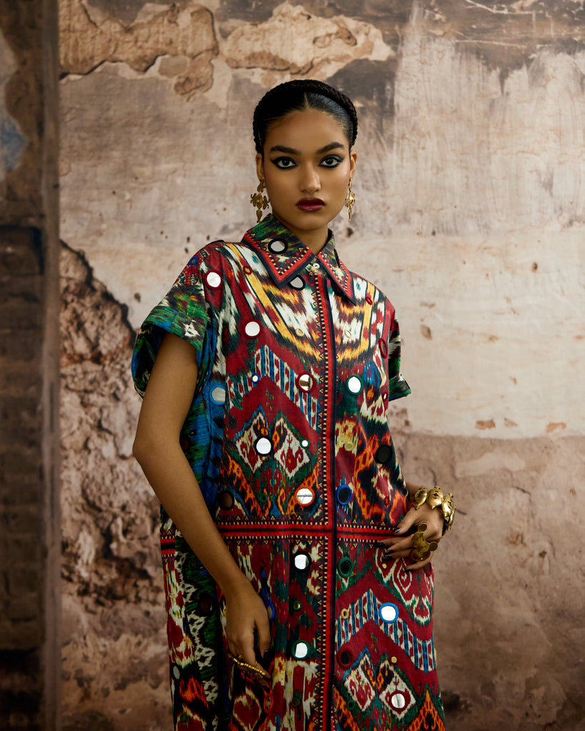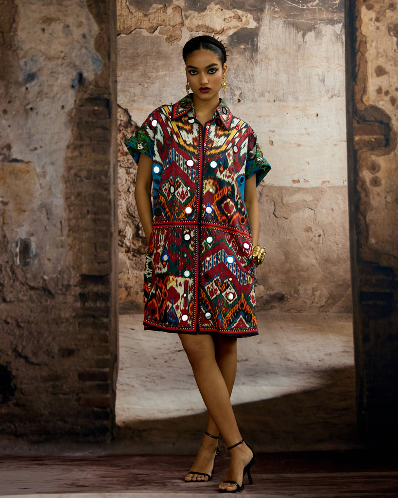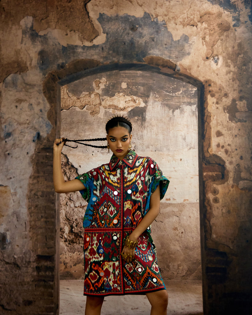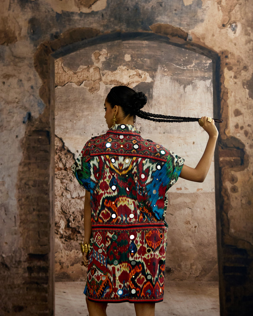 An embroidered version with mirror-work (as per the images) can also be ordered from the menu below.