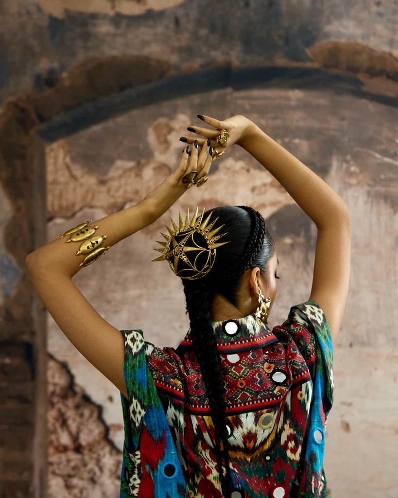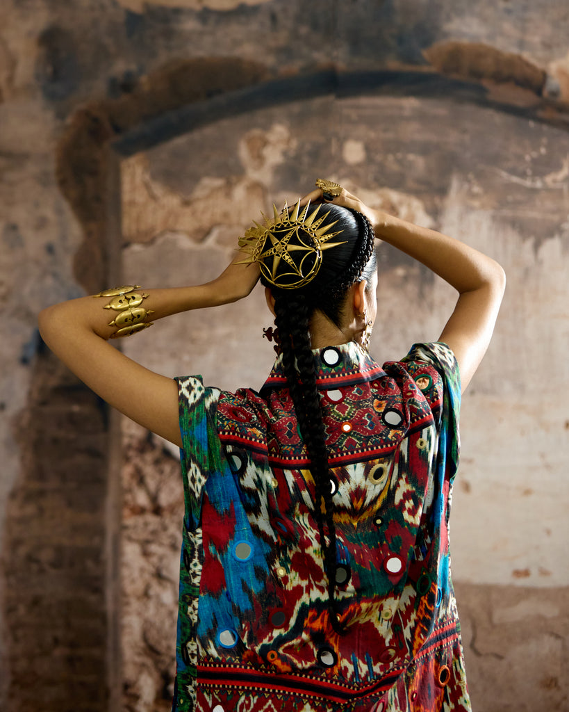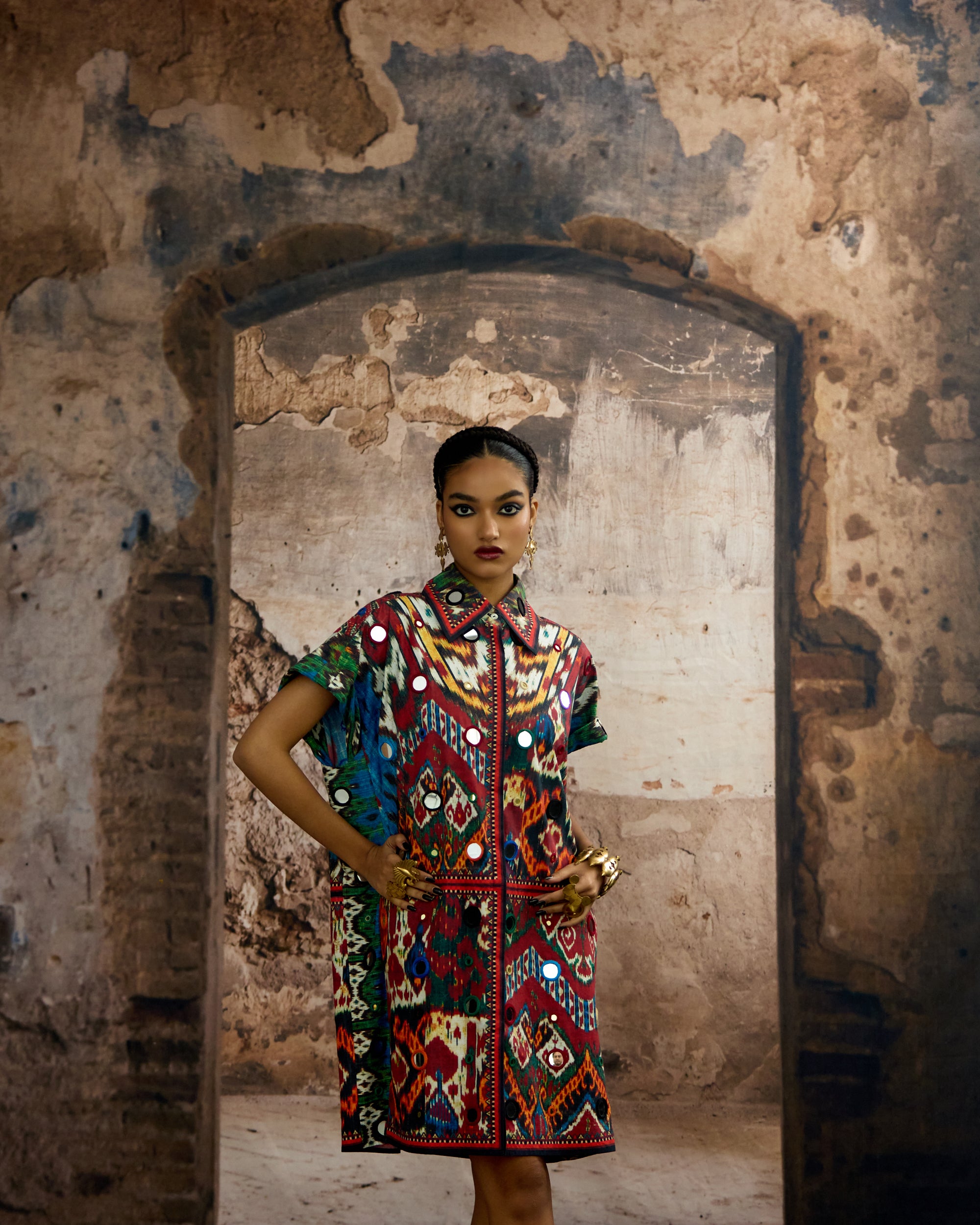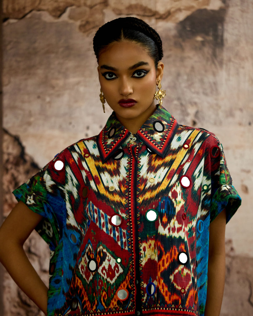 An embroidered version with mirror-work (as per the images) can also be ordered from the menu below.