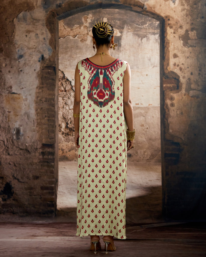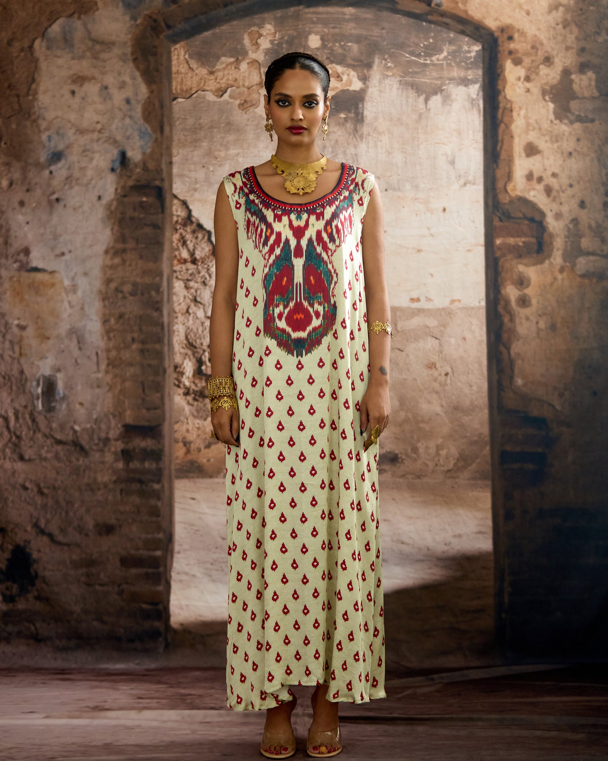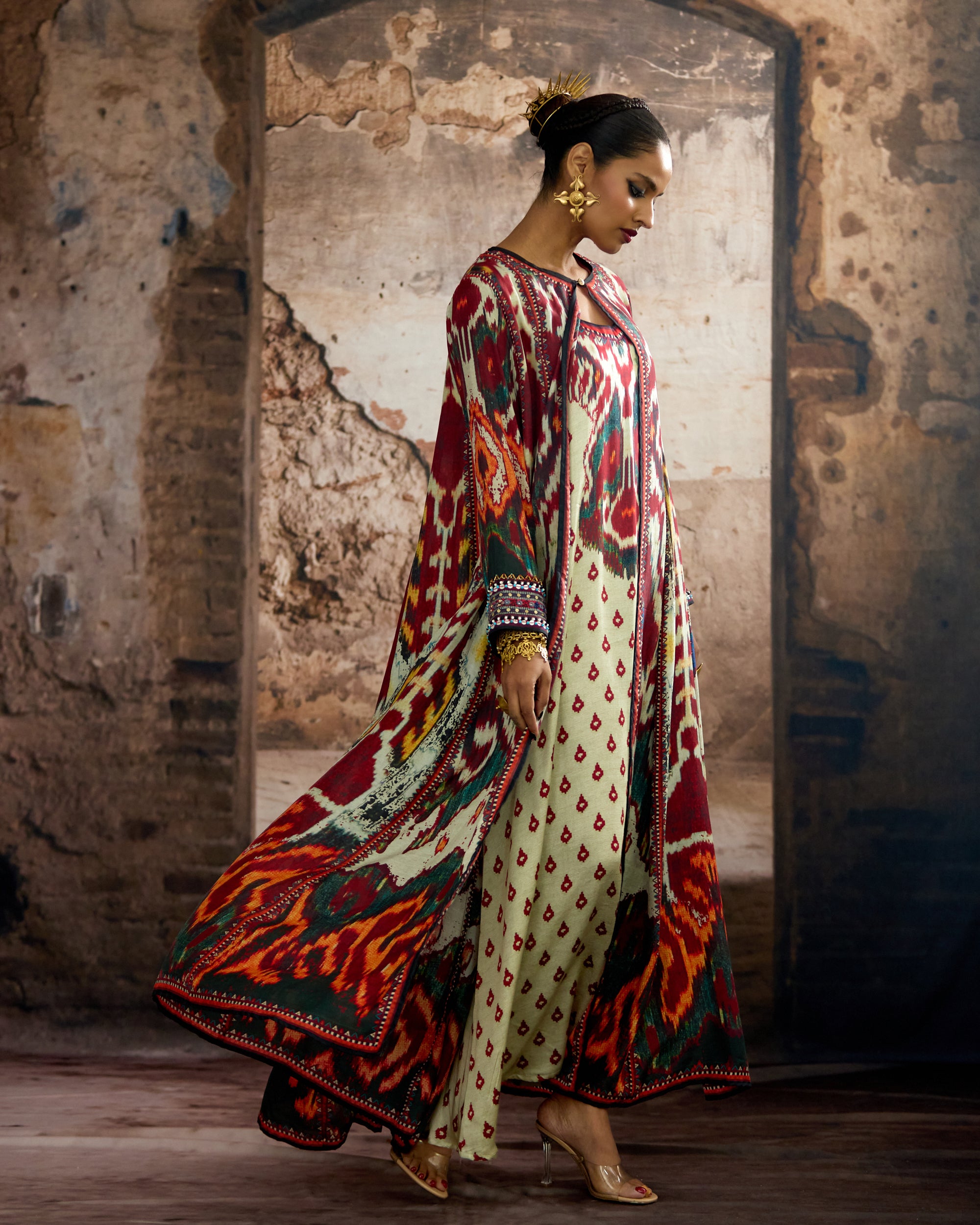 The jacket comes with a long inner camisole sleeveless dress as a coordinate for the 2 piece set.