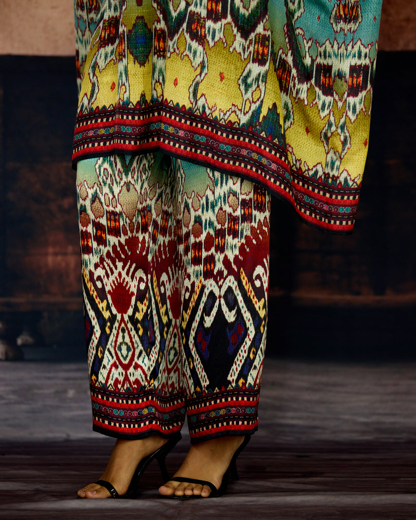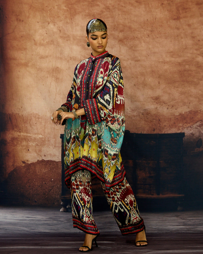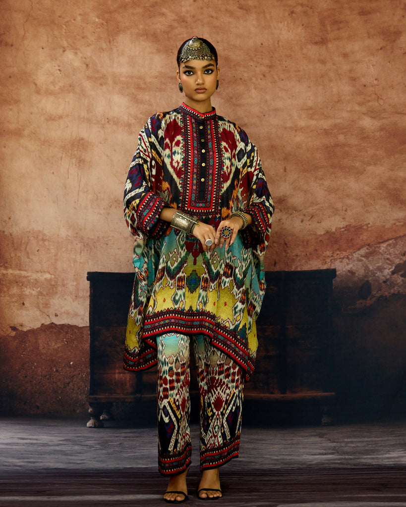 This tunic comes with a coordinating printed palazzo pant which can be ordered as per the drop down menu as a set.