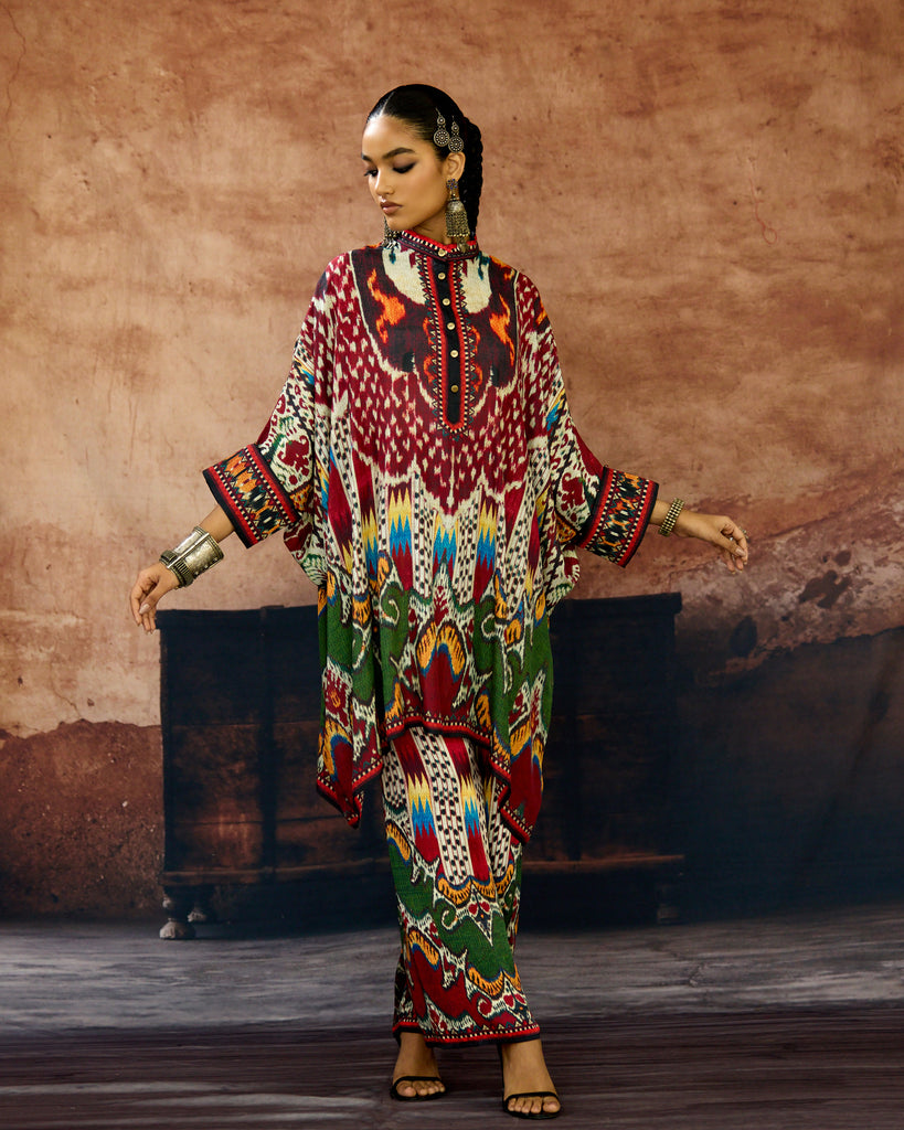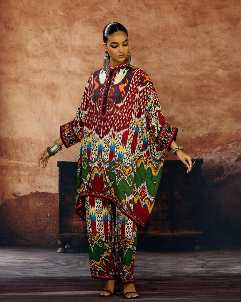 This tunic comes with a coordinating printed palazzo pant which can be ordered as per the drop down menu as a set.