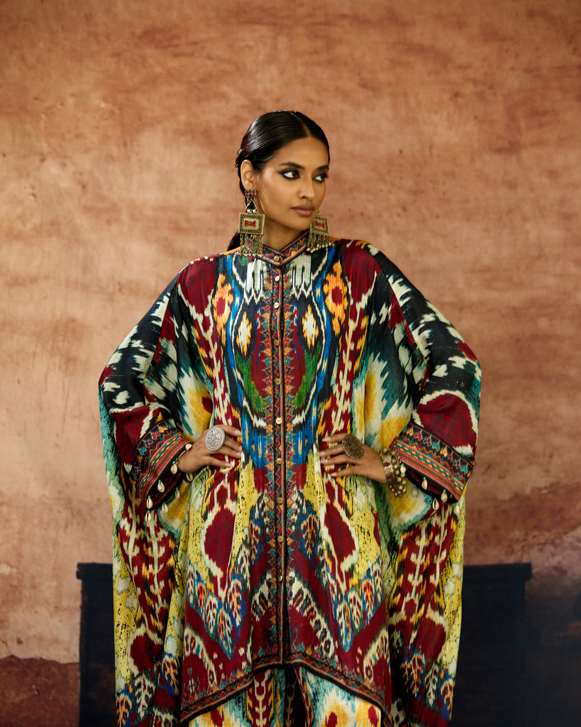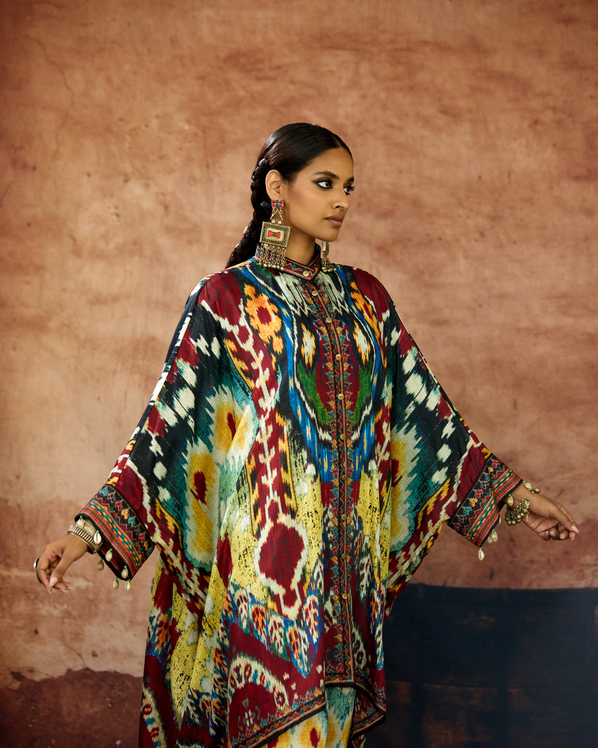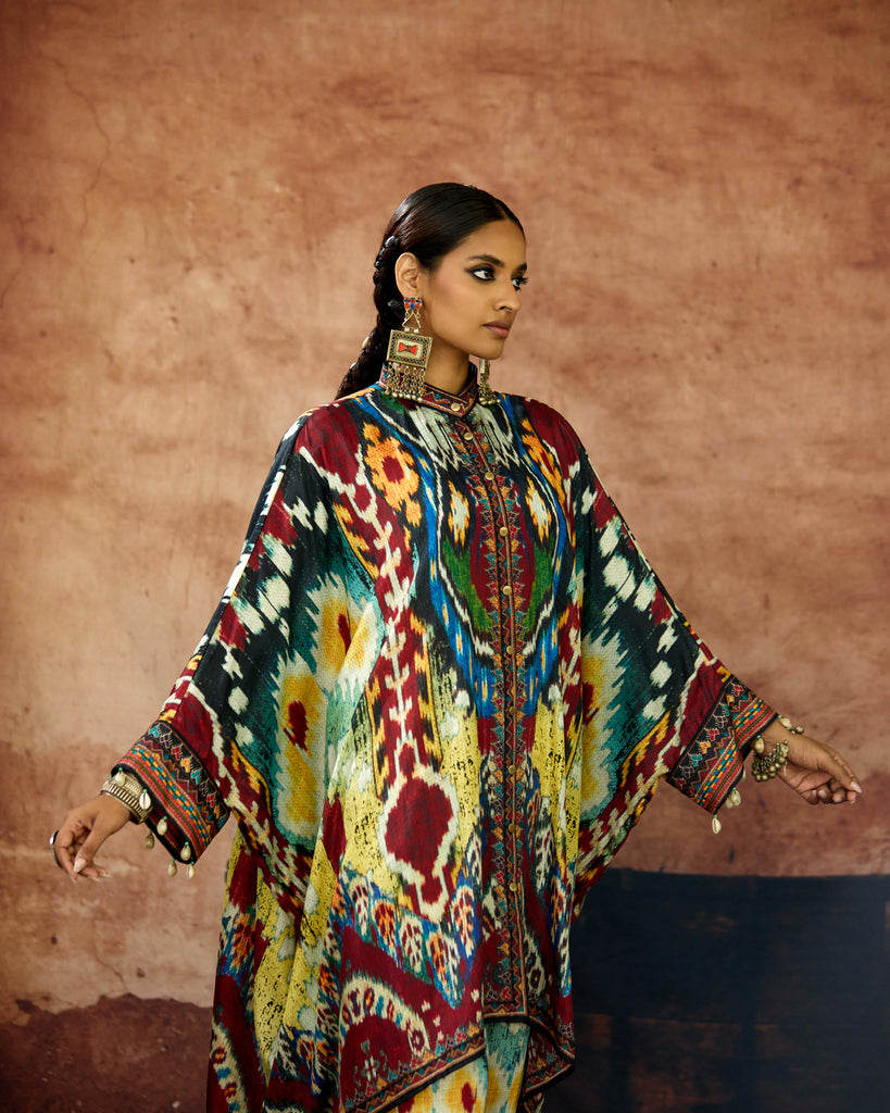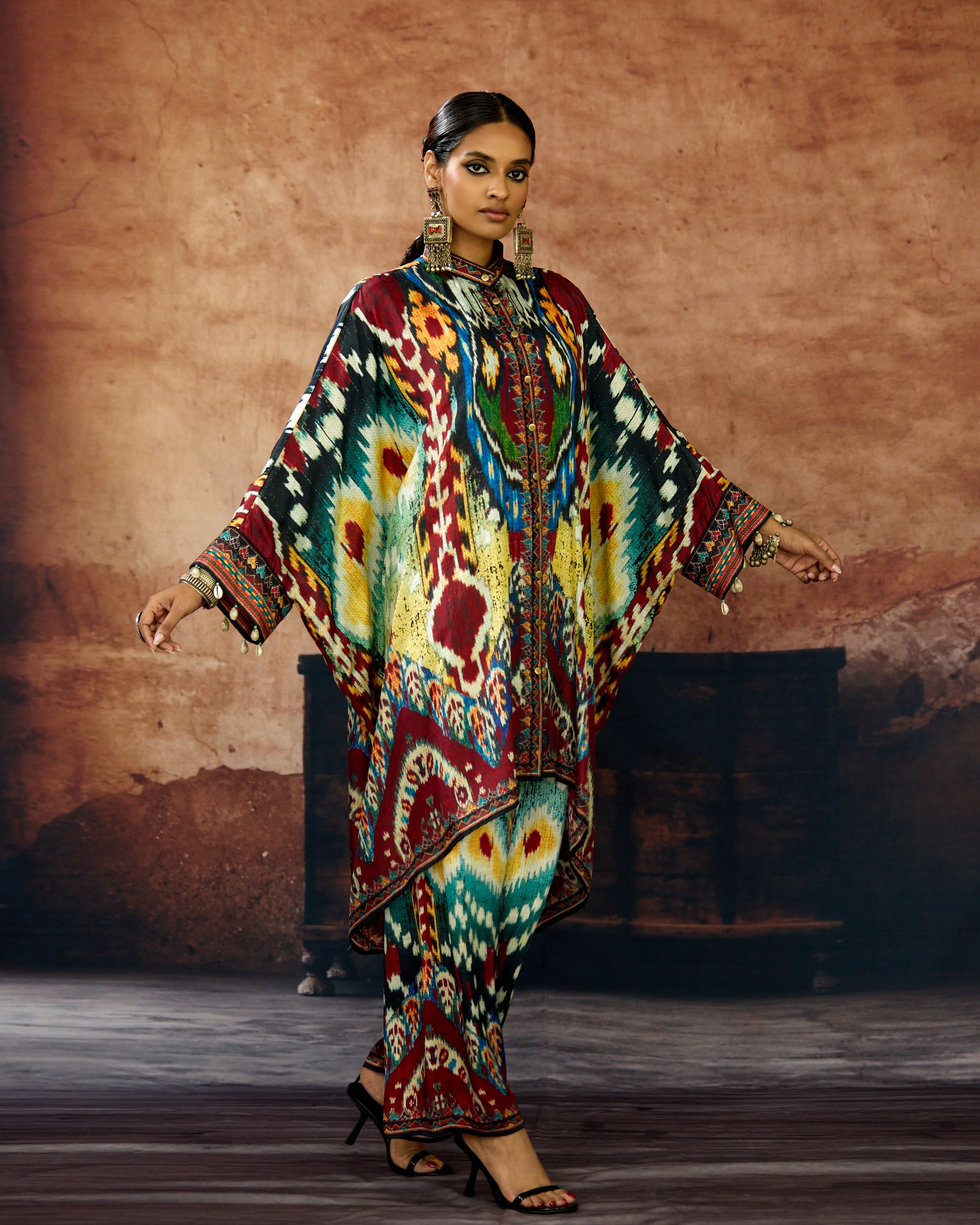 Material: Kaftan : 100% Silk, Pants : Modal Satin