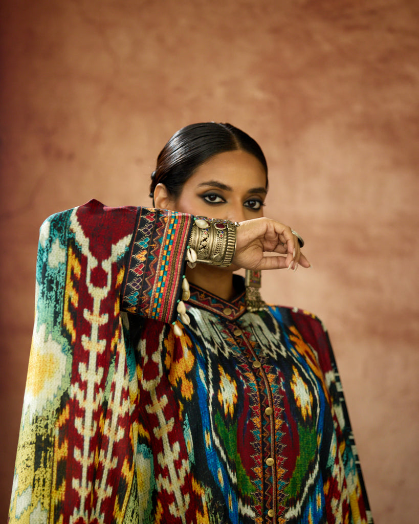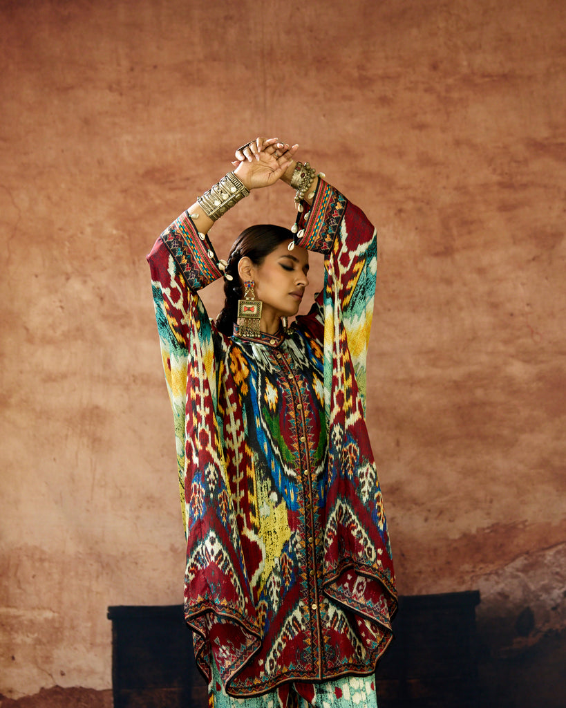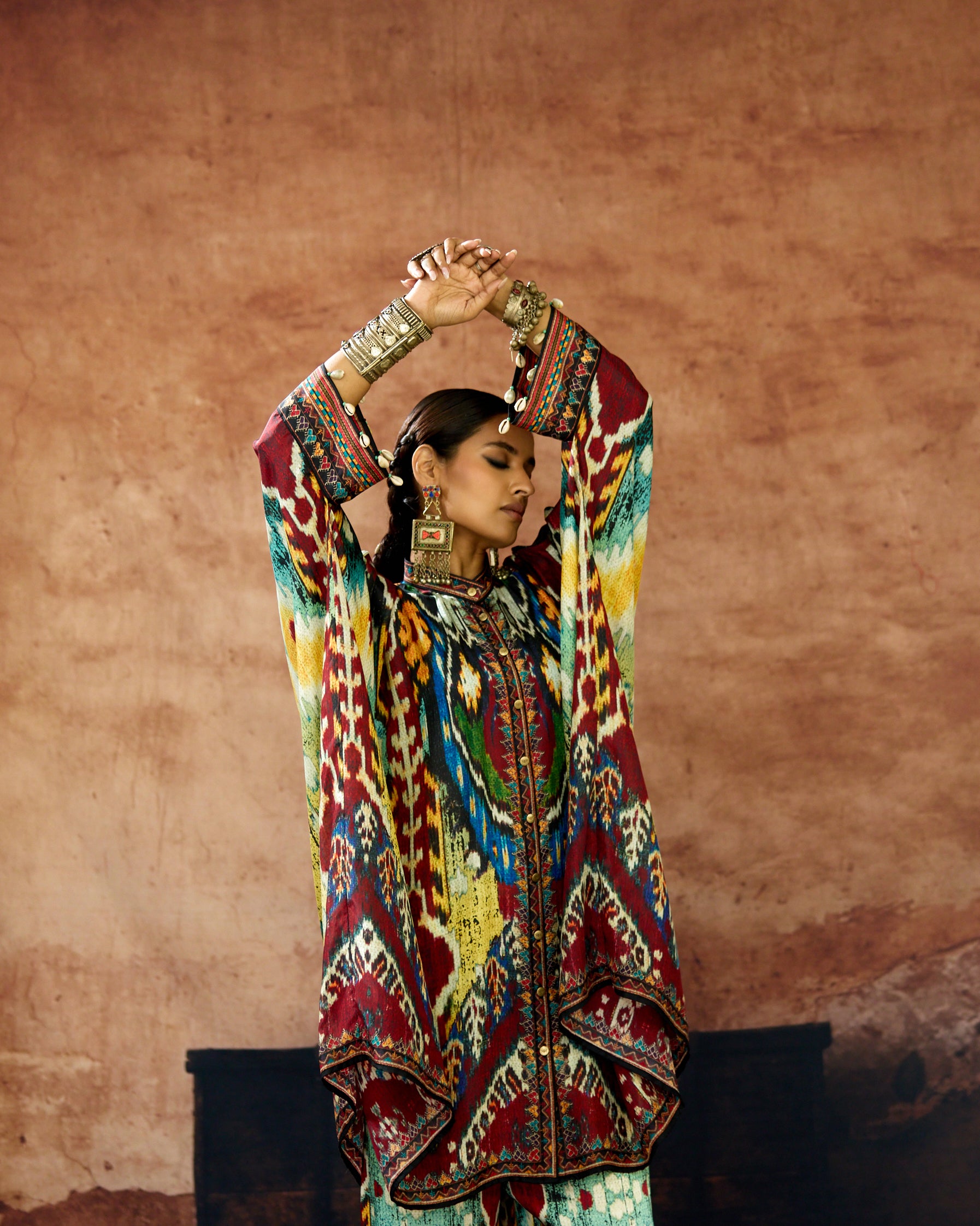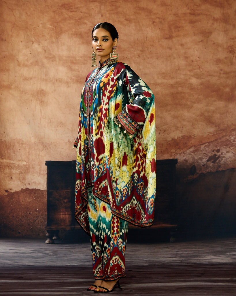 Material: Kaftan : 100% Silk, Pants : Modal Satin
