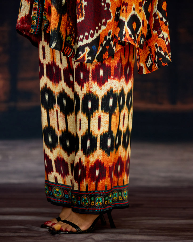 Pair it with our matching print palazzo pants that coordinates and completed the look so well.
