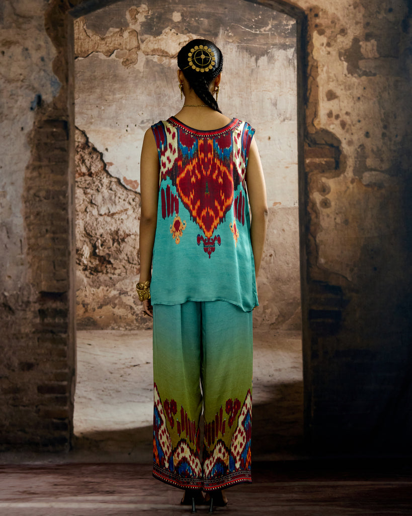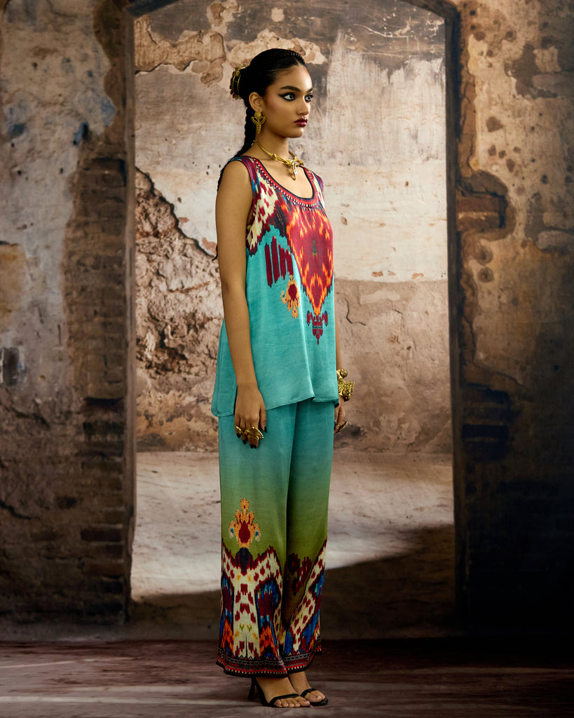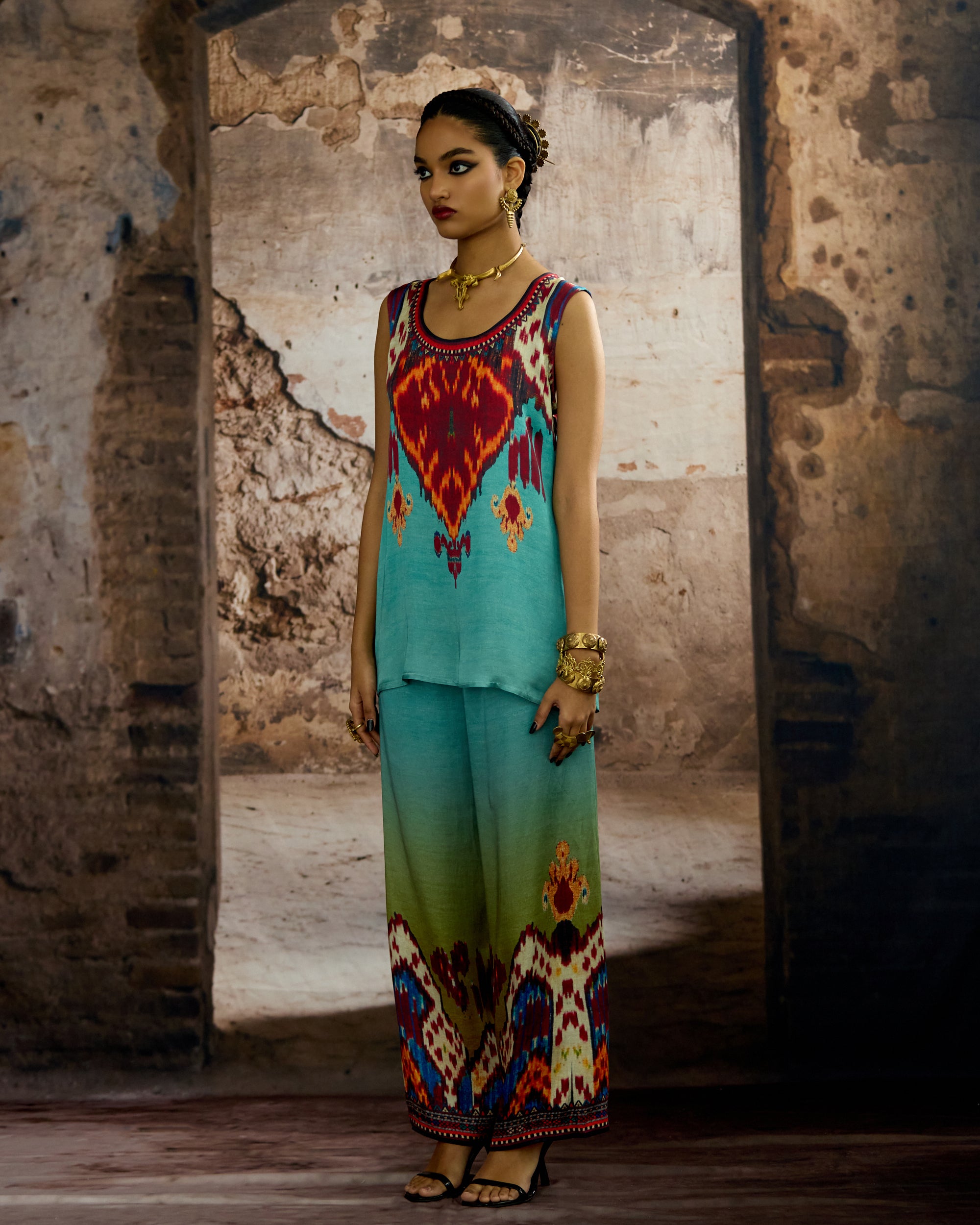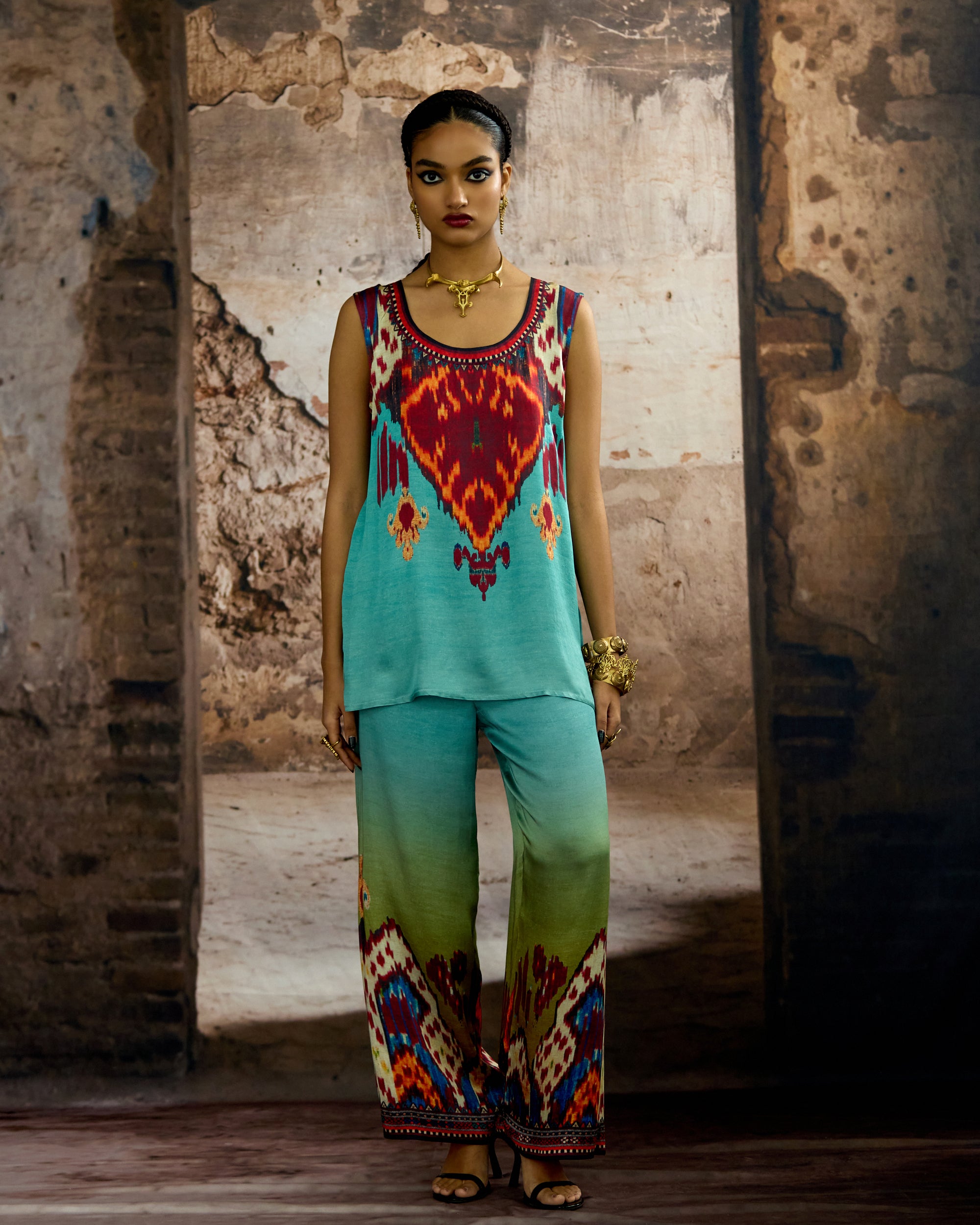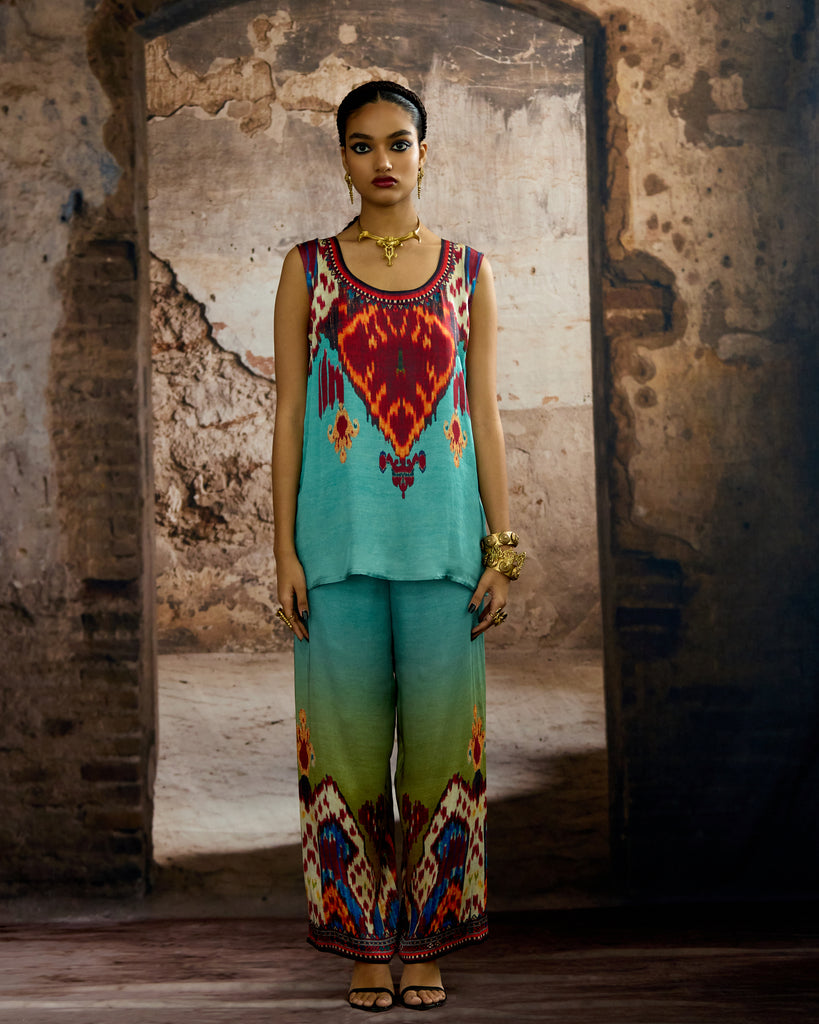 Team it up with our coordinating round neck camisole and palazzo pants to complete the look.