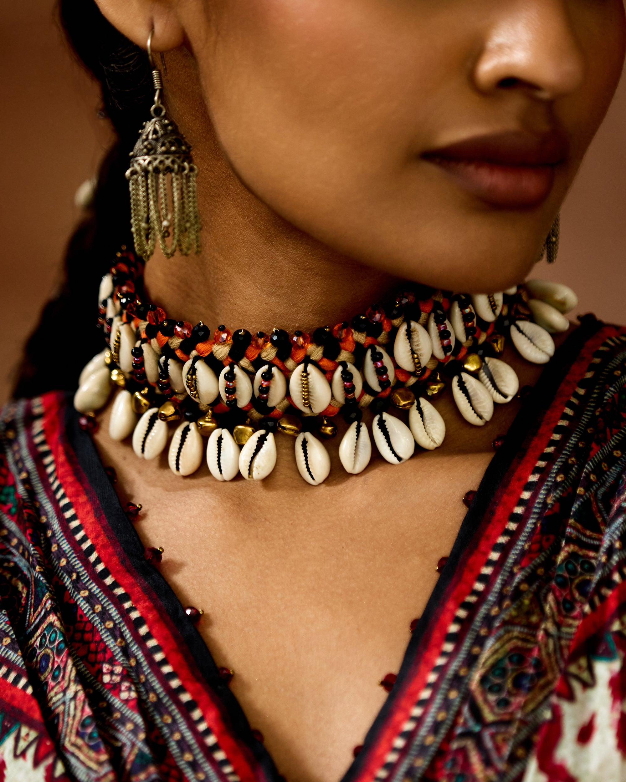 An embroidered version of the Maya top can also be ordered with intricate hand embroidery and mirror-work scatter as per the images.