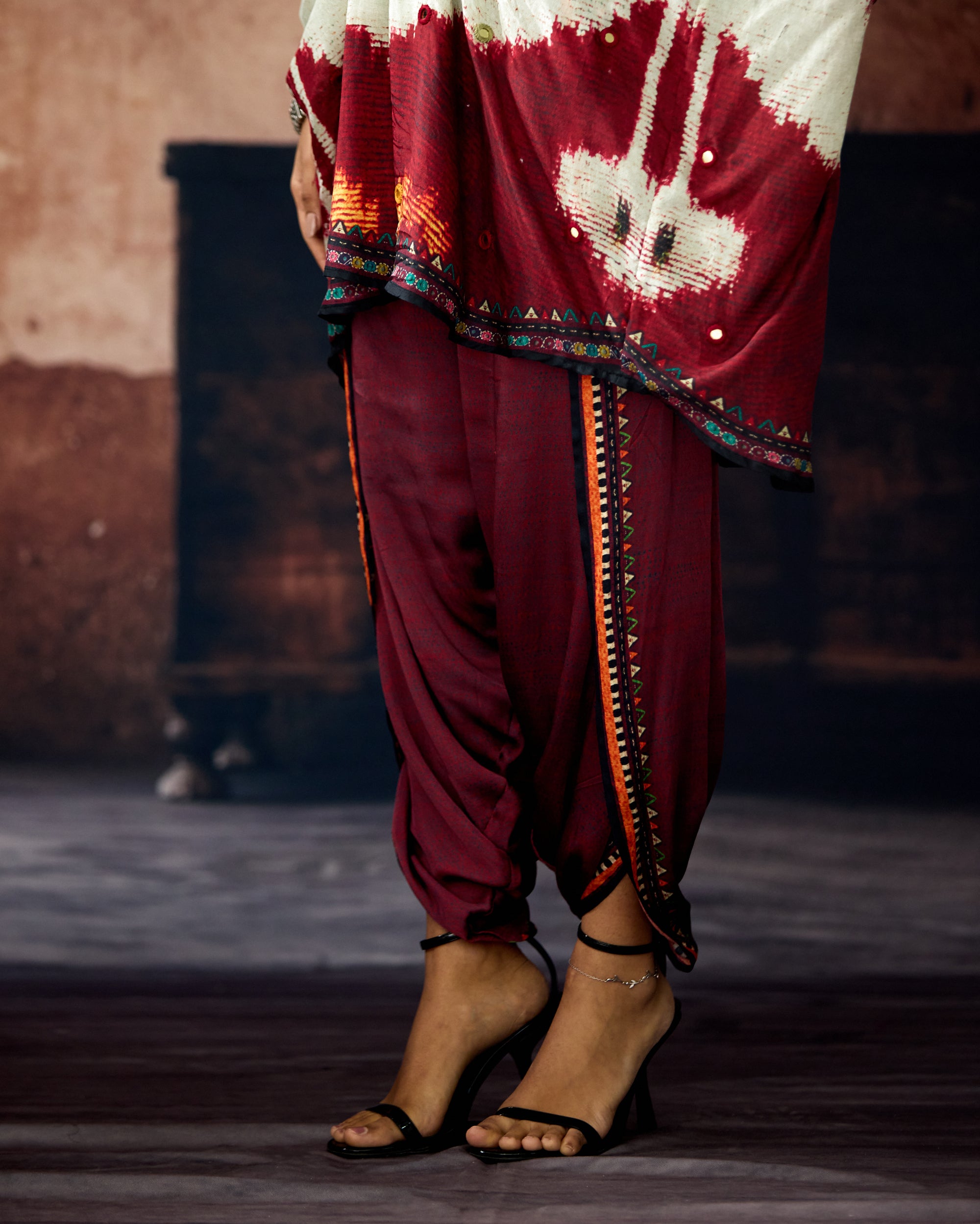Style it with our matching Sonth Printed draped Dhoti pants.