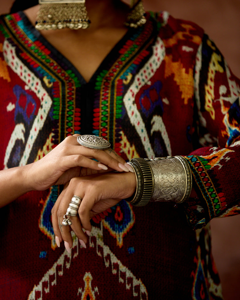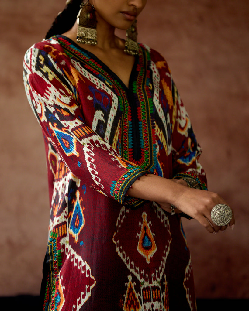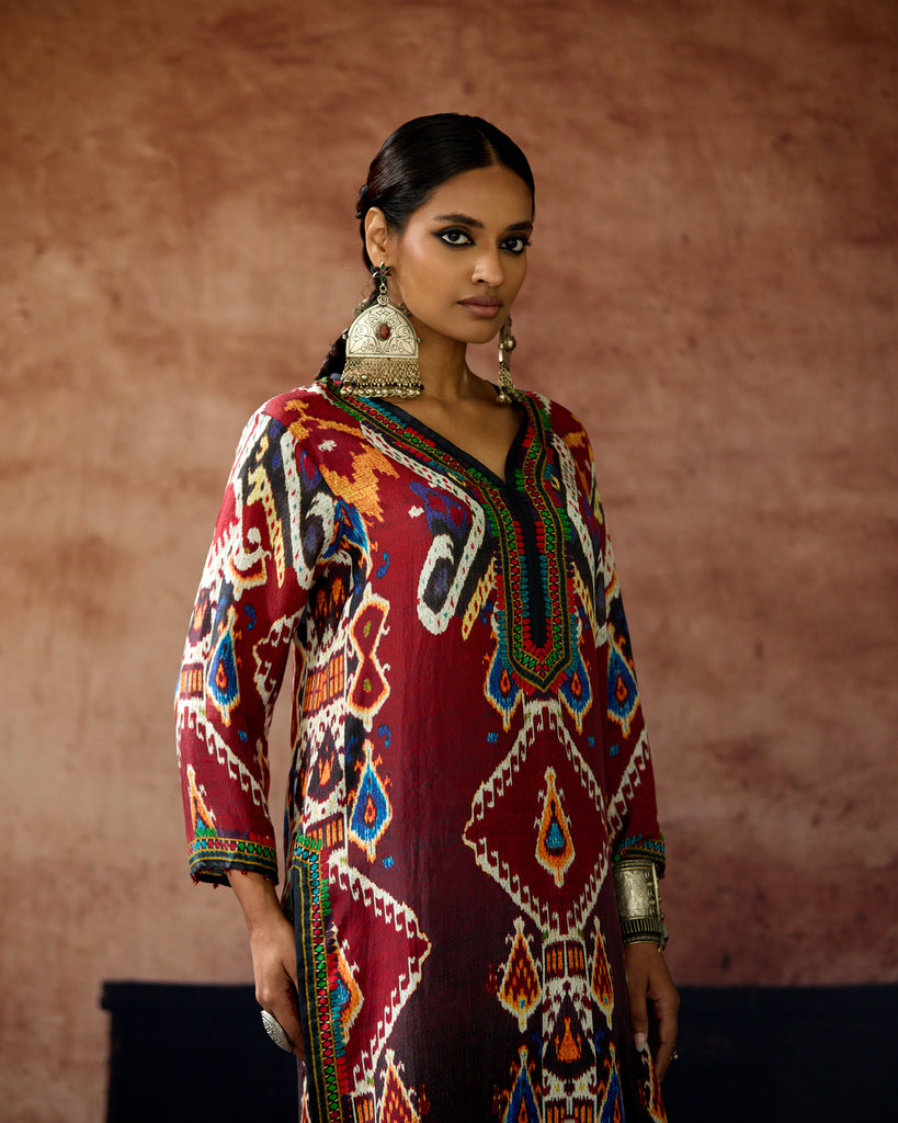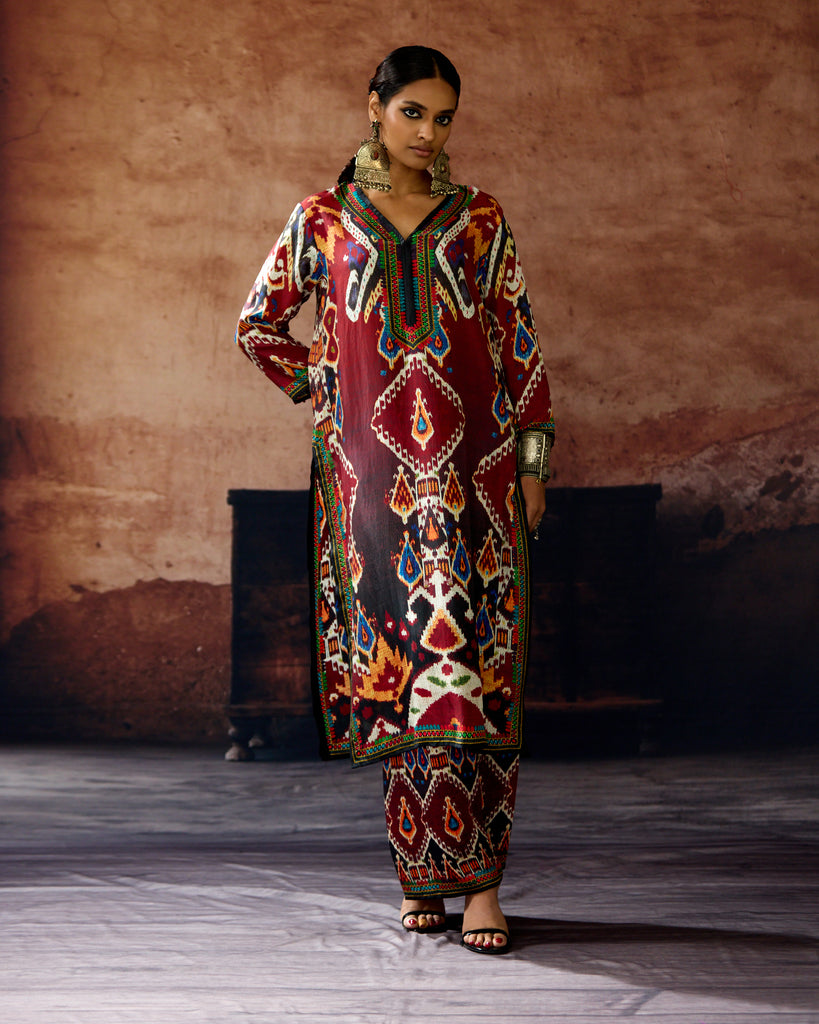 This kurta can also teamed with a coordinating print palazzos.