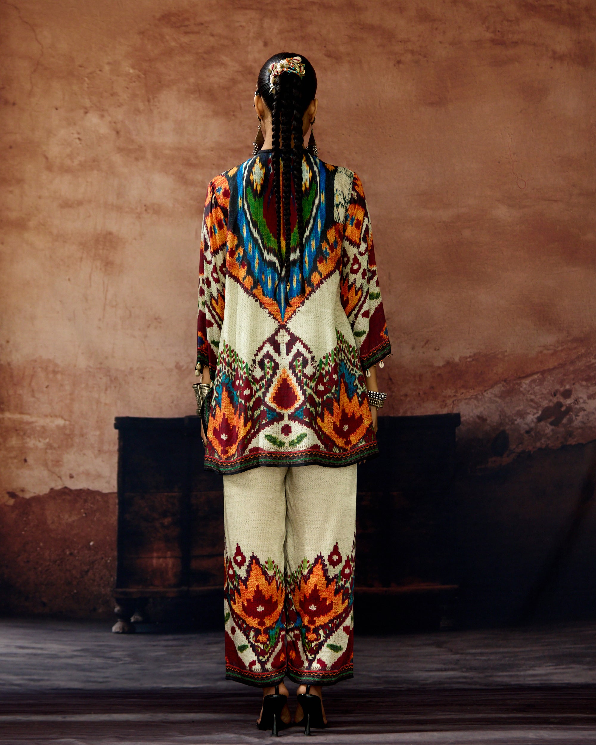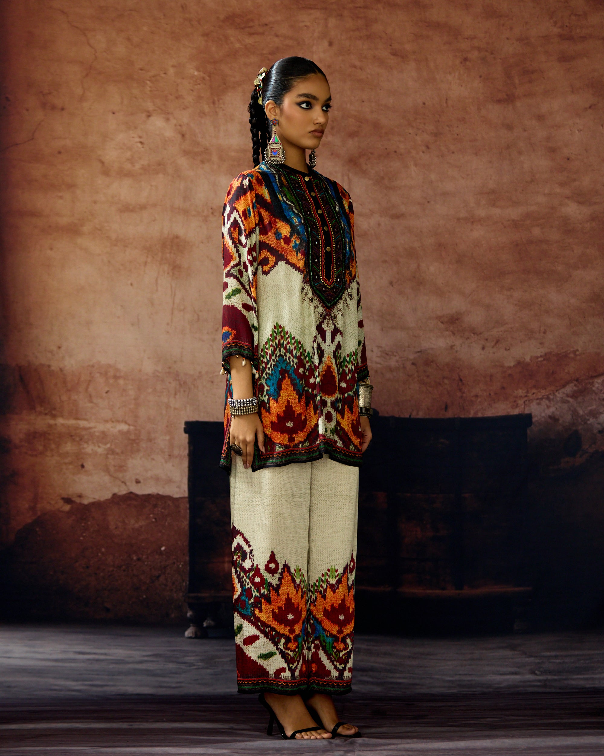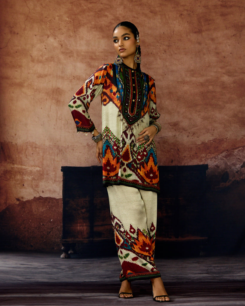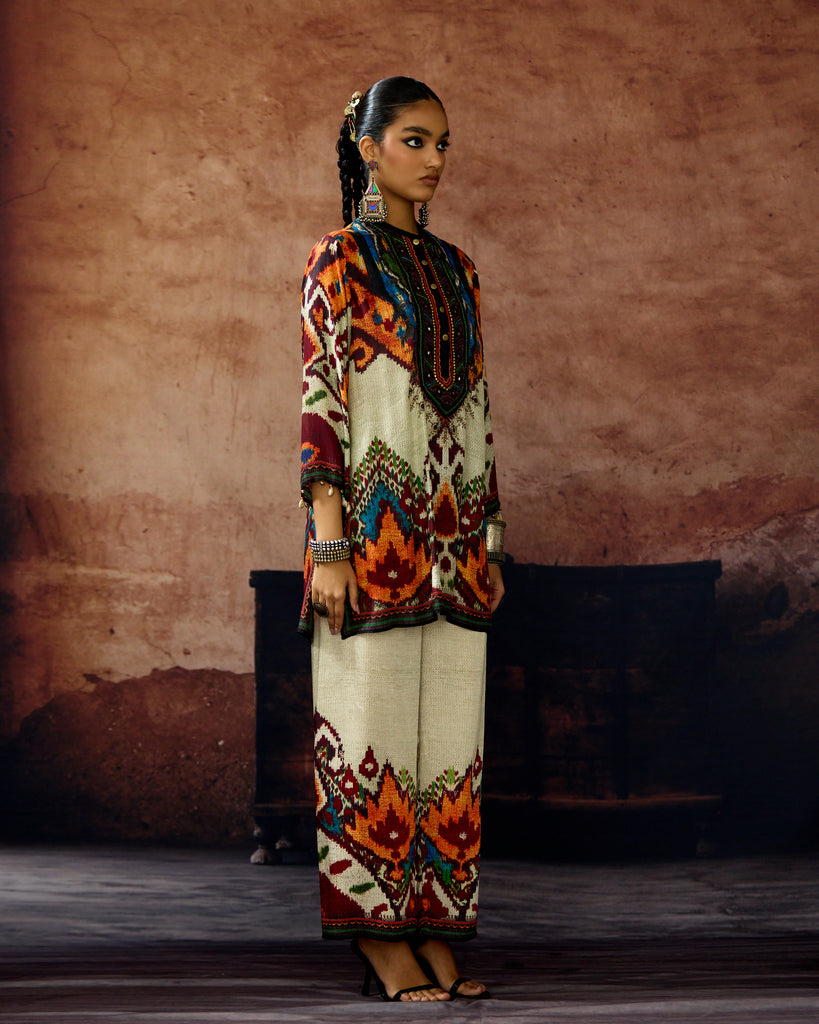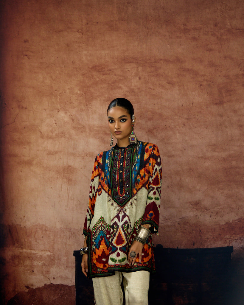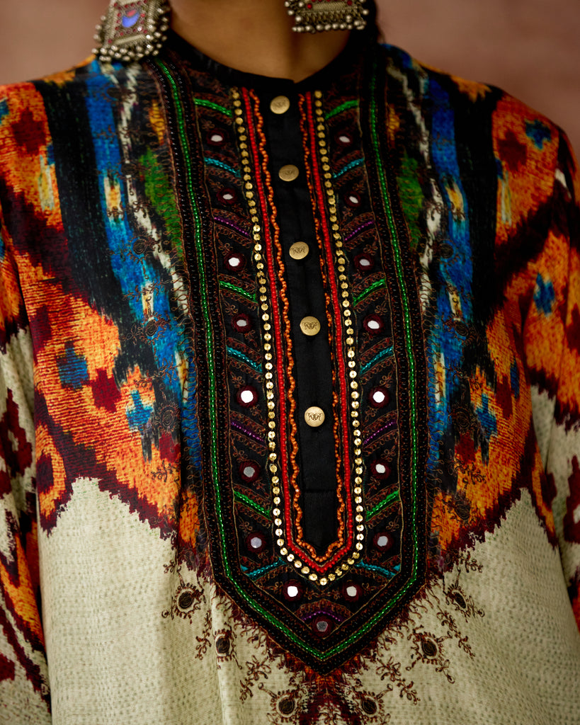 This kurta can also teamed with a coordinating print Palazzo pants.