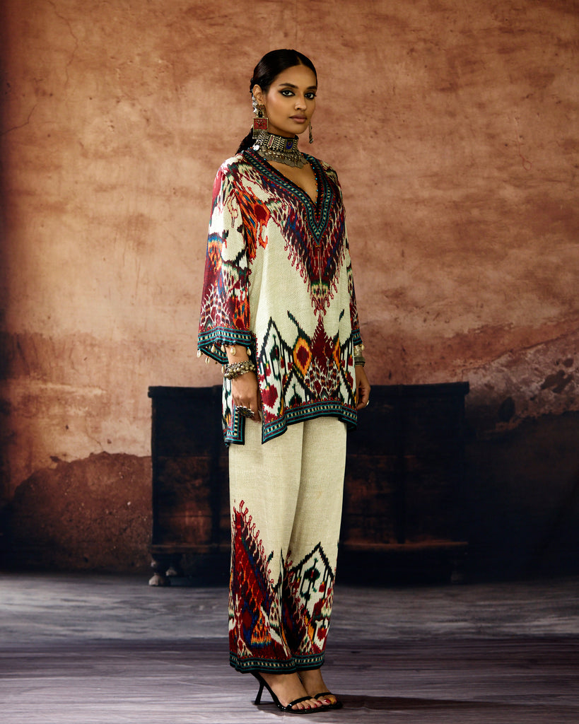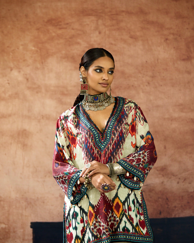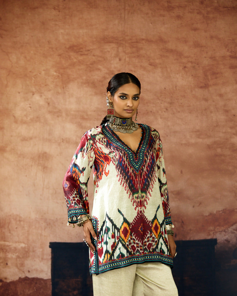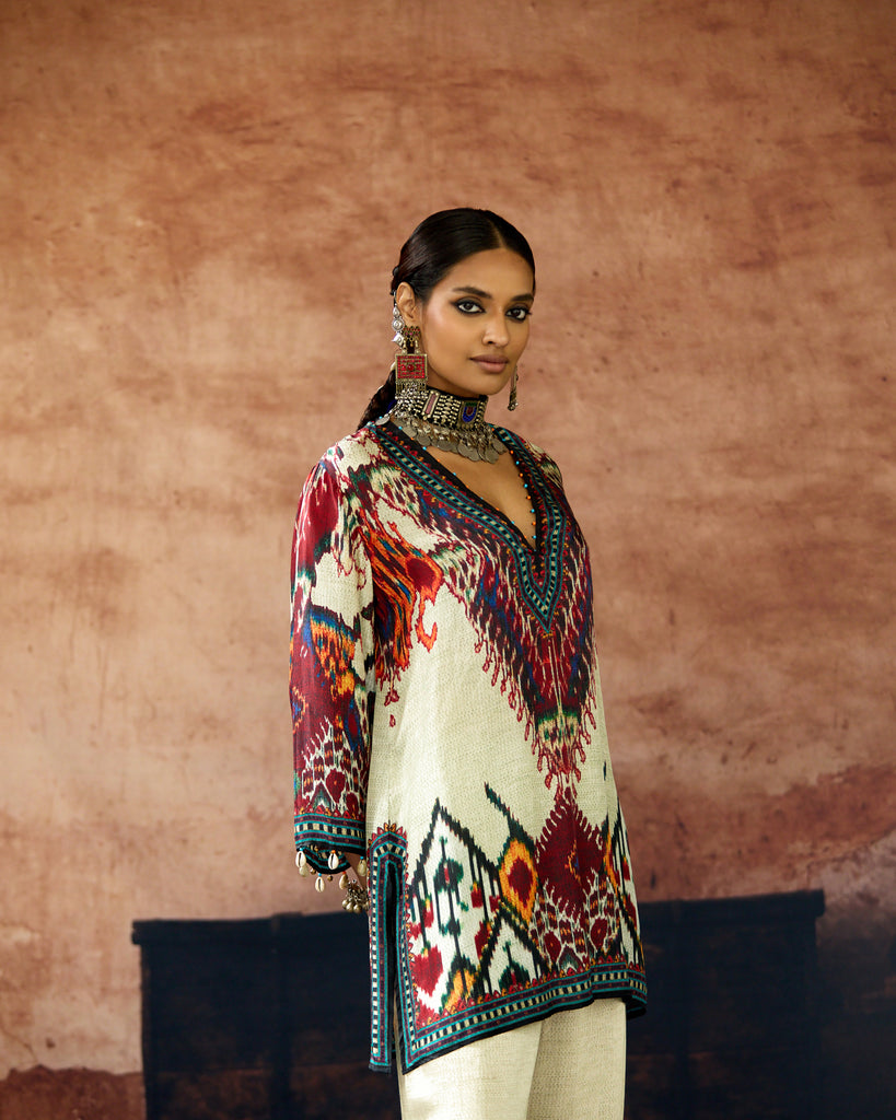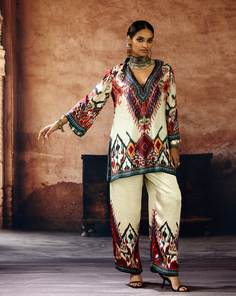 This kurta can also teamed with a coordinating print Palazzo pants.