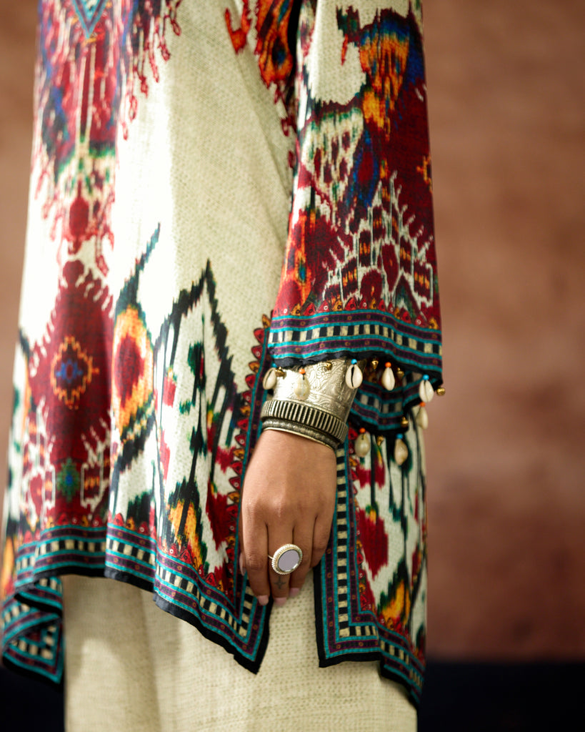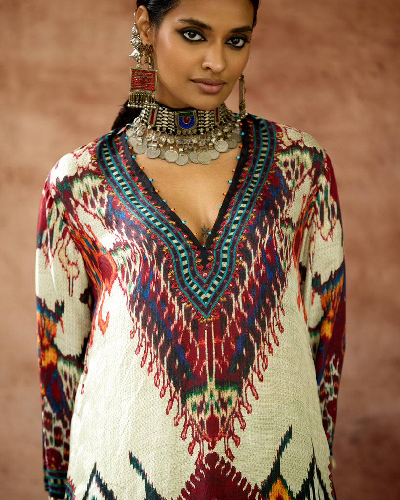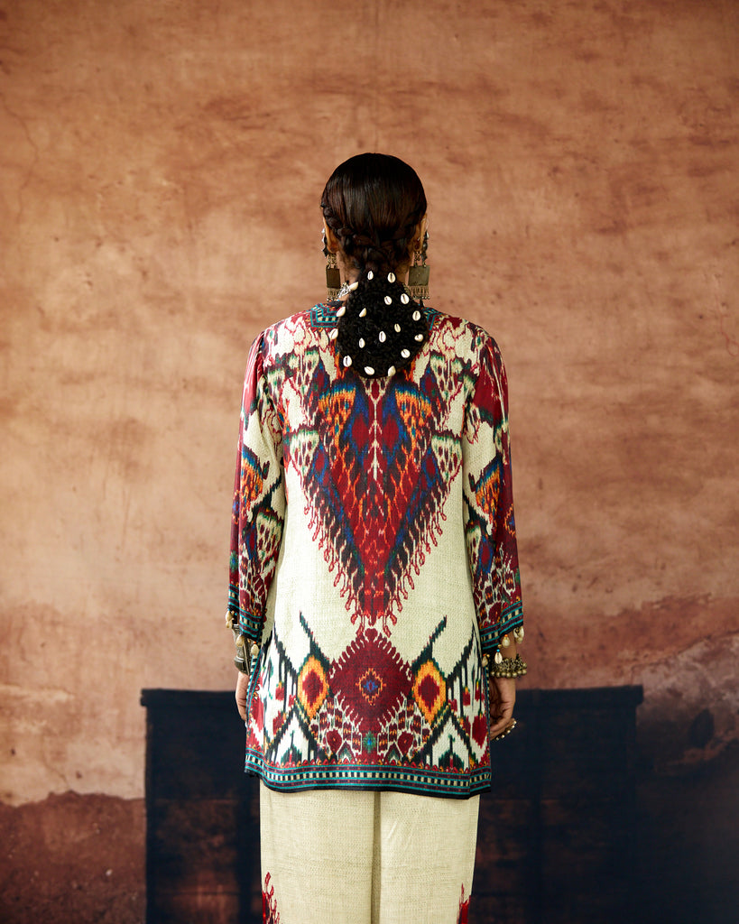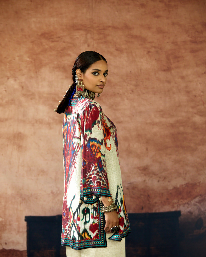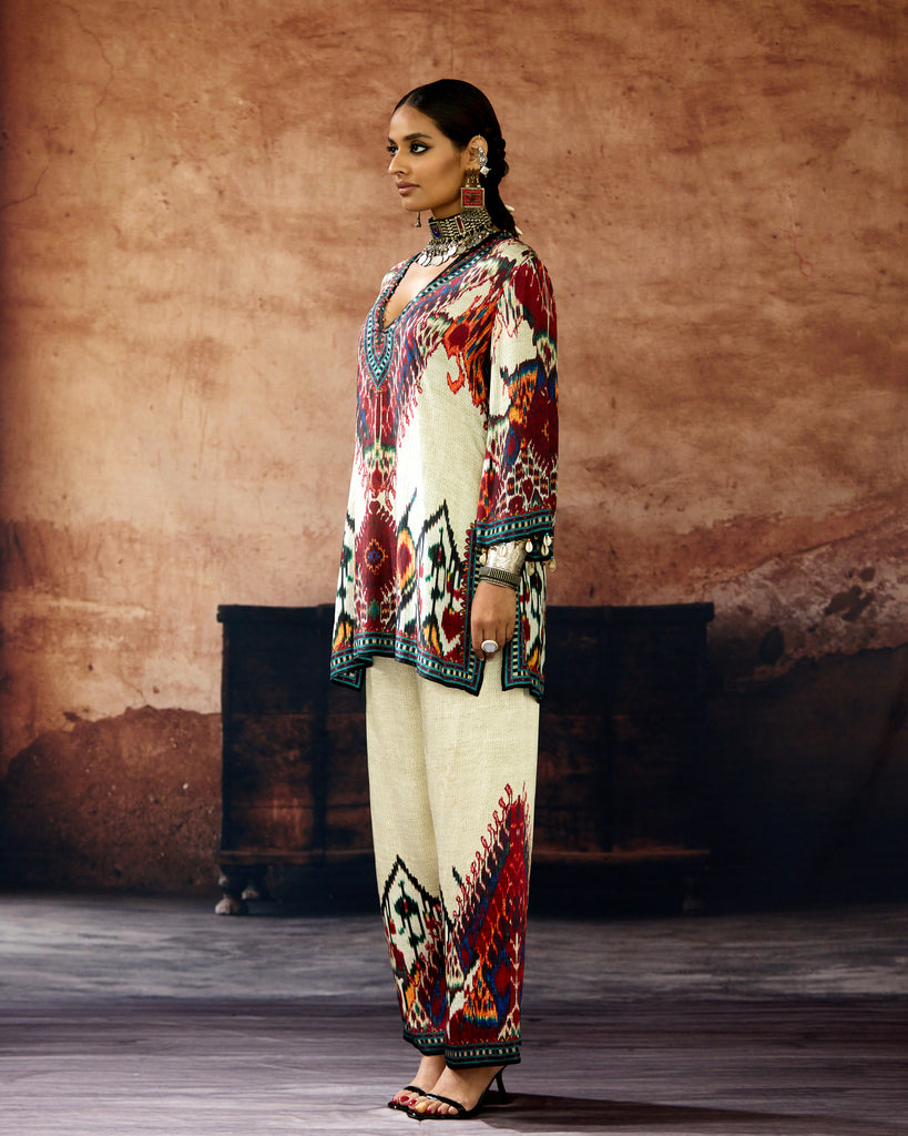 This kurta can also teamed with a coordinating print Palazzo pants.