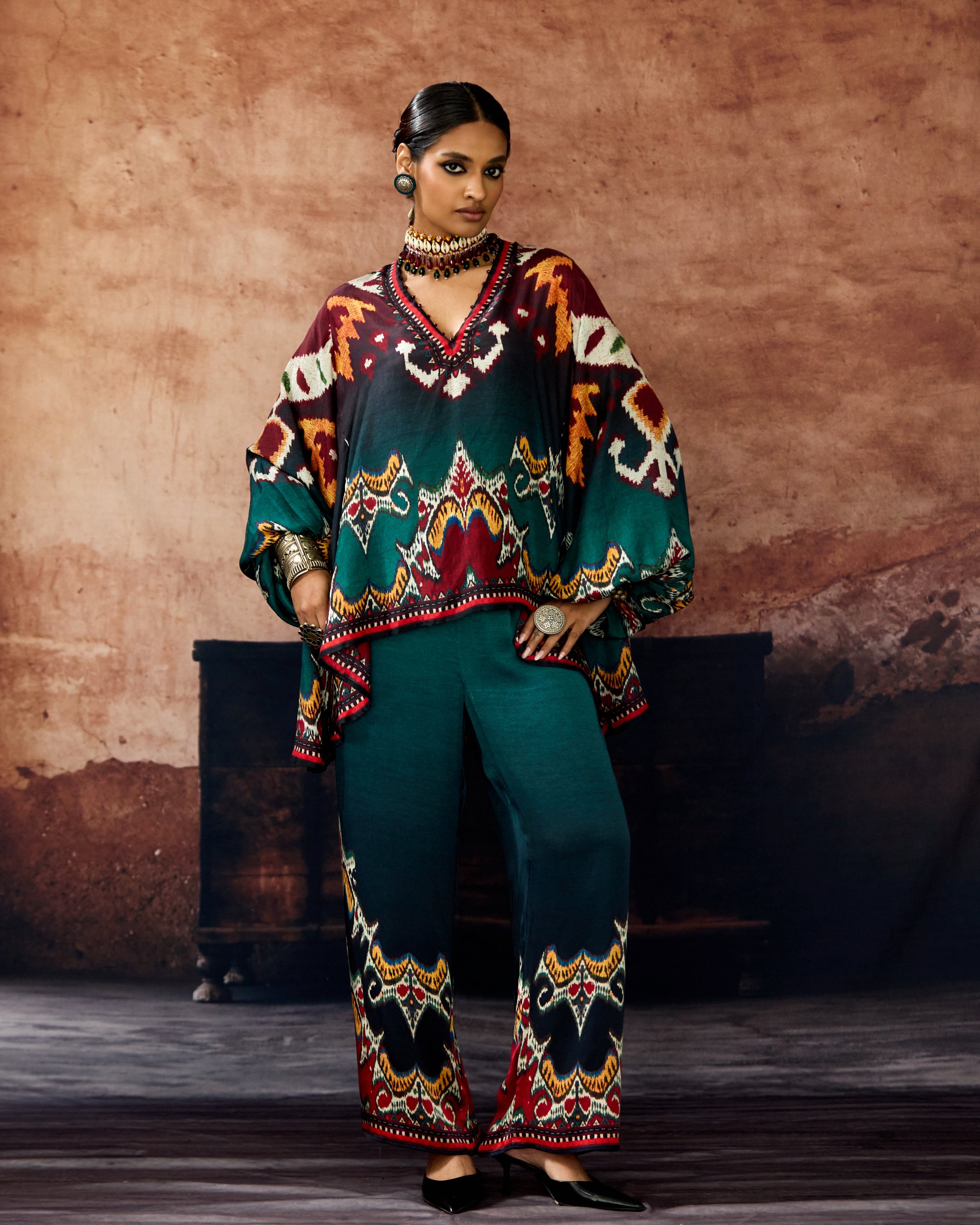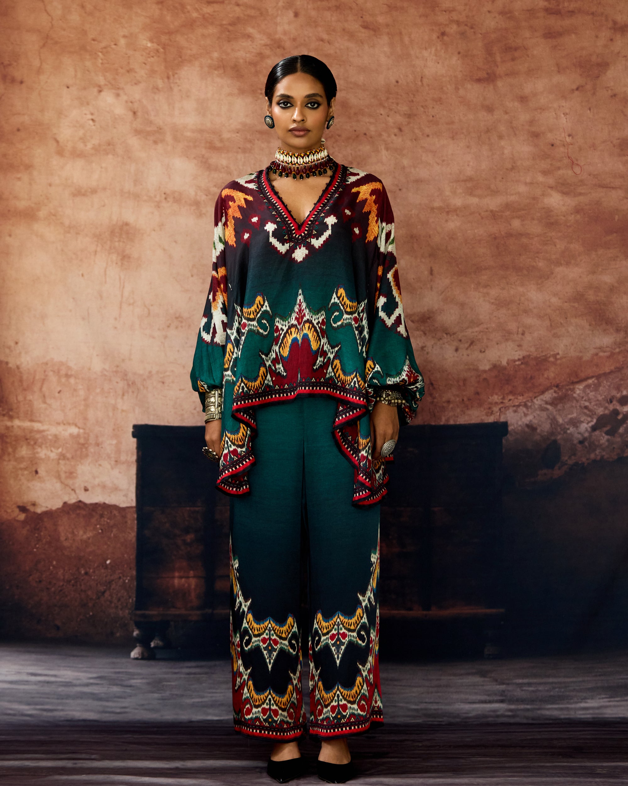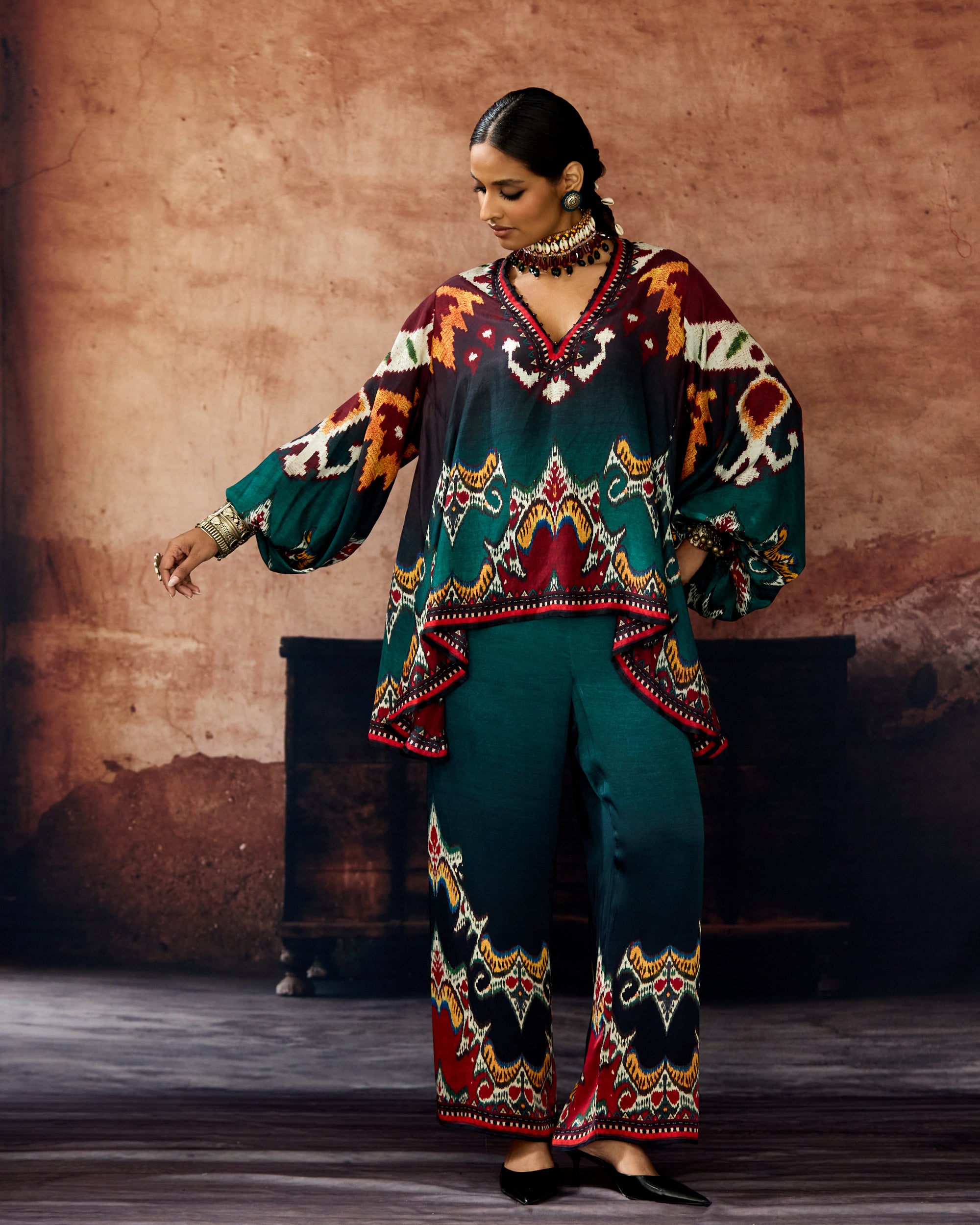This tunic can also teamed with a coordinating Printed palazzos with a printed border at the hem.