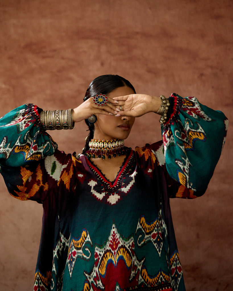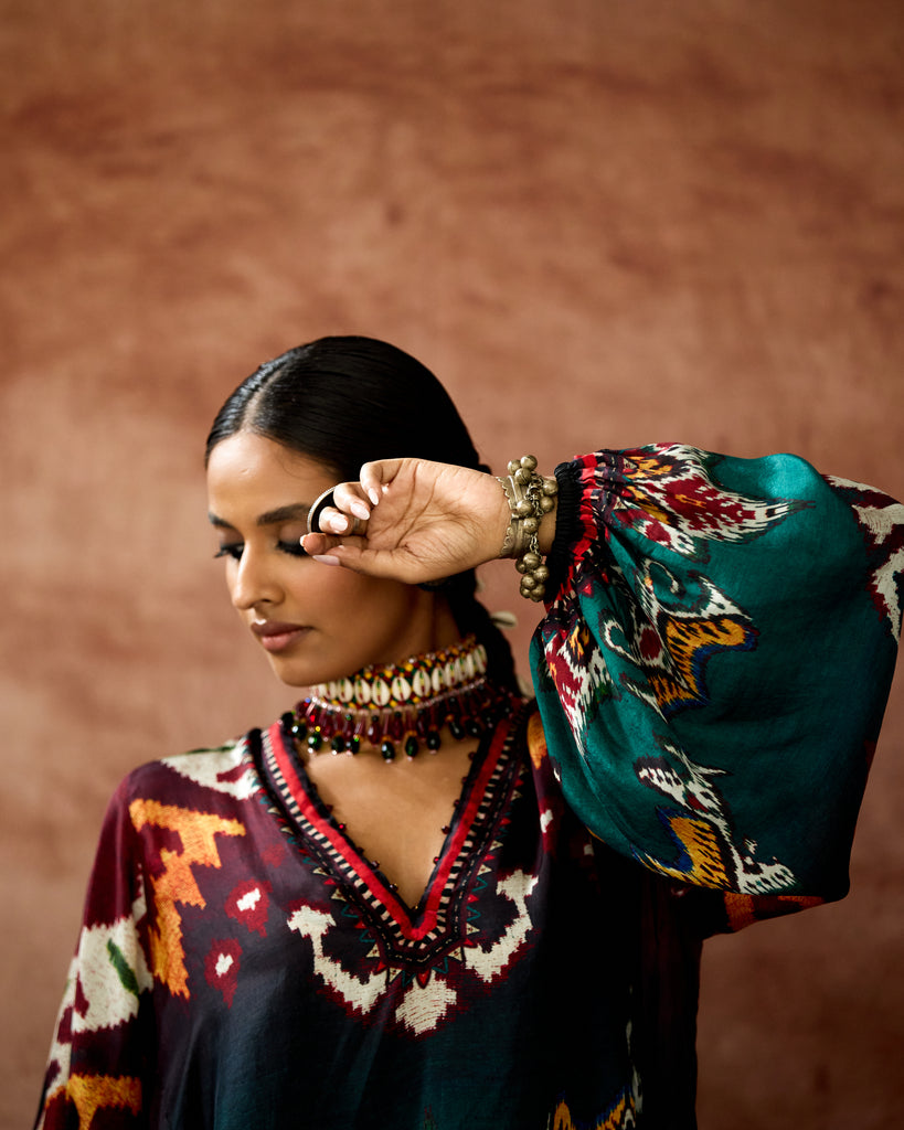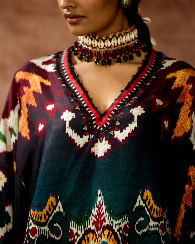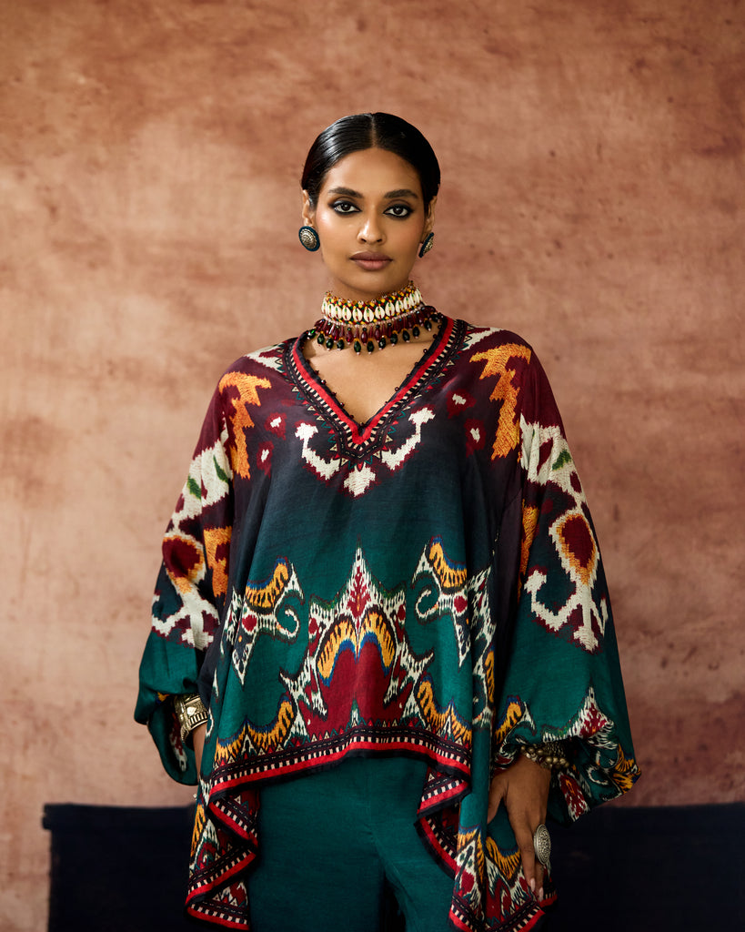 This tunic can also teamed with a coordinating Printed palazzos with a printed border at the hem.