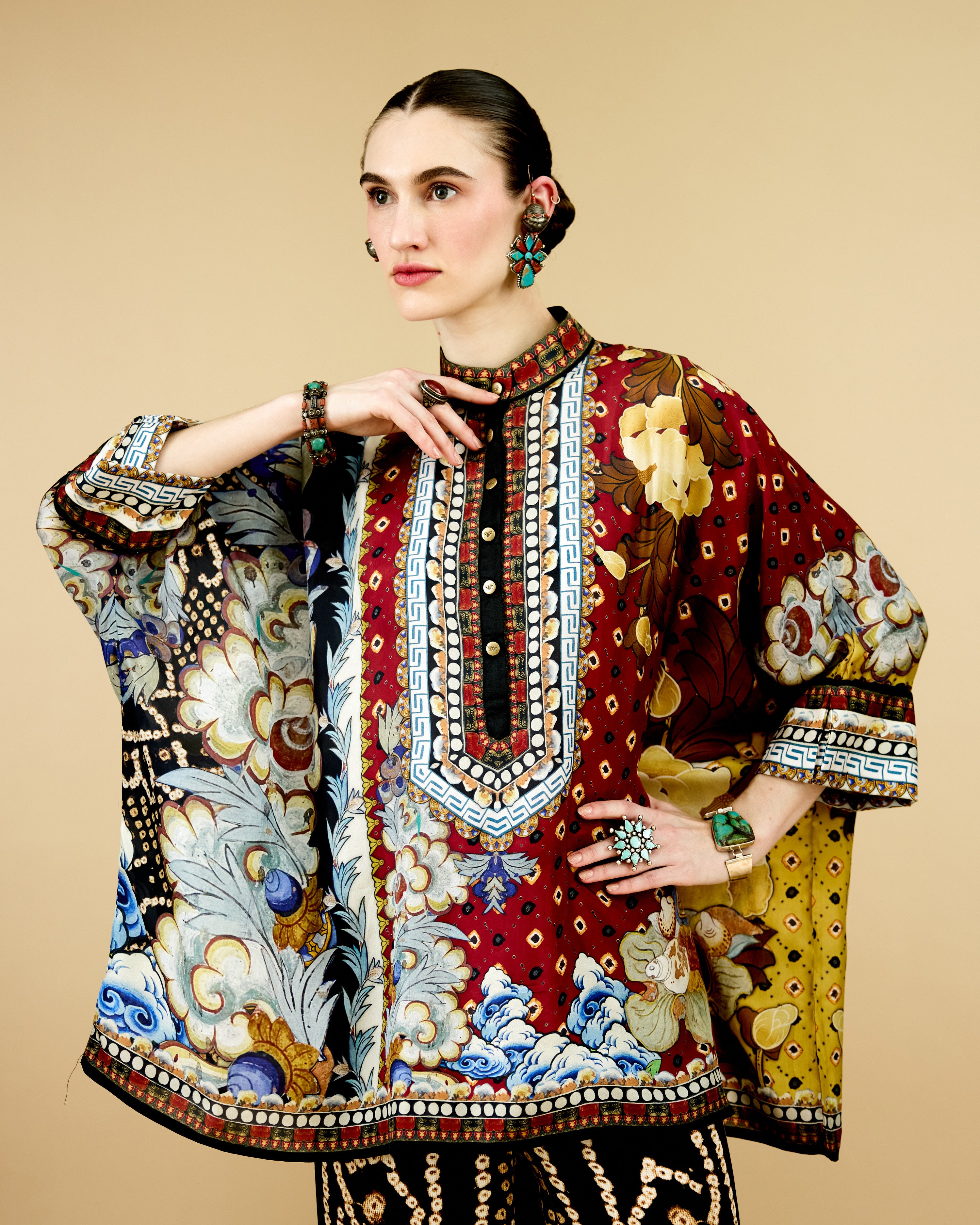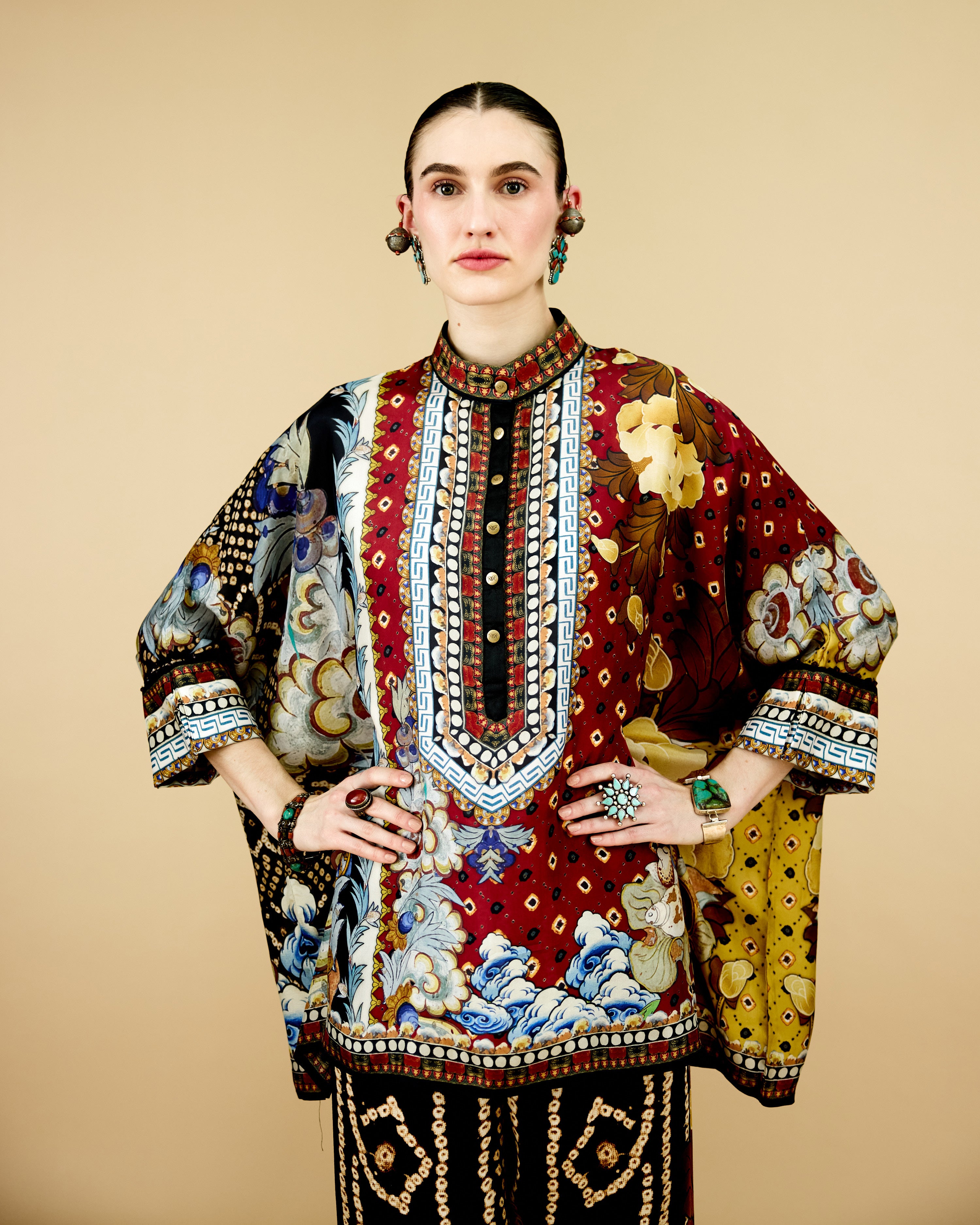 This tunic comes with a coordinating printed palazzo pant which can be ordered as per the drop down menu as a set.
