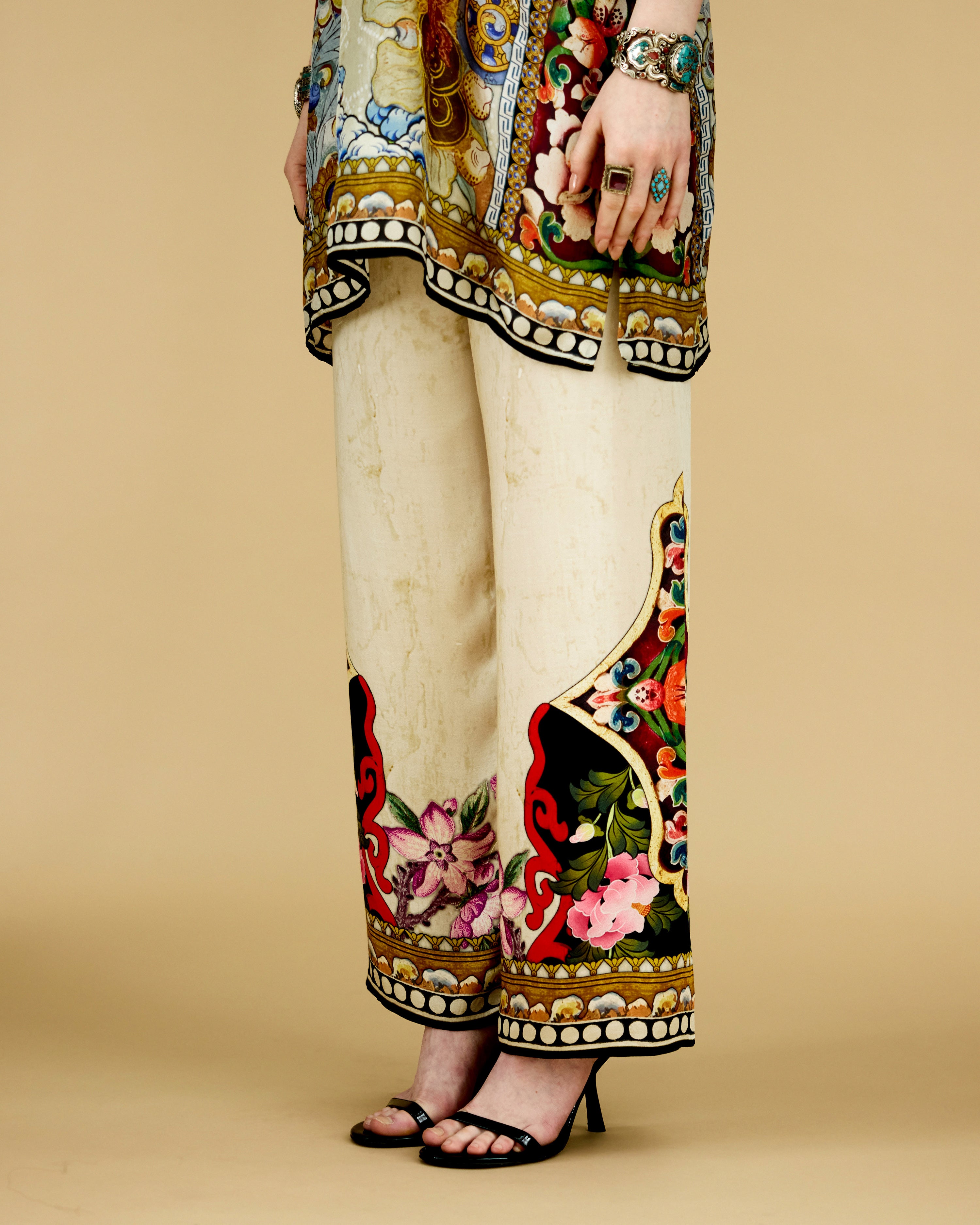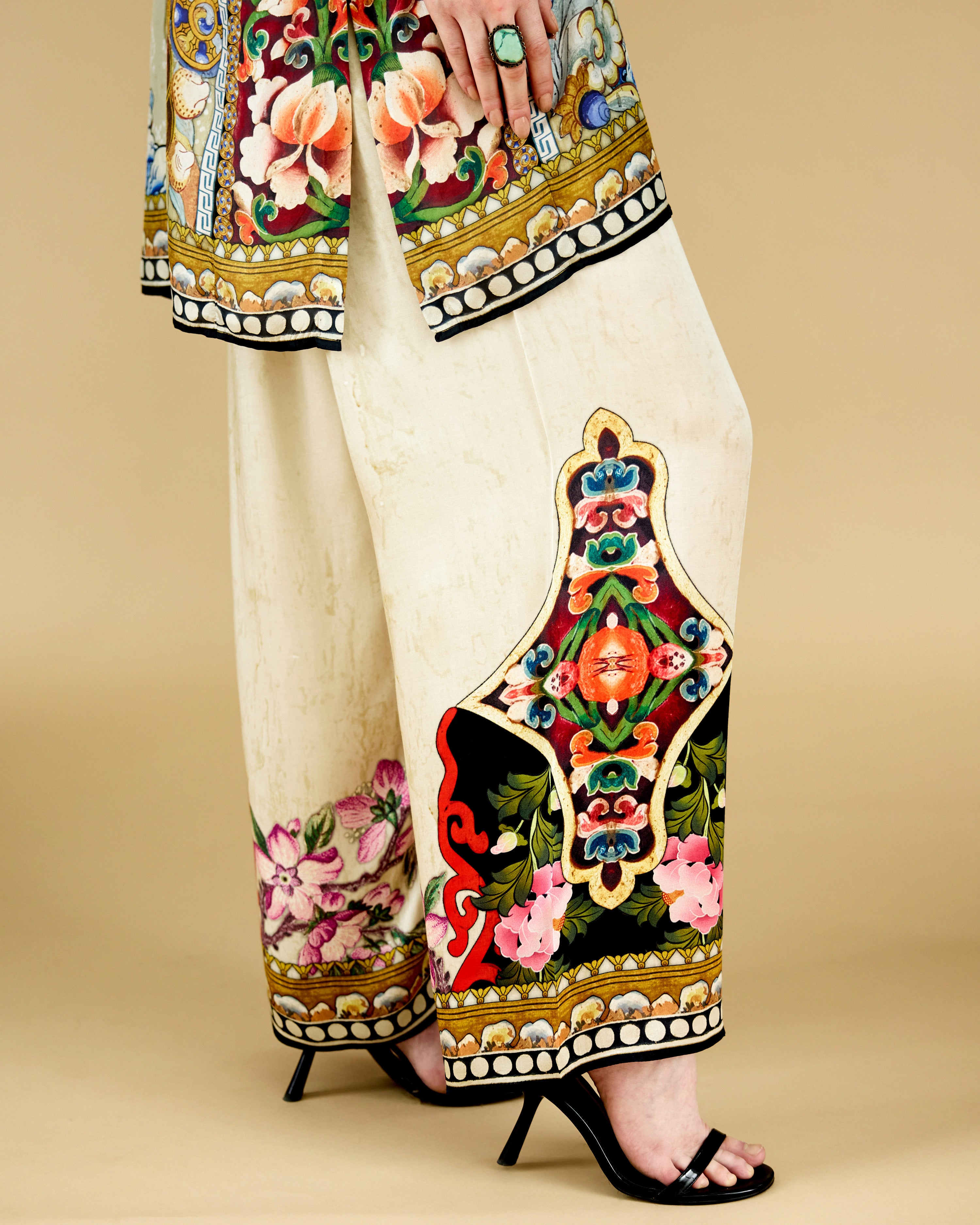 This tunic comes with our coordinating printed Palazzo pant with a printed border which can be ordered as per the drop down menu as a set.