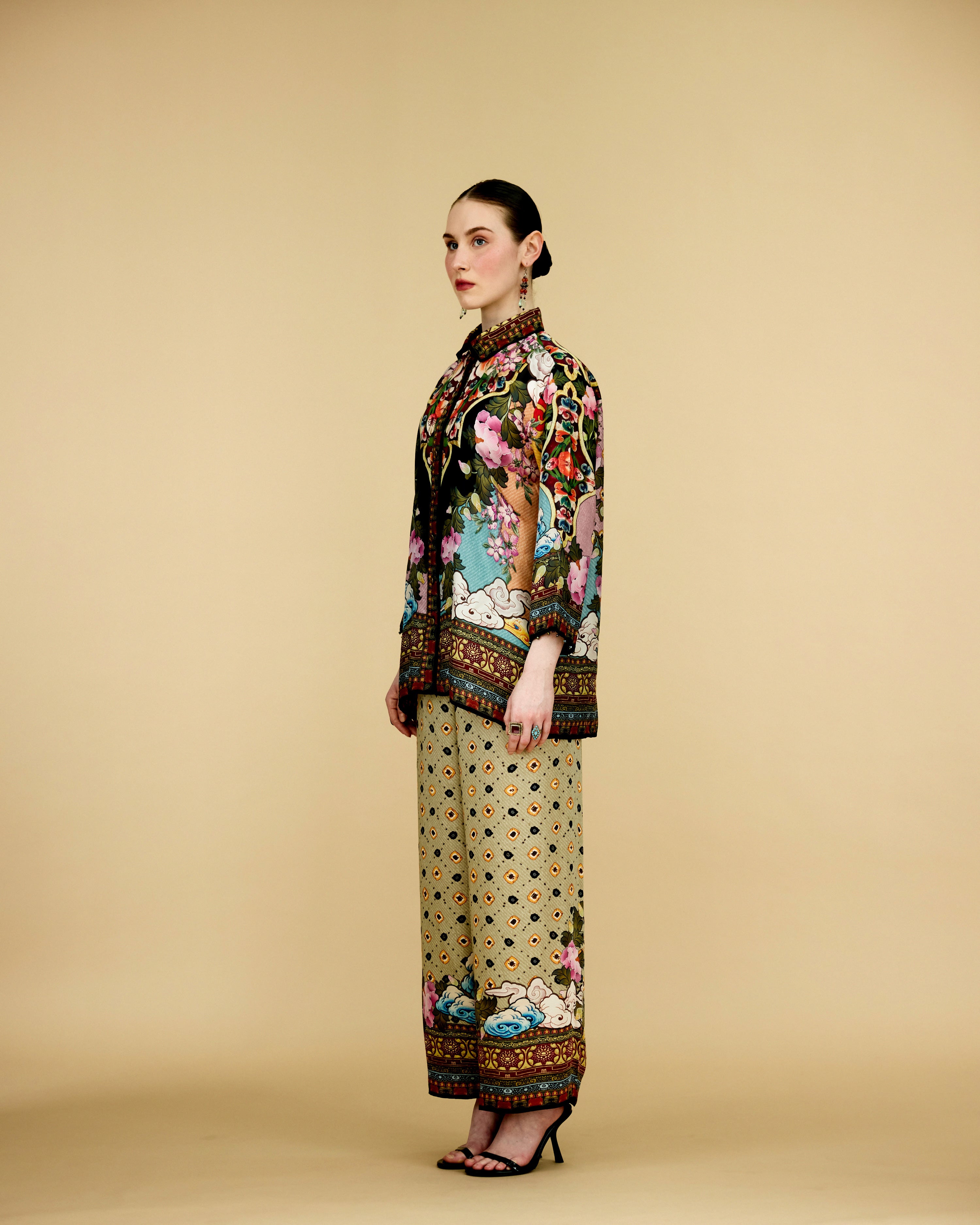 This shirt can also teamed with a coordinating Printed palazzos with a printed border at the hem.