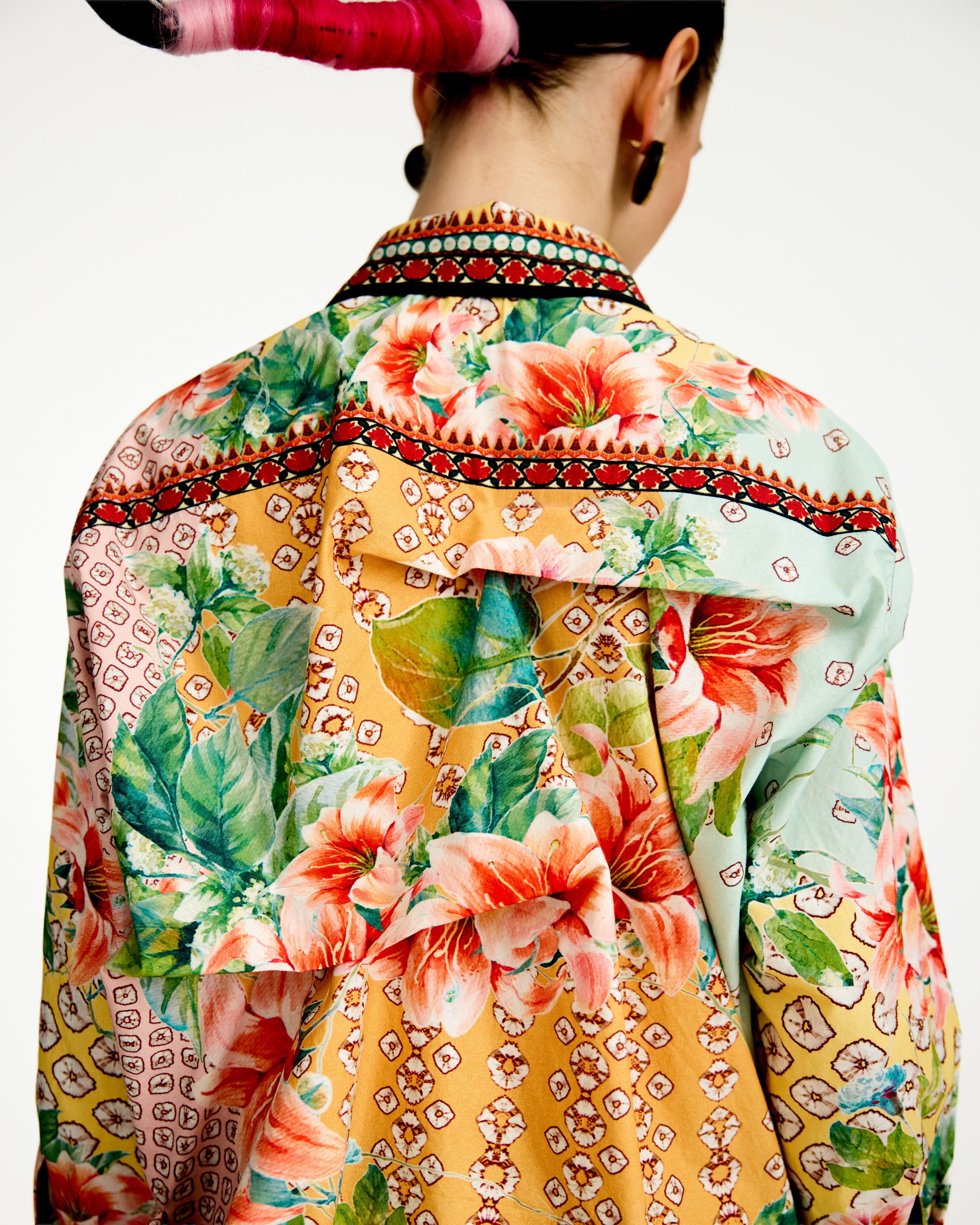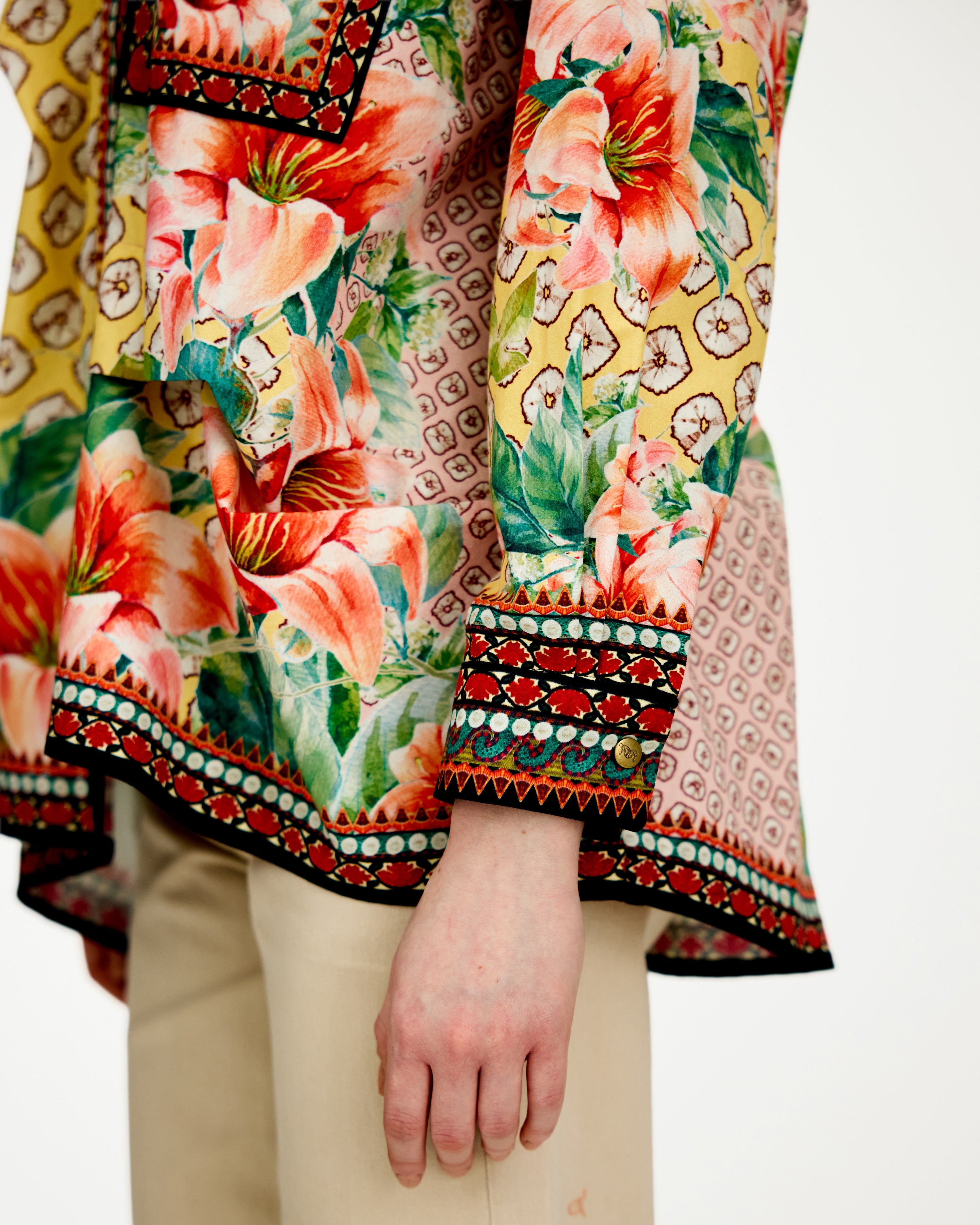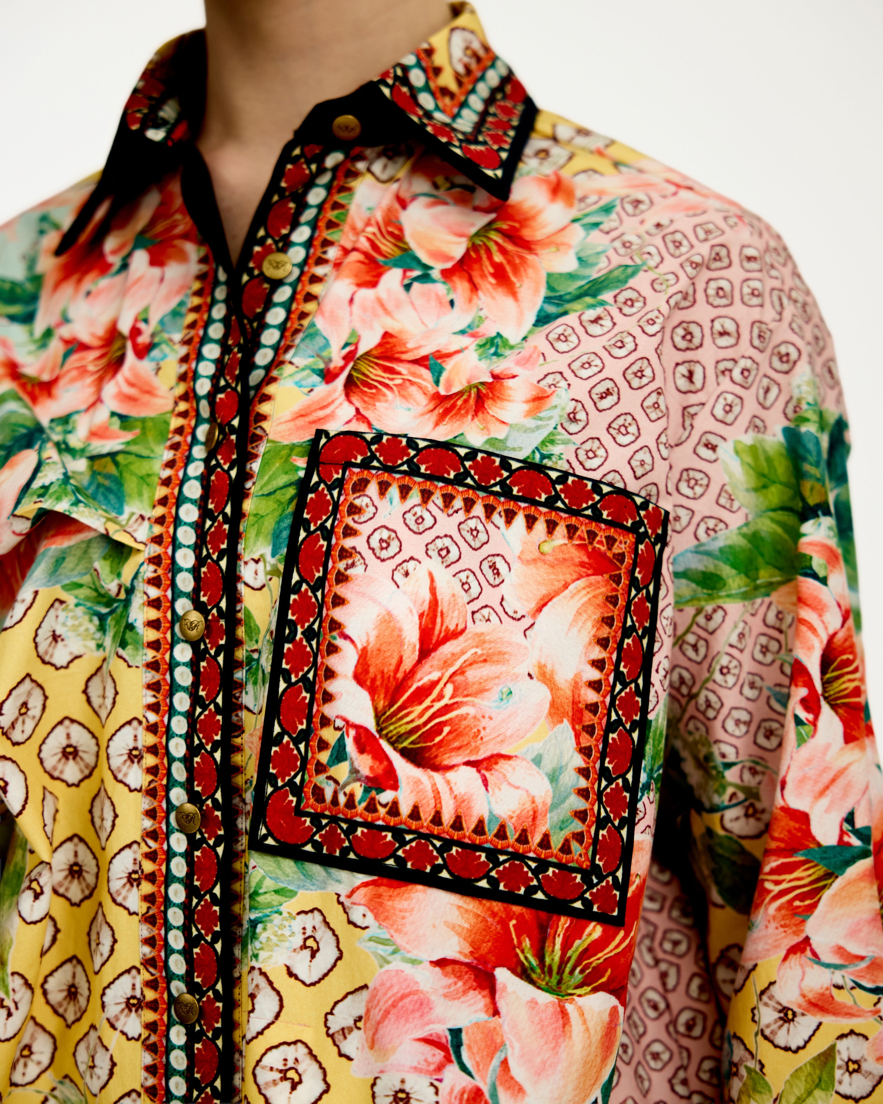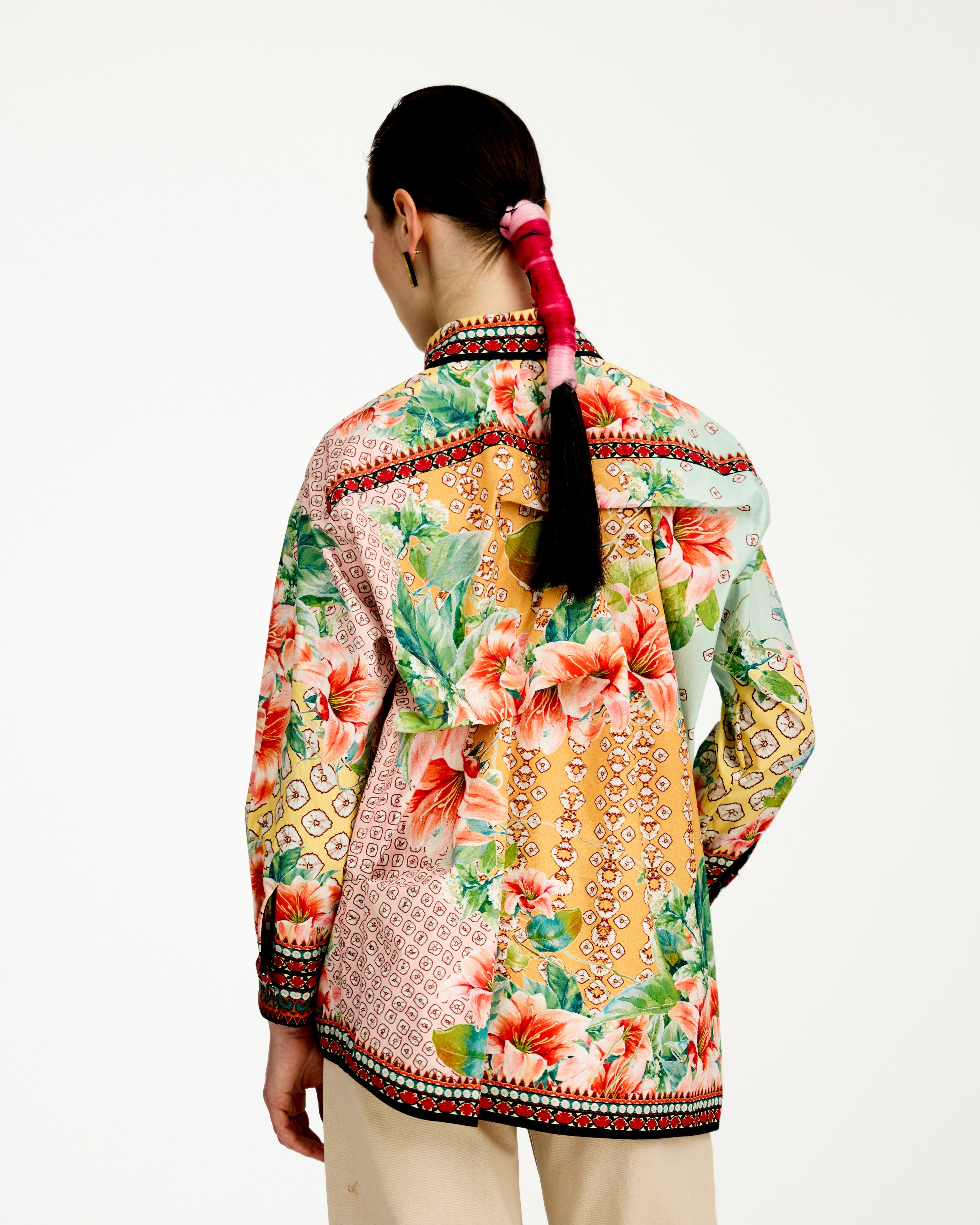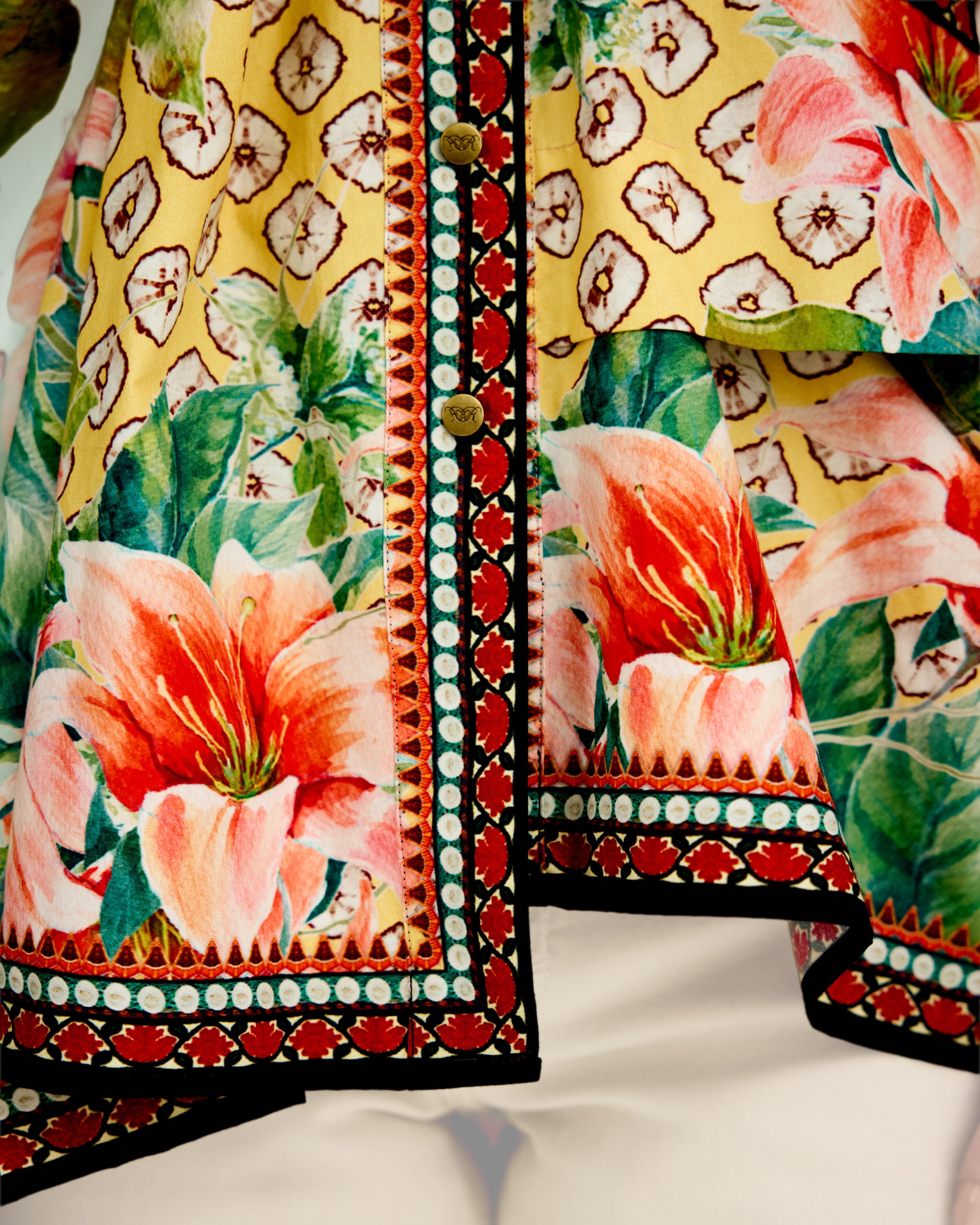 The Asiya assymetric front shirt has a collar and full sleeves with a cuff closure.