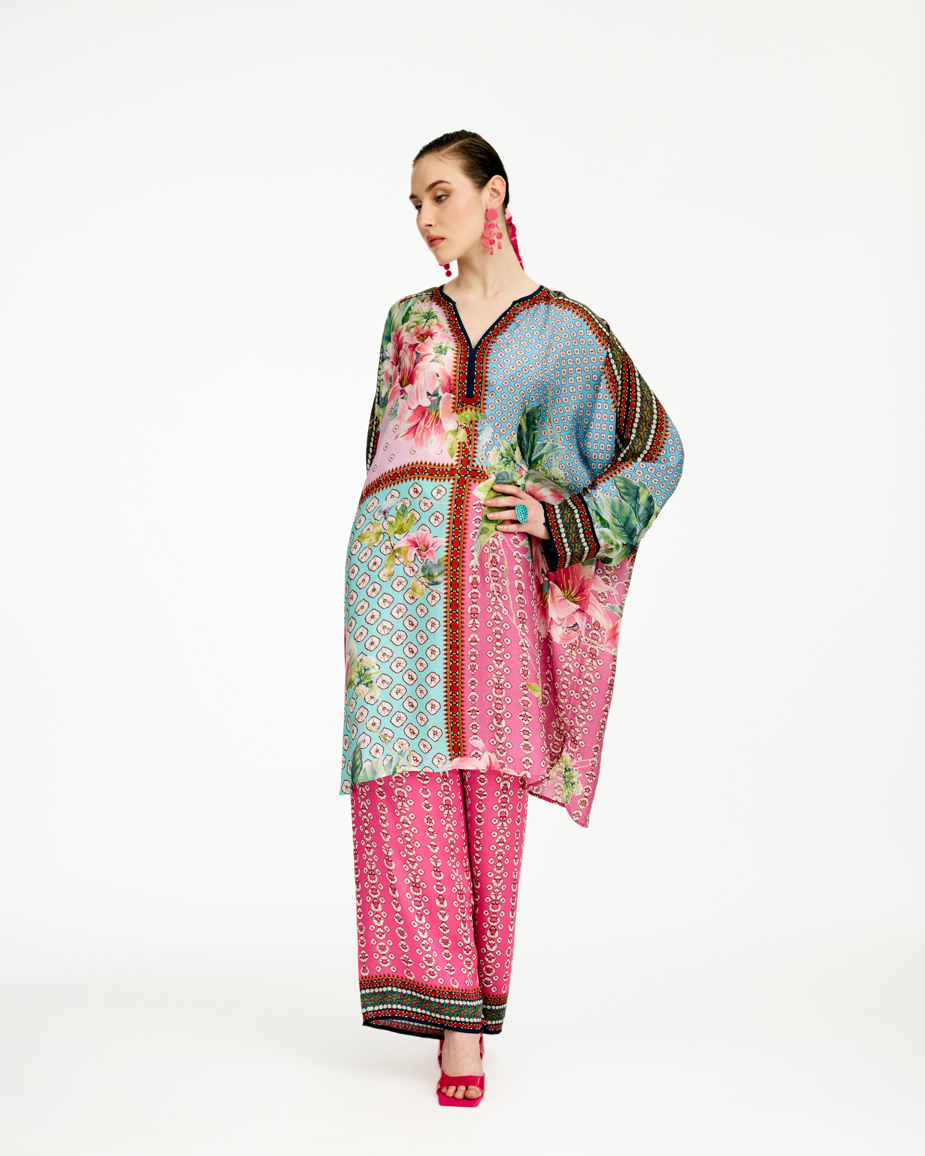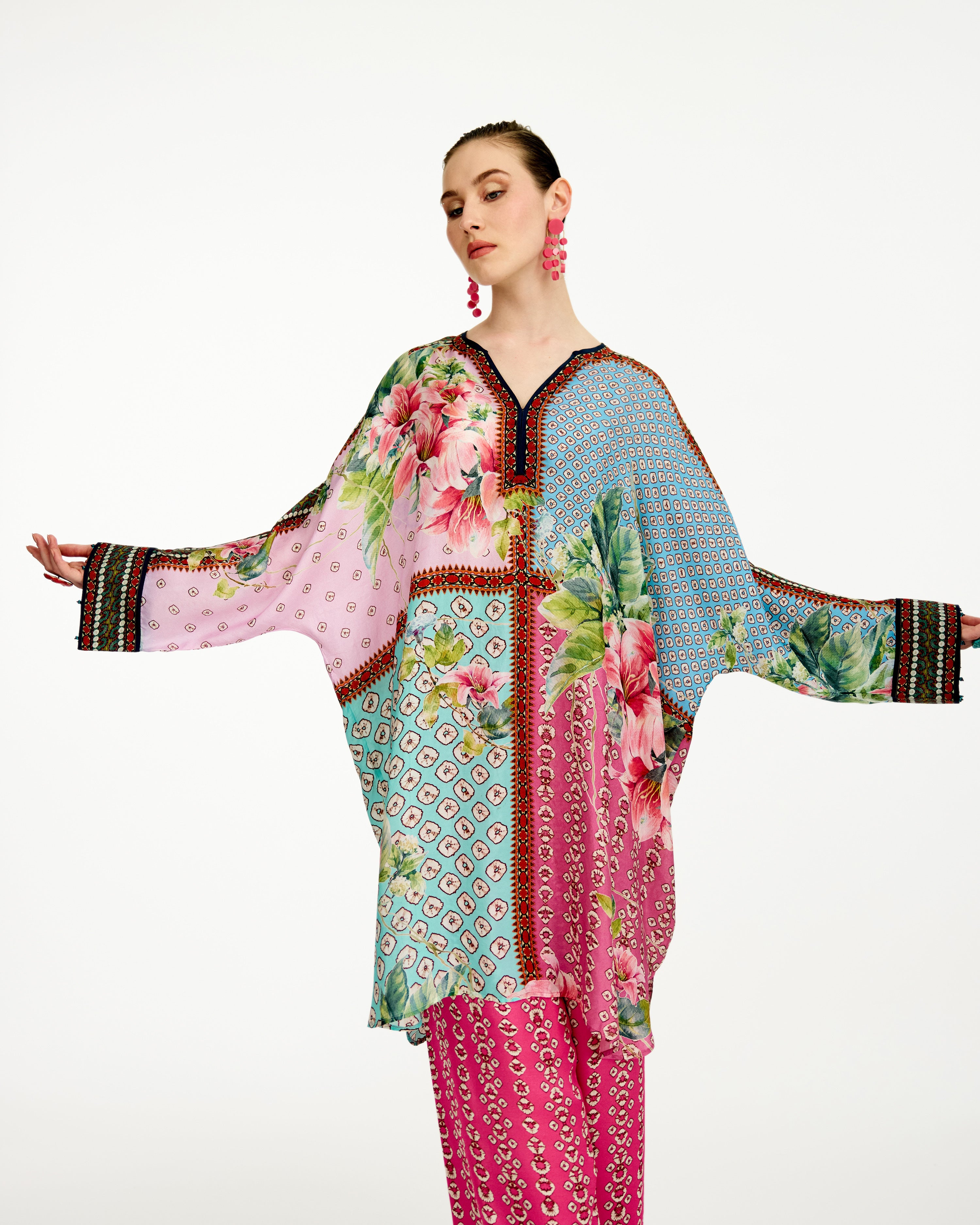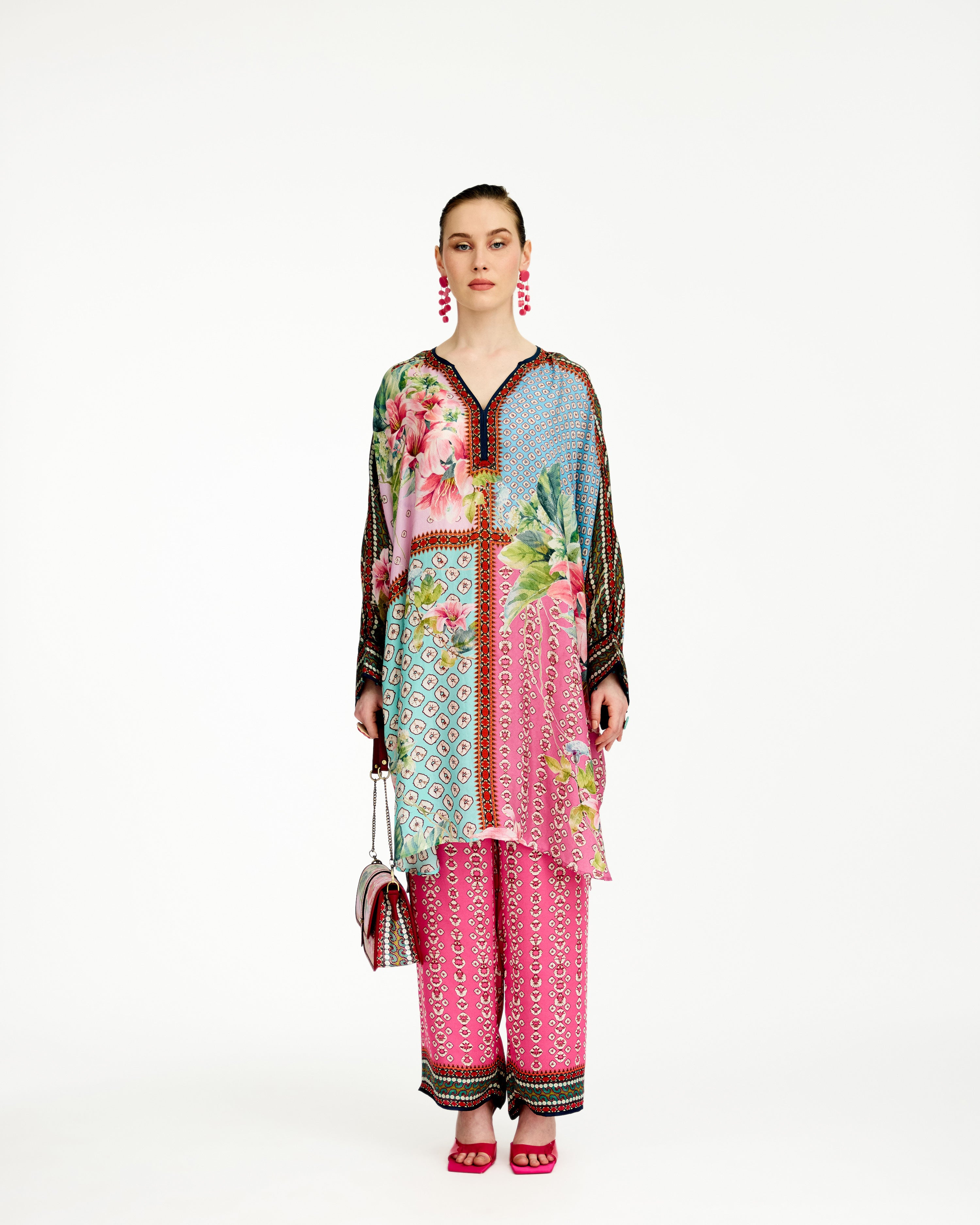 This tunic comes with our coordinating printed Palazzo pant with a printed border which can be ordered as per the drop down menu as a set.