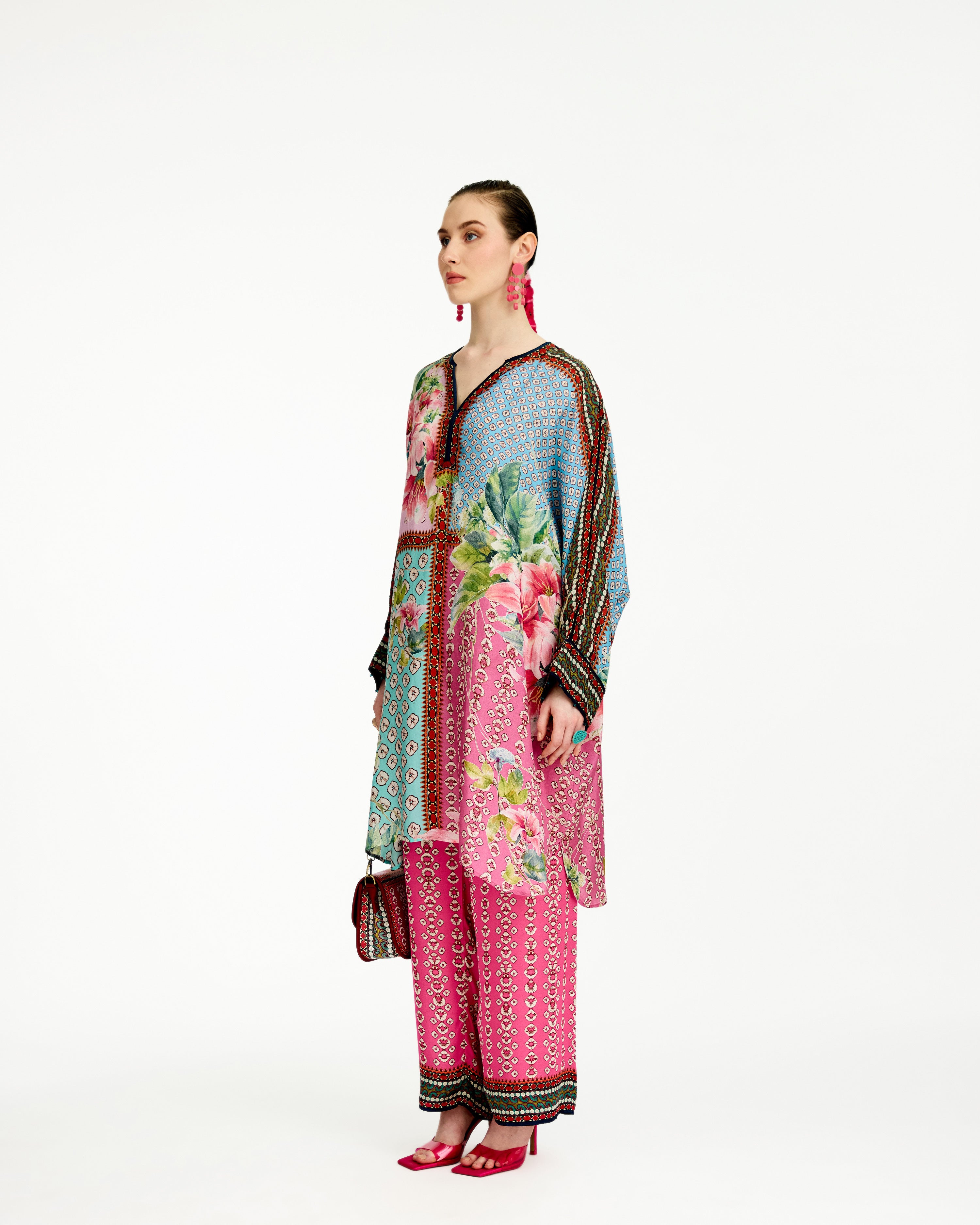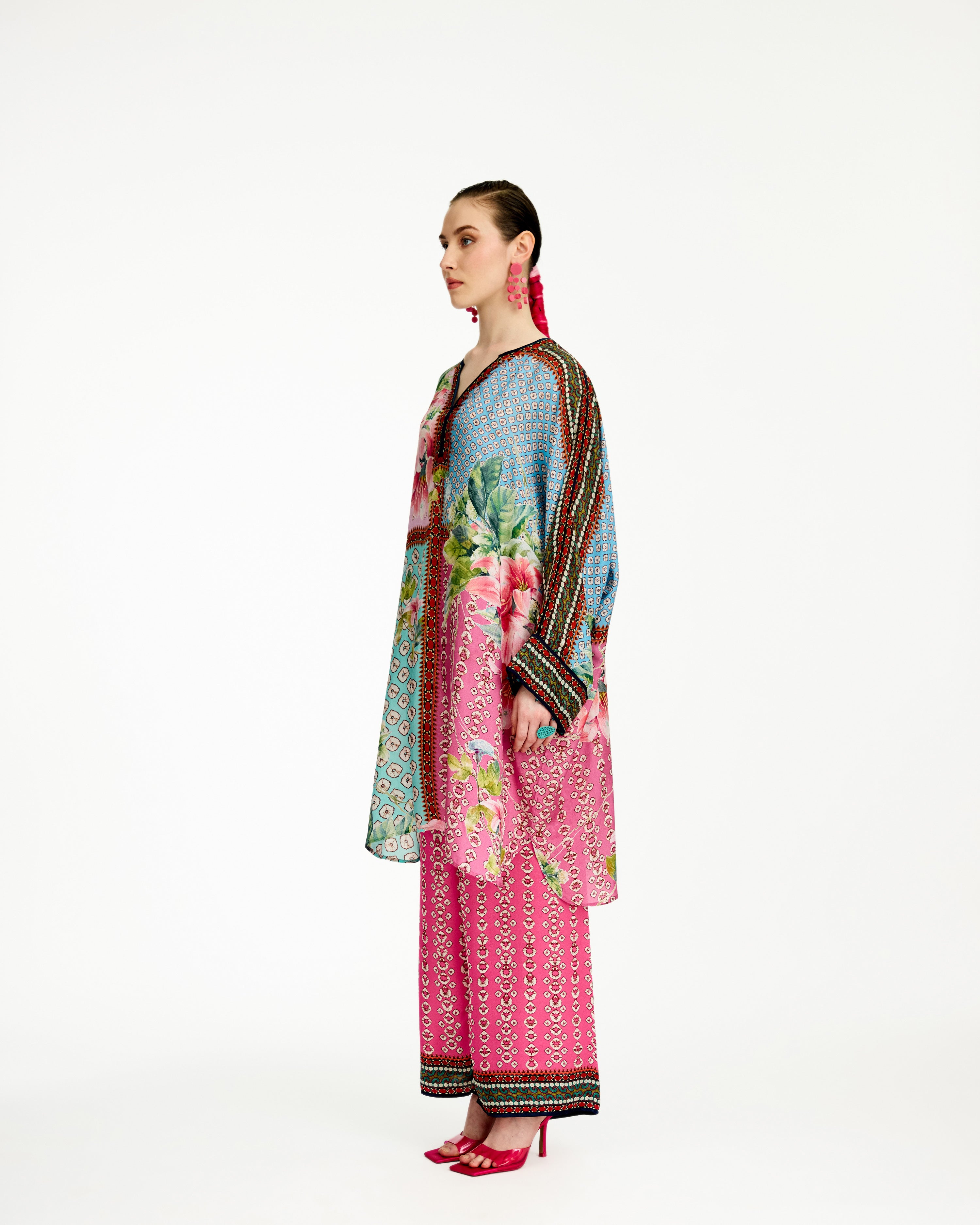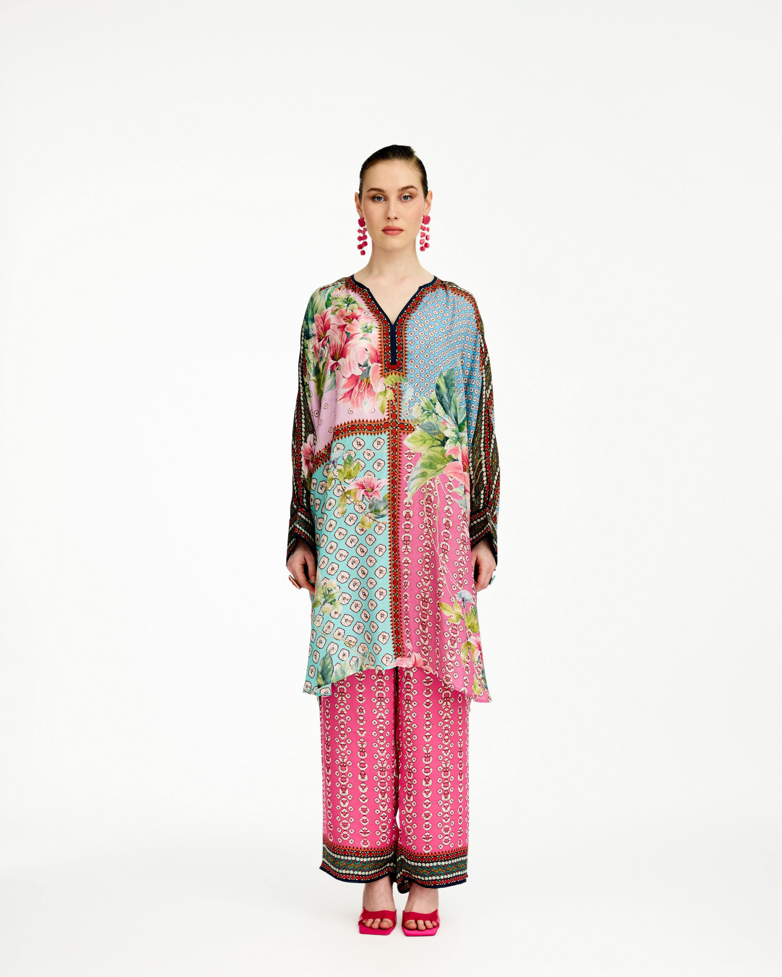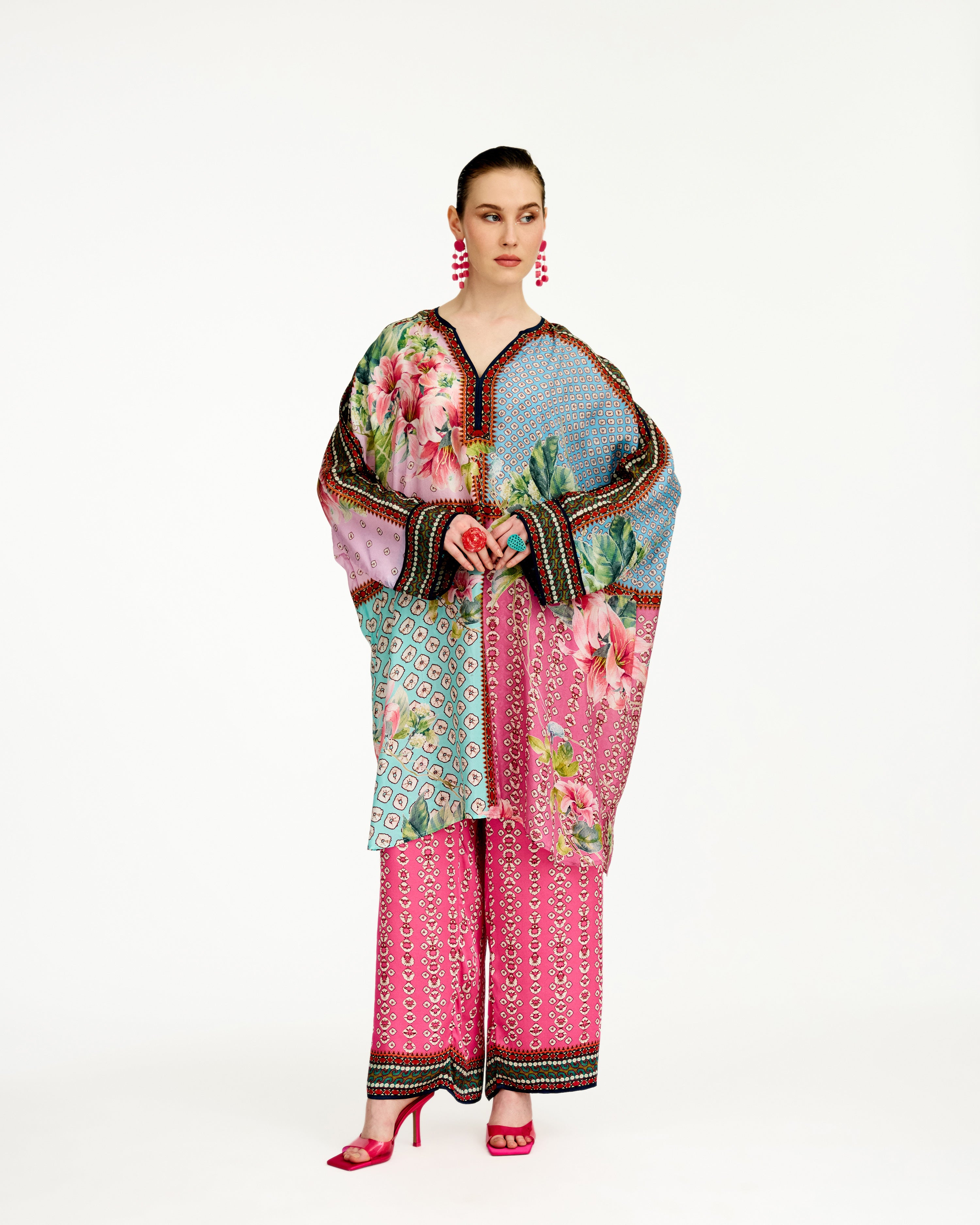 This tunic comes with our coordinating printed Palazzo pant with a printed border which can be ordered as per the drop down menu as a set.