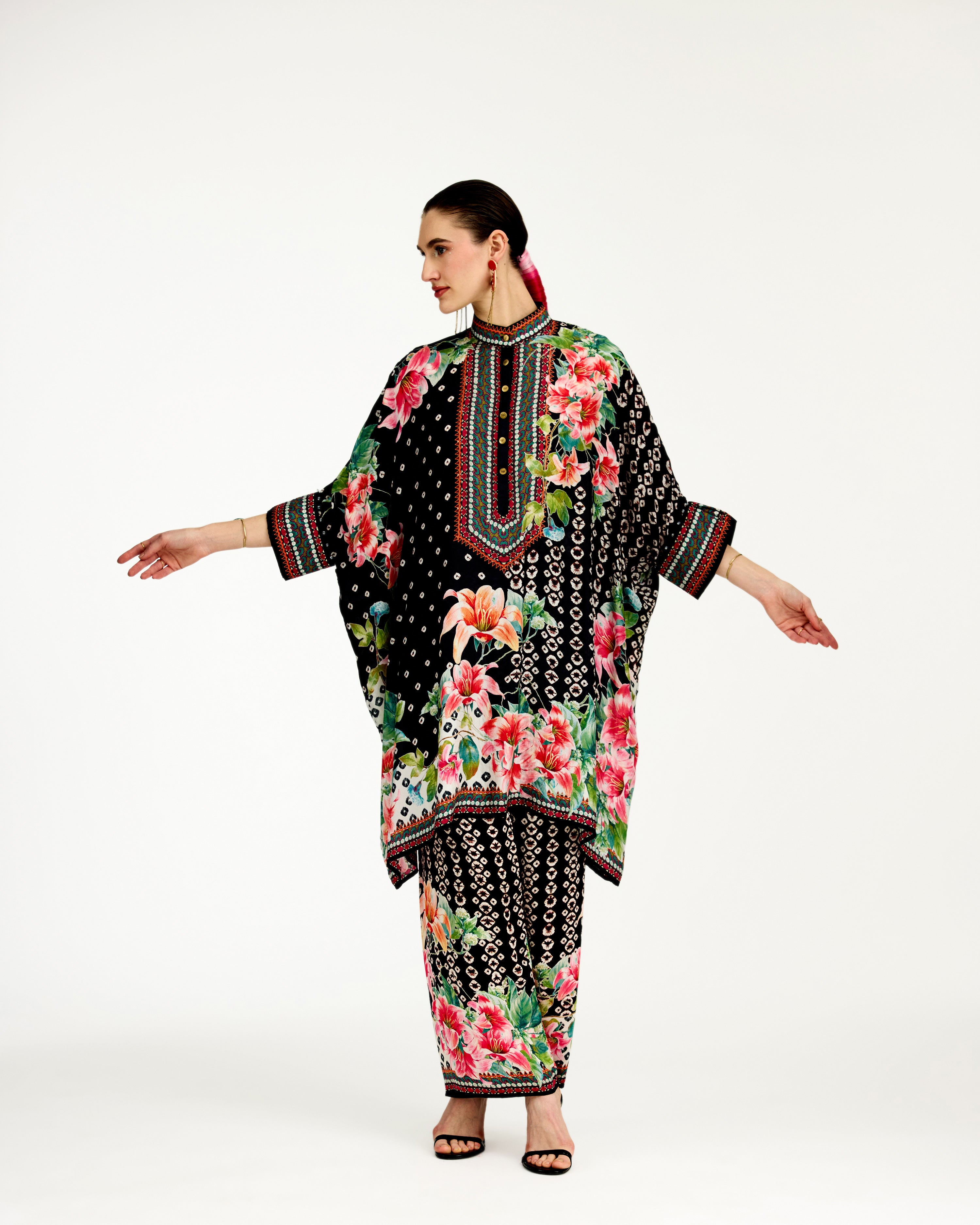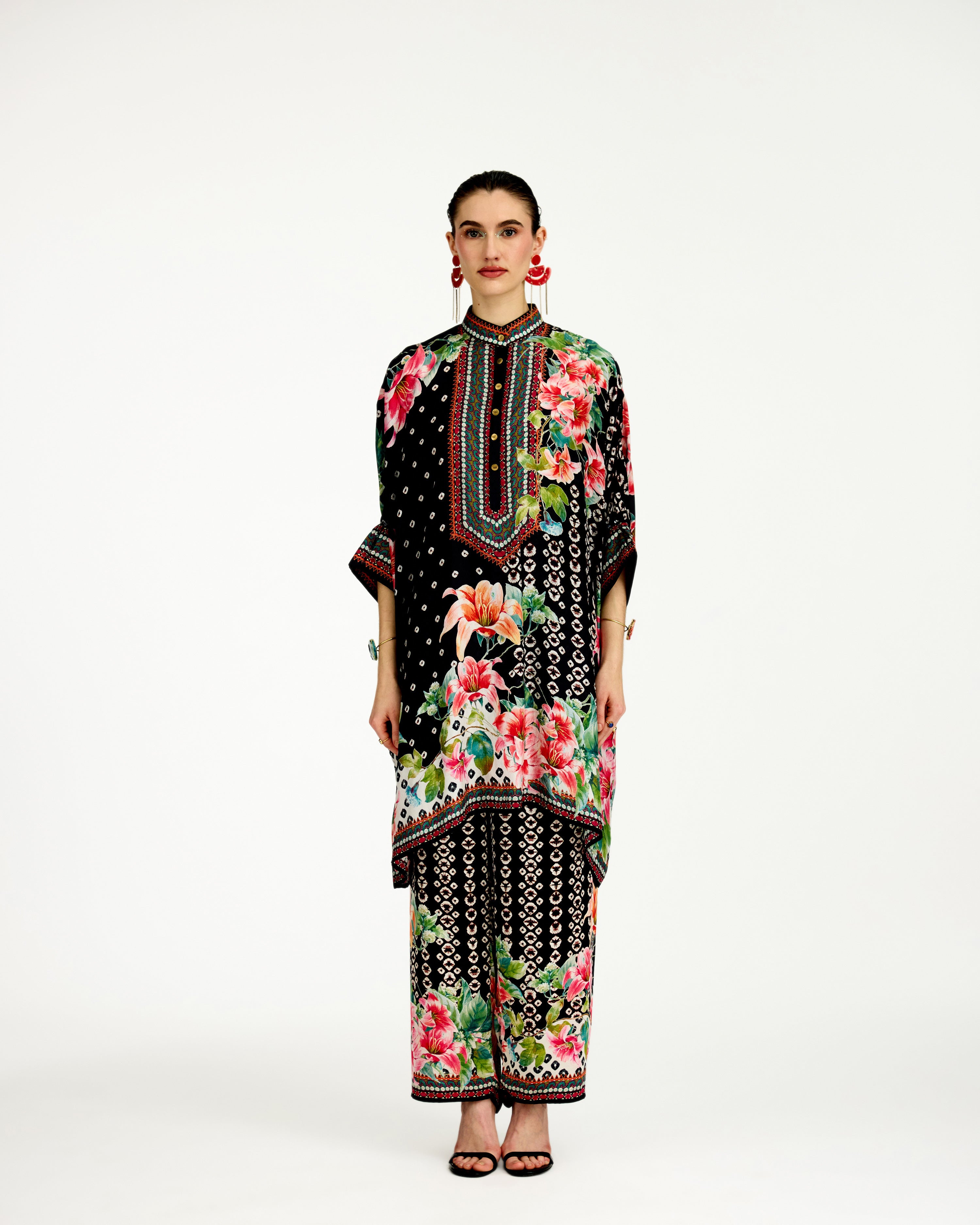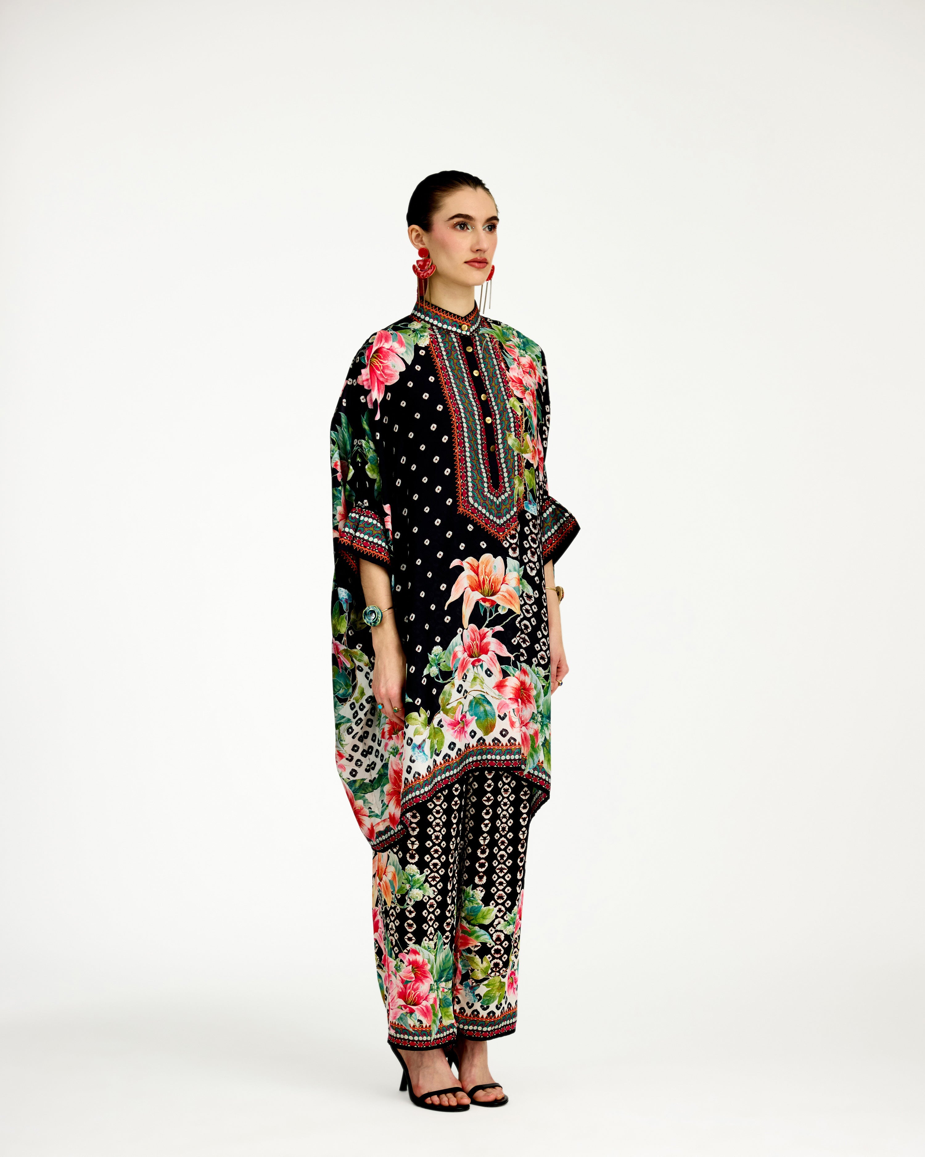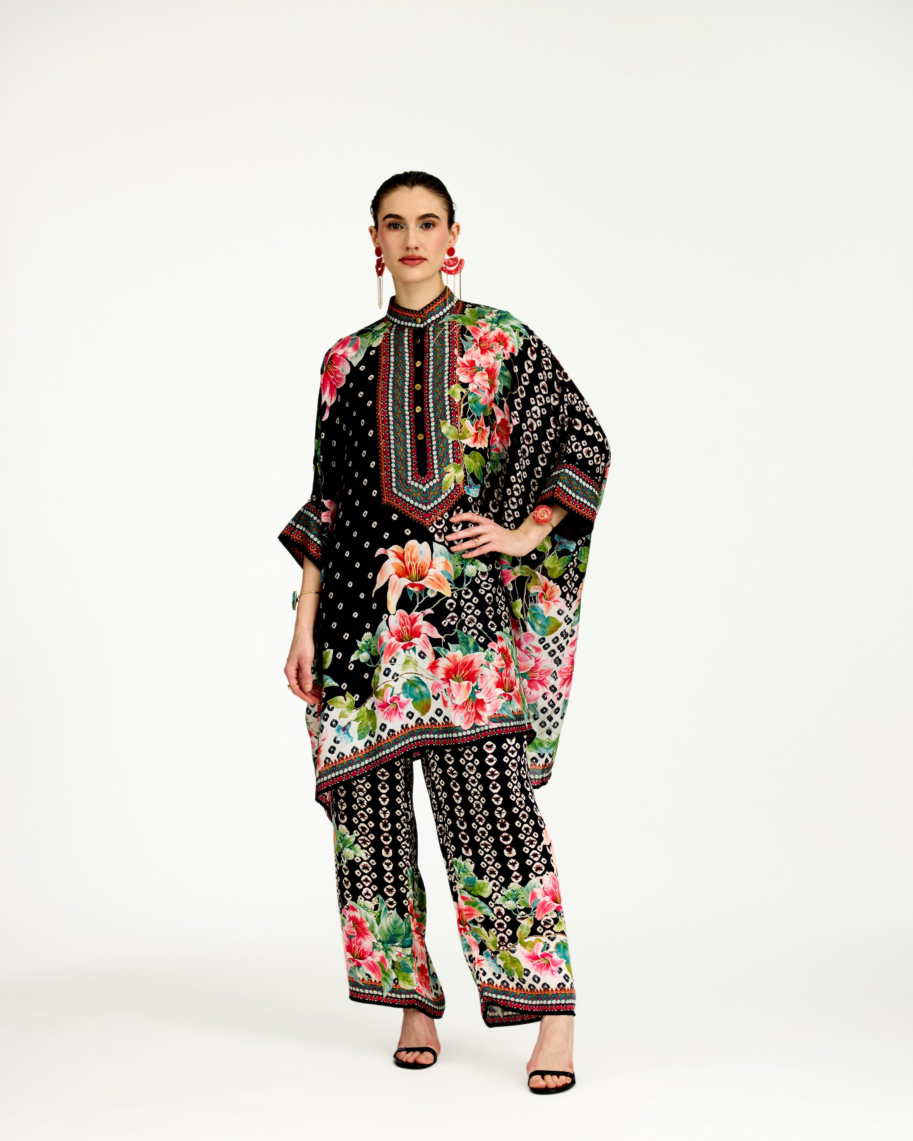 This tunic comes with a coordinating printed Palazzo pant which can be ordered as per the drop down menu as a set.