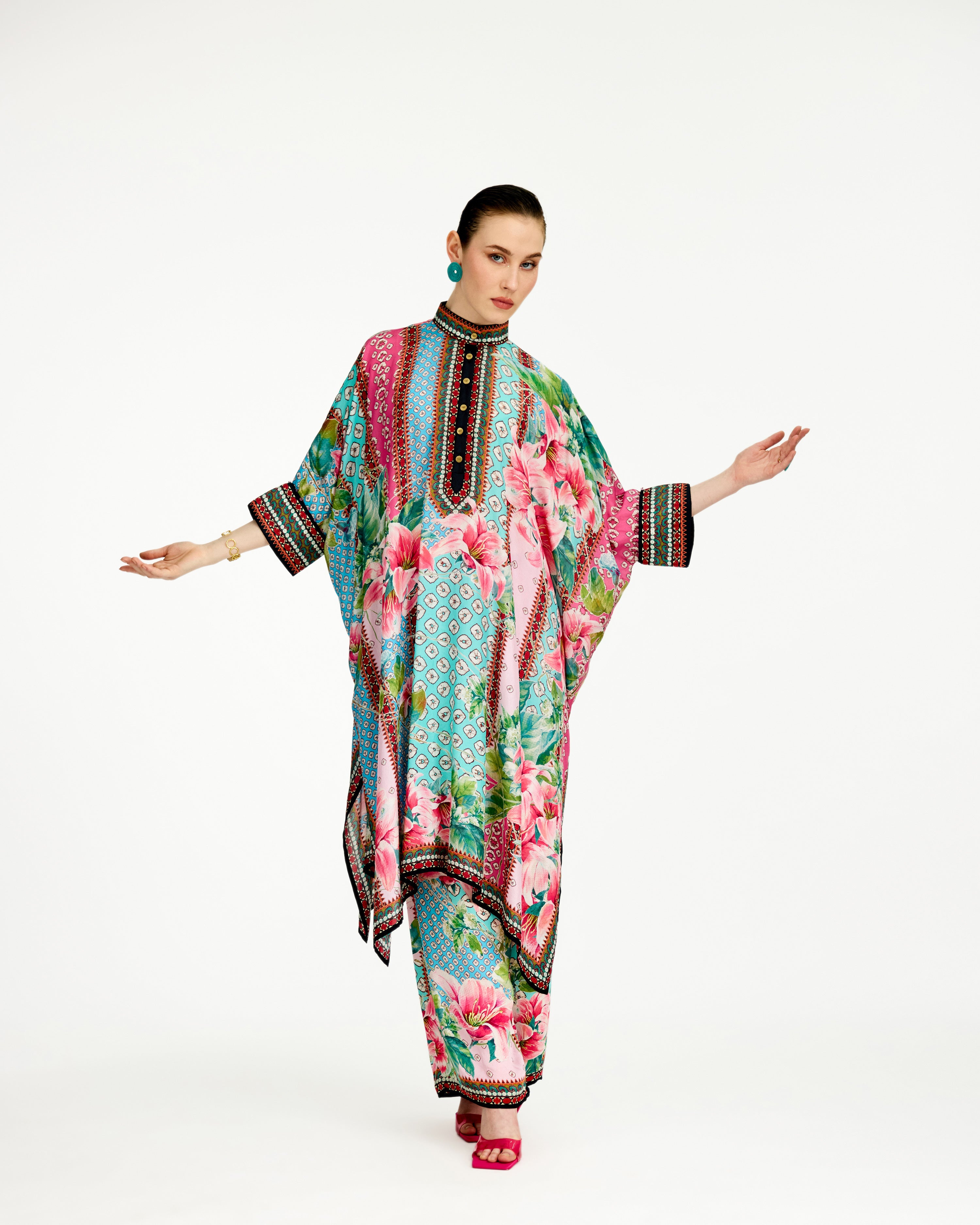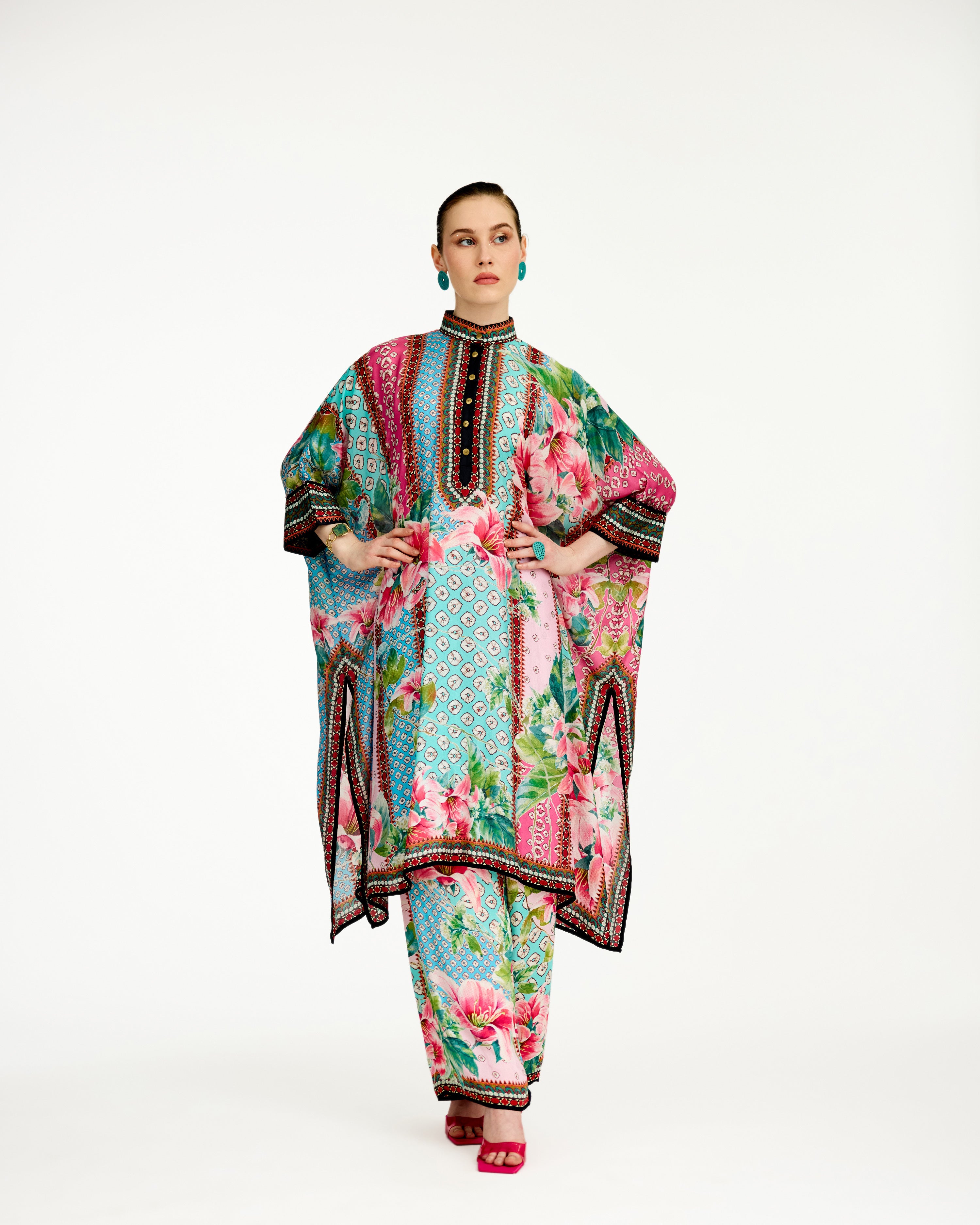 This tunic comes with a coordinating printed palazzo pant which can be ordered as per the drop down menu as a set.