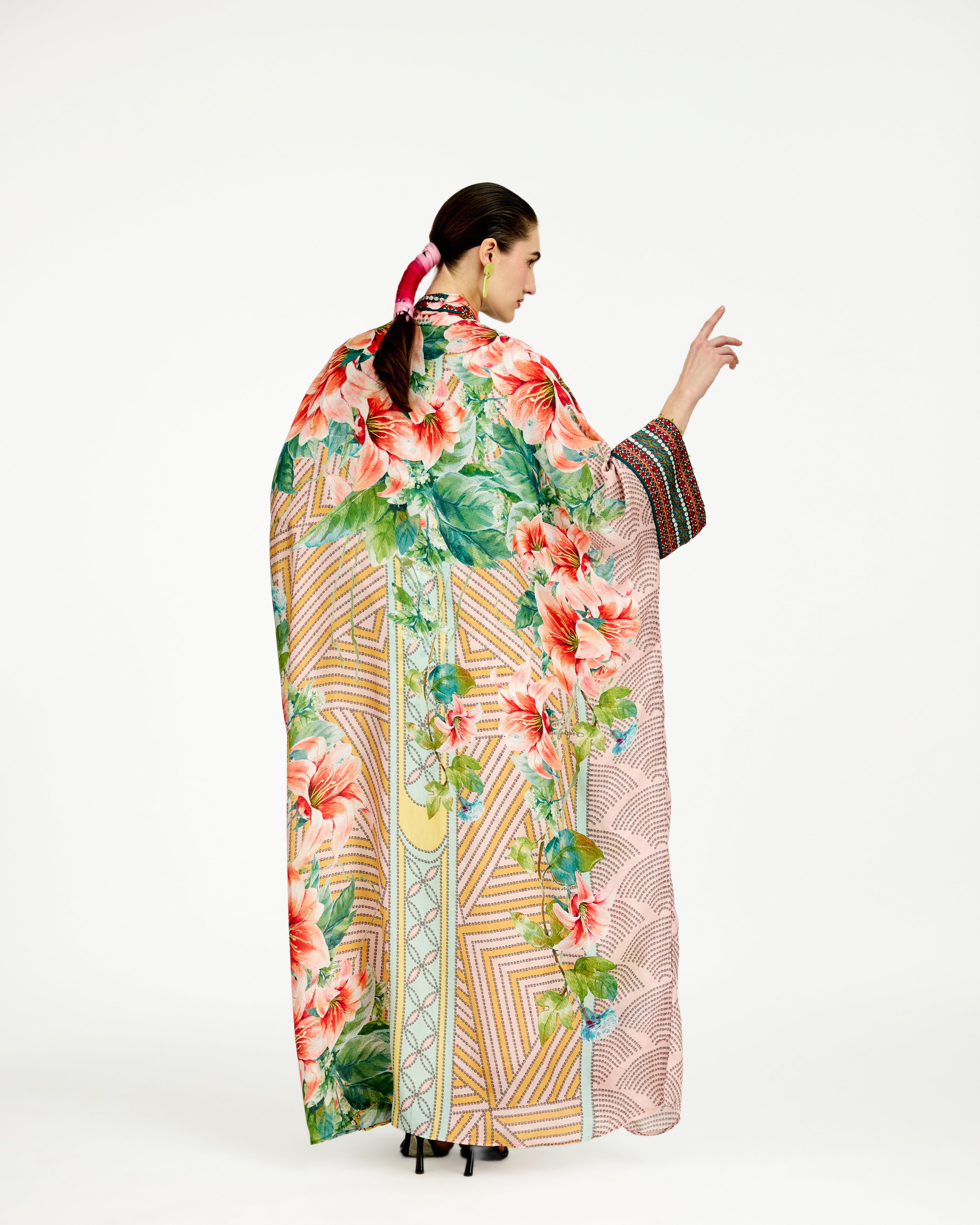 This kimono is a free size and the length may be selected from the list below while ordering it.