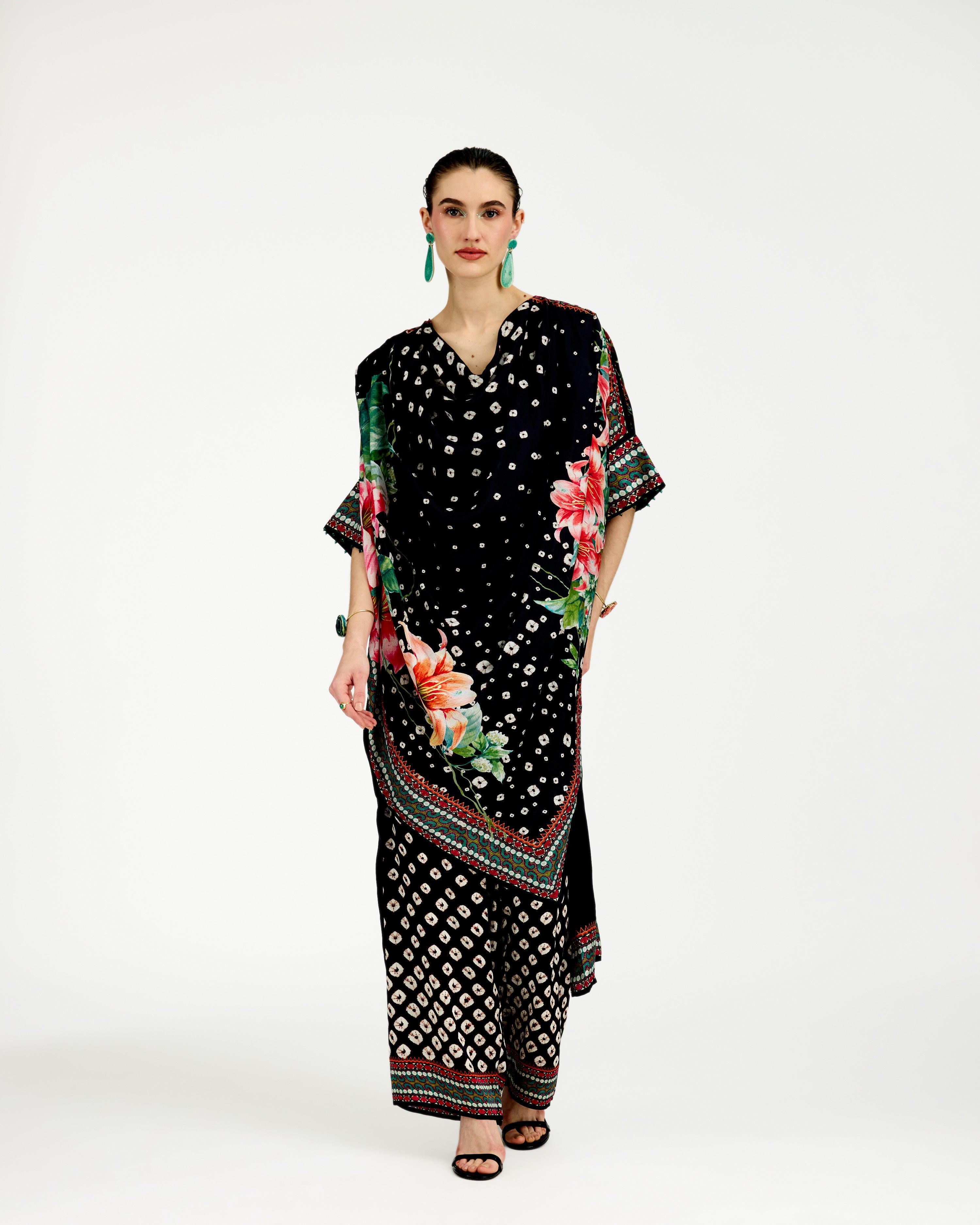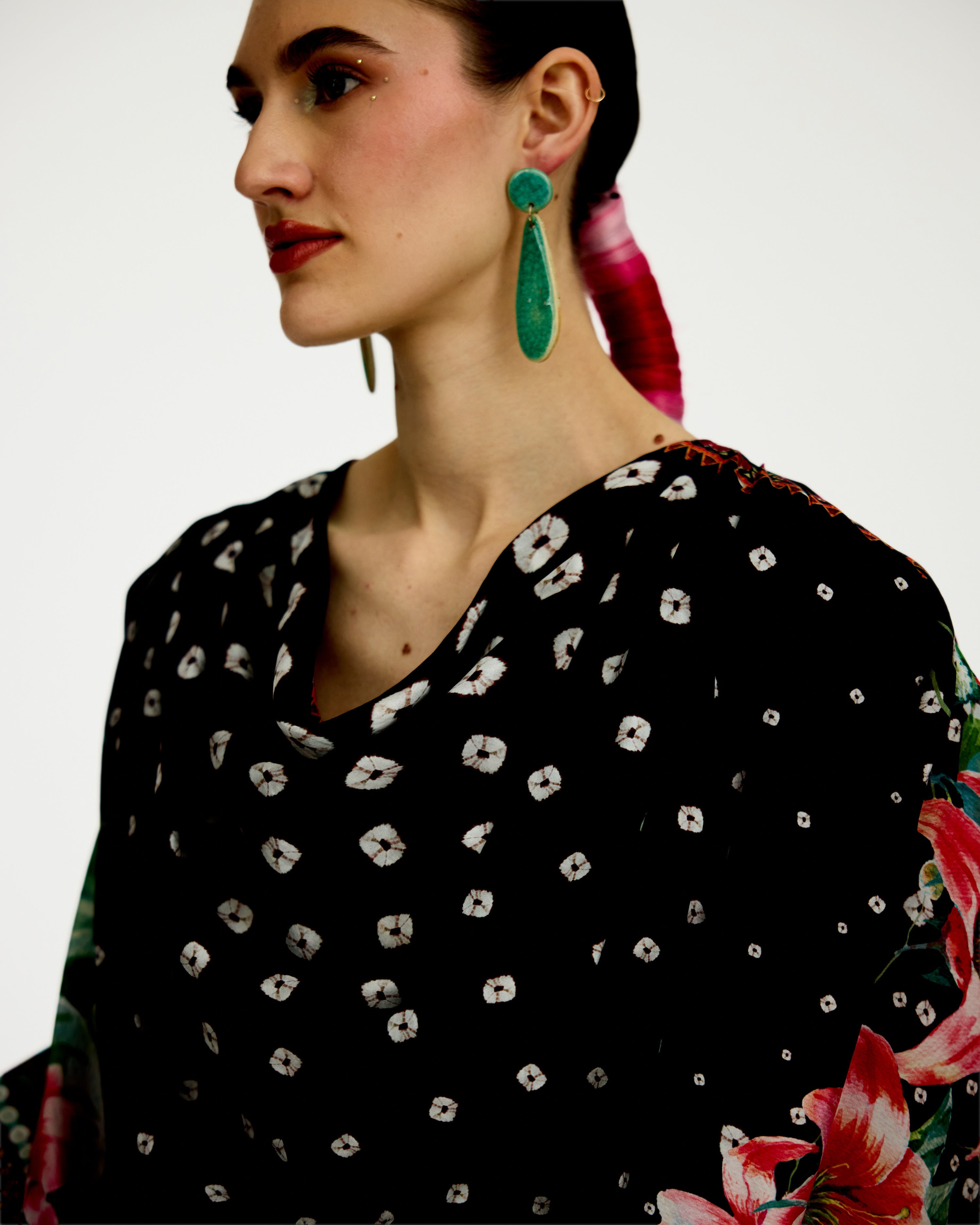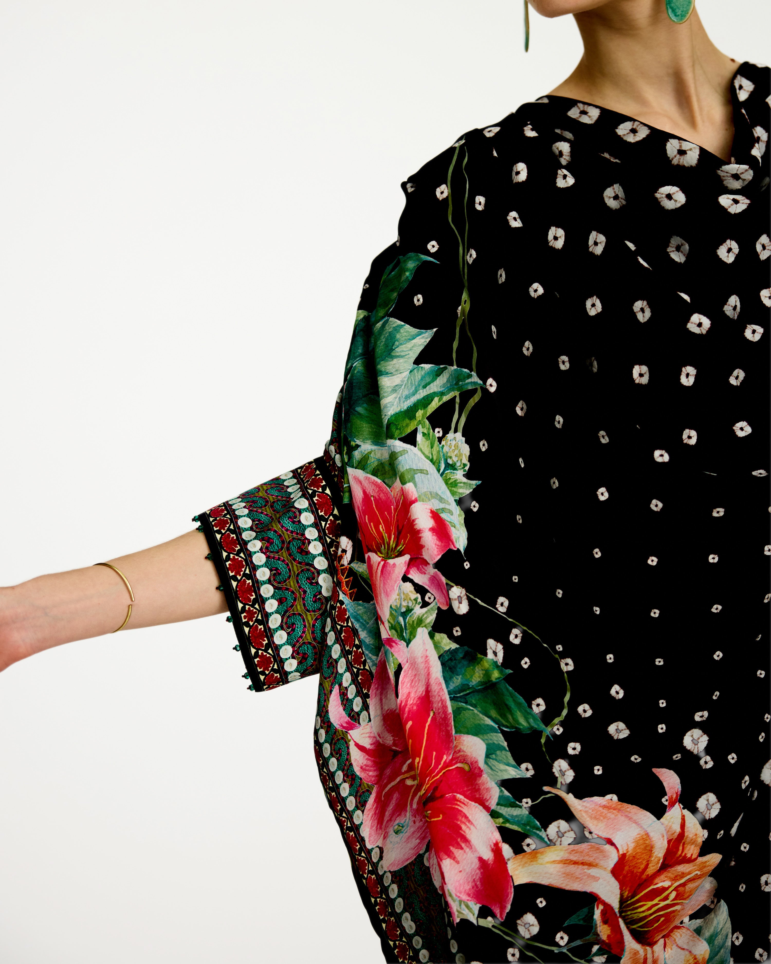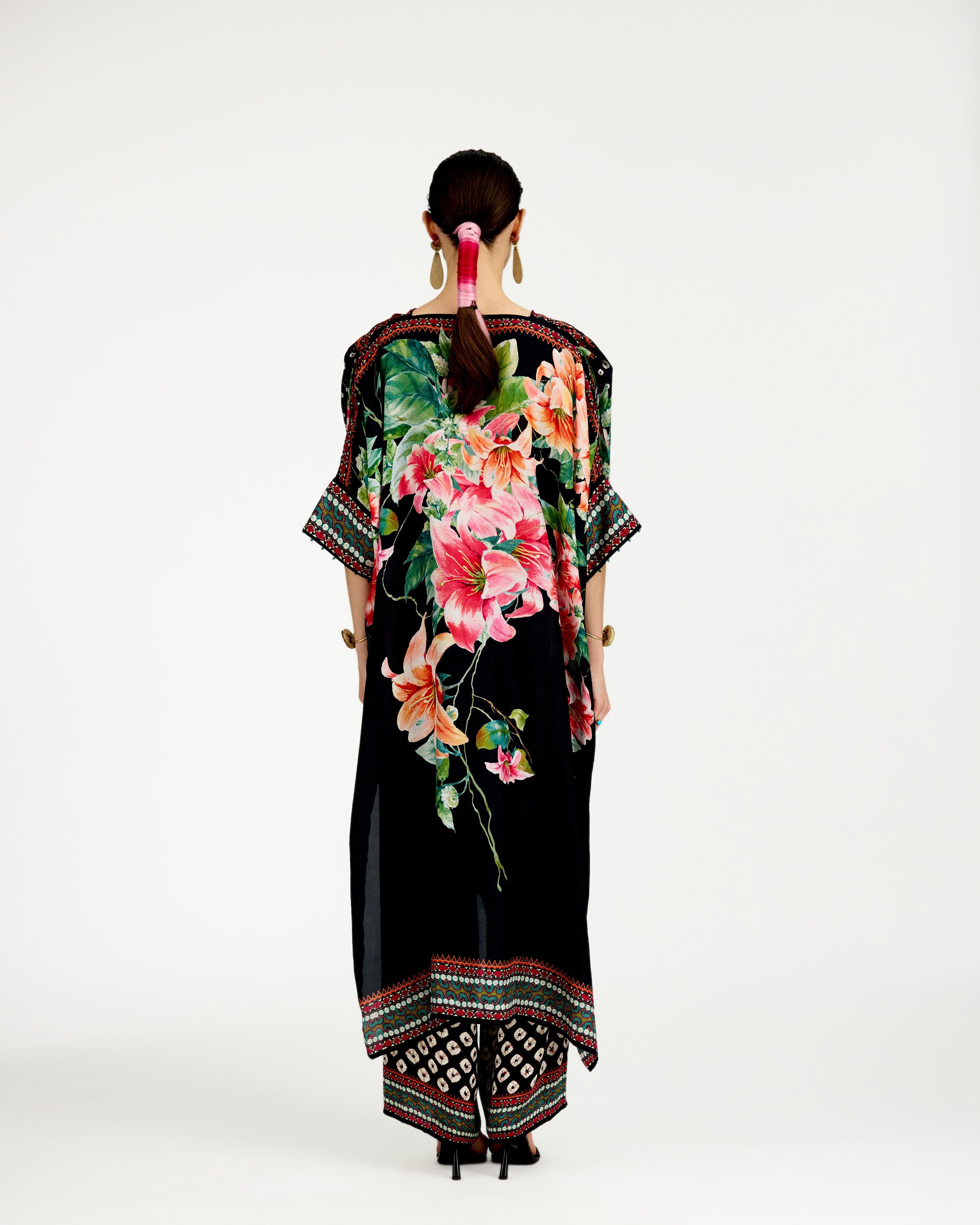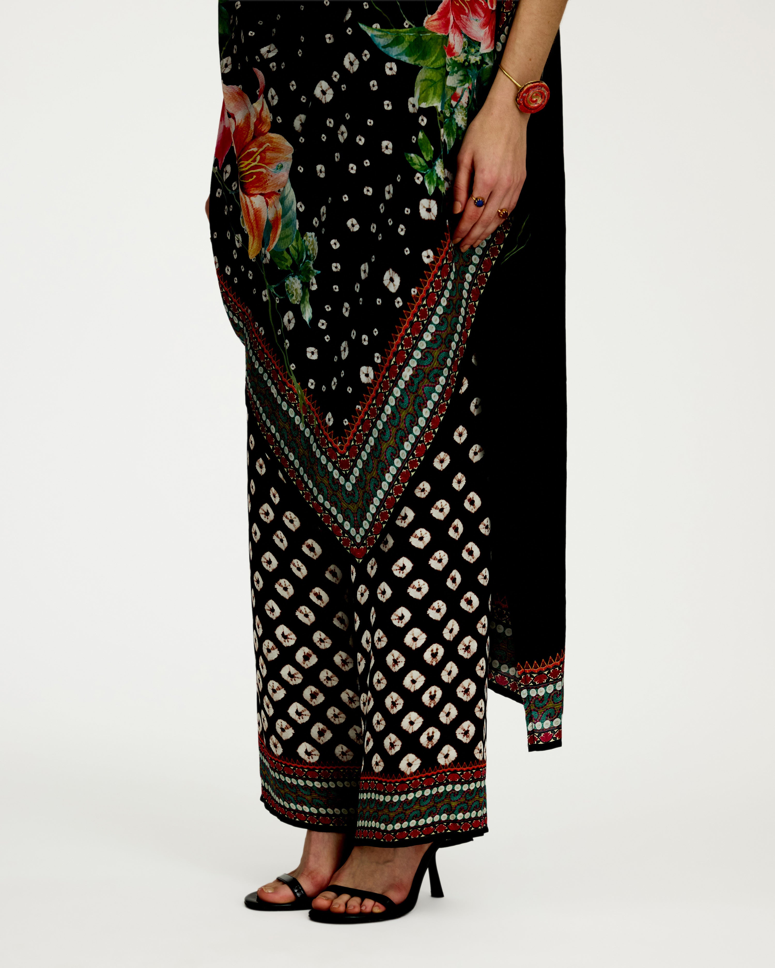 This tunic can also teamed with a coordinating Plain palazzos with a printed border at the hem.
