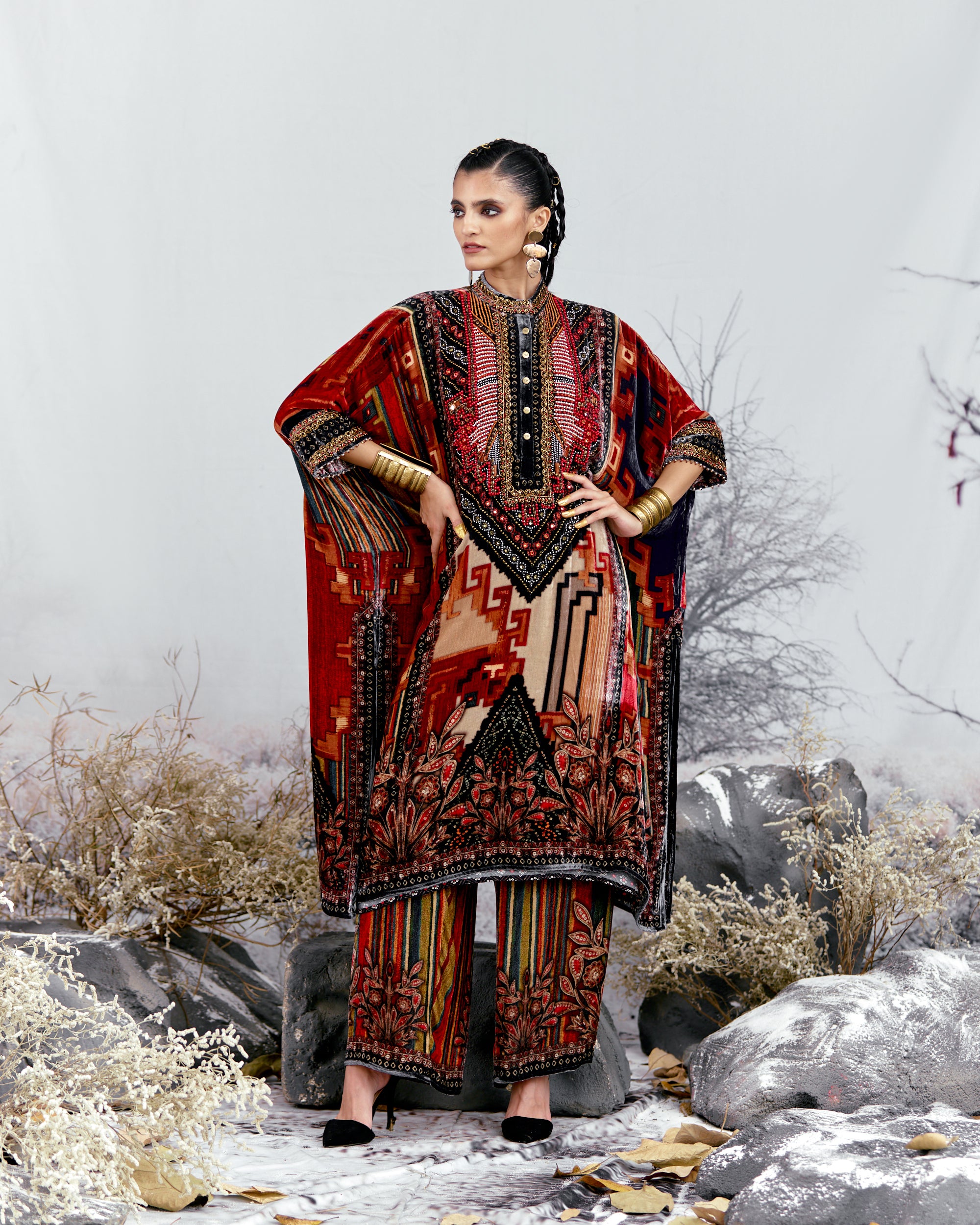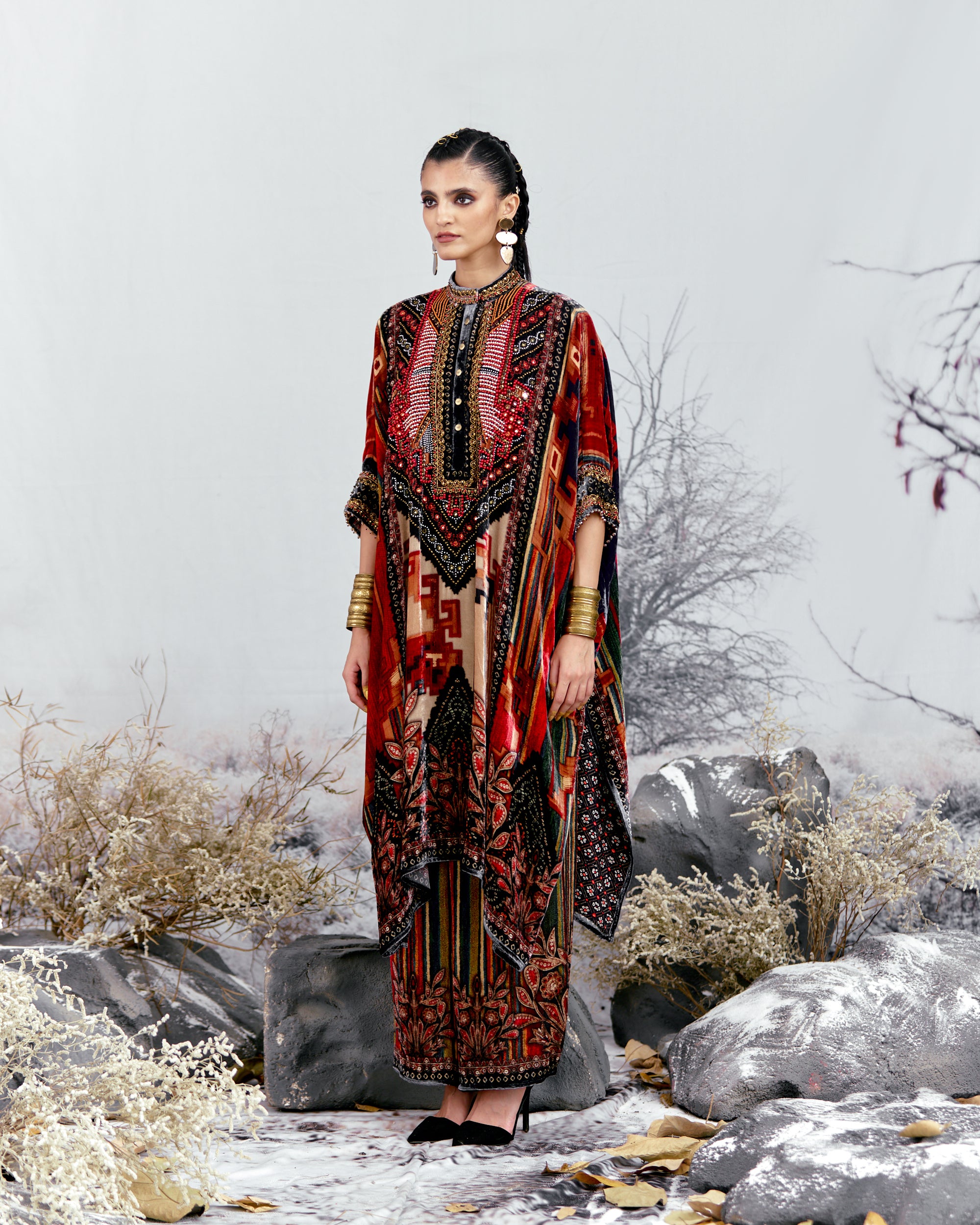 This tunic comes with a coordinating printed palazzo pant which can be ordered as per the drop down menu as a set.