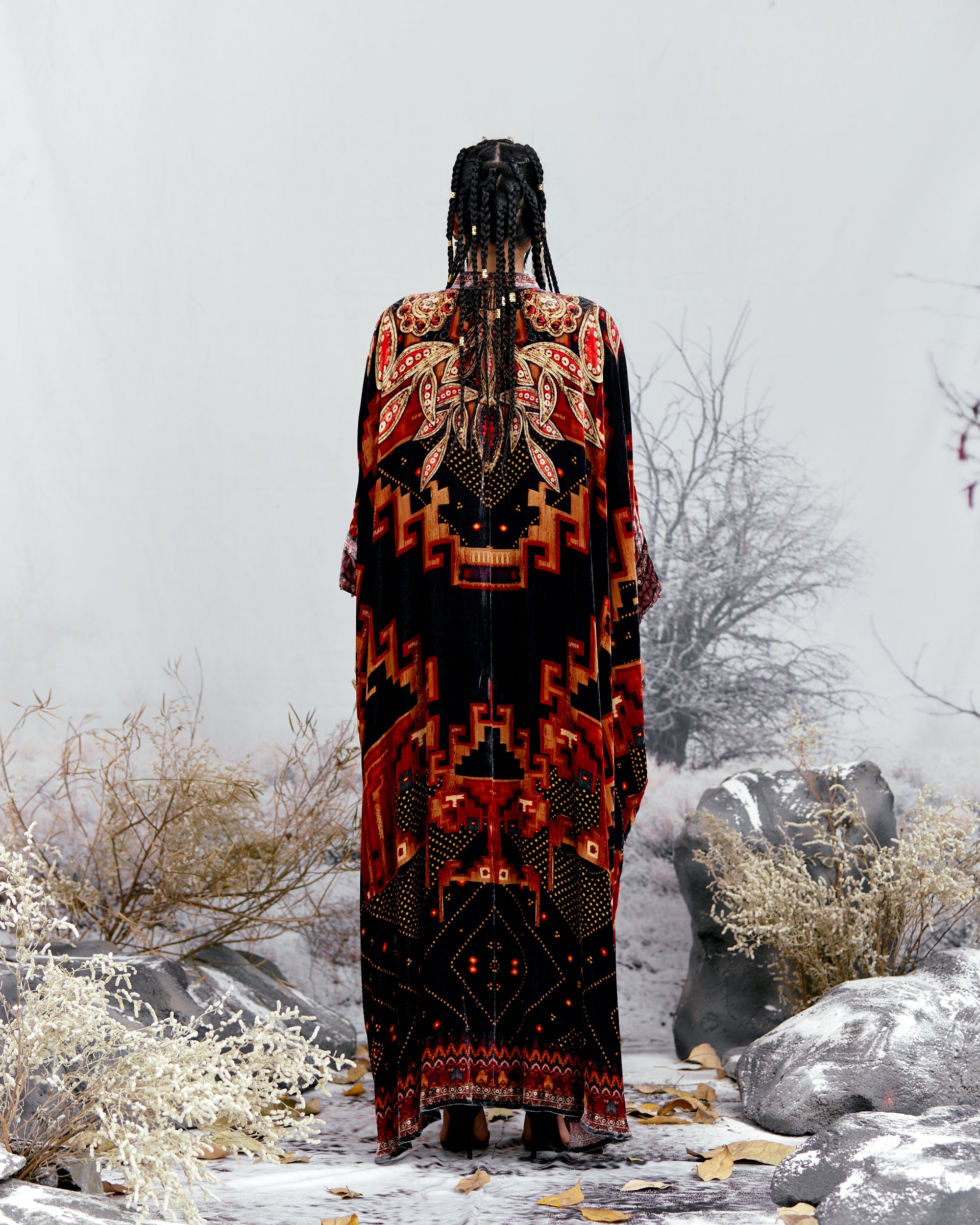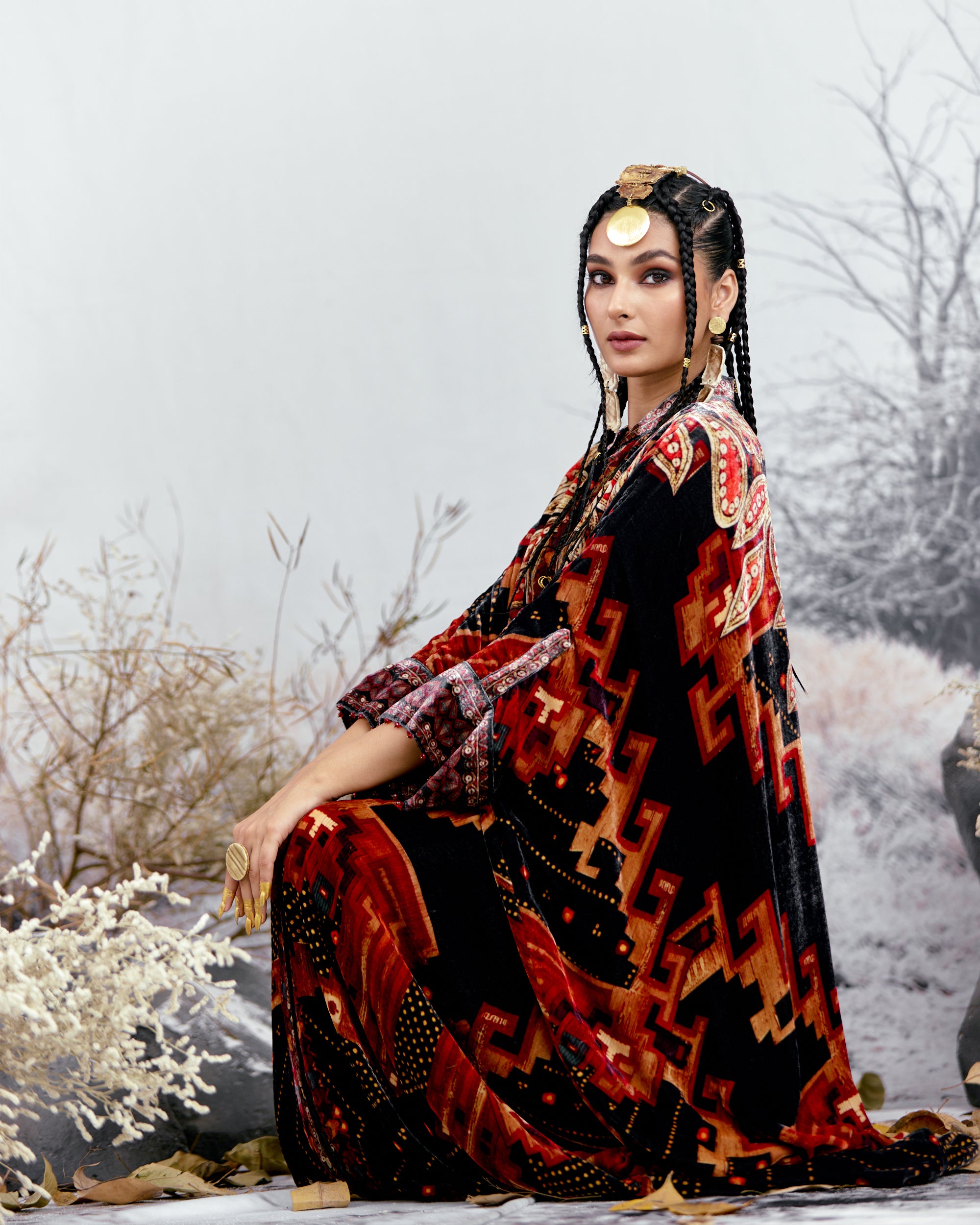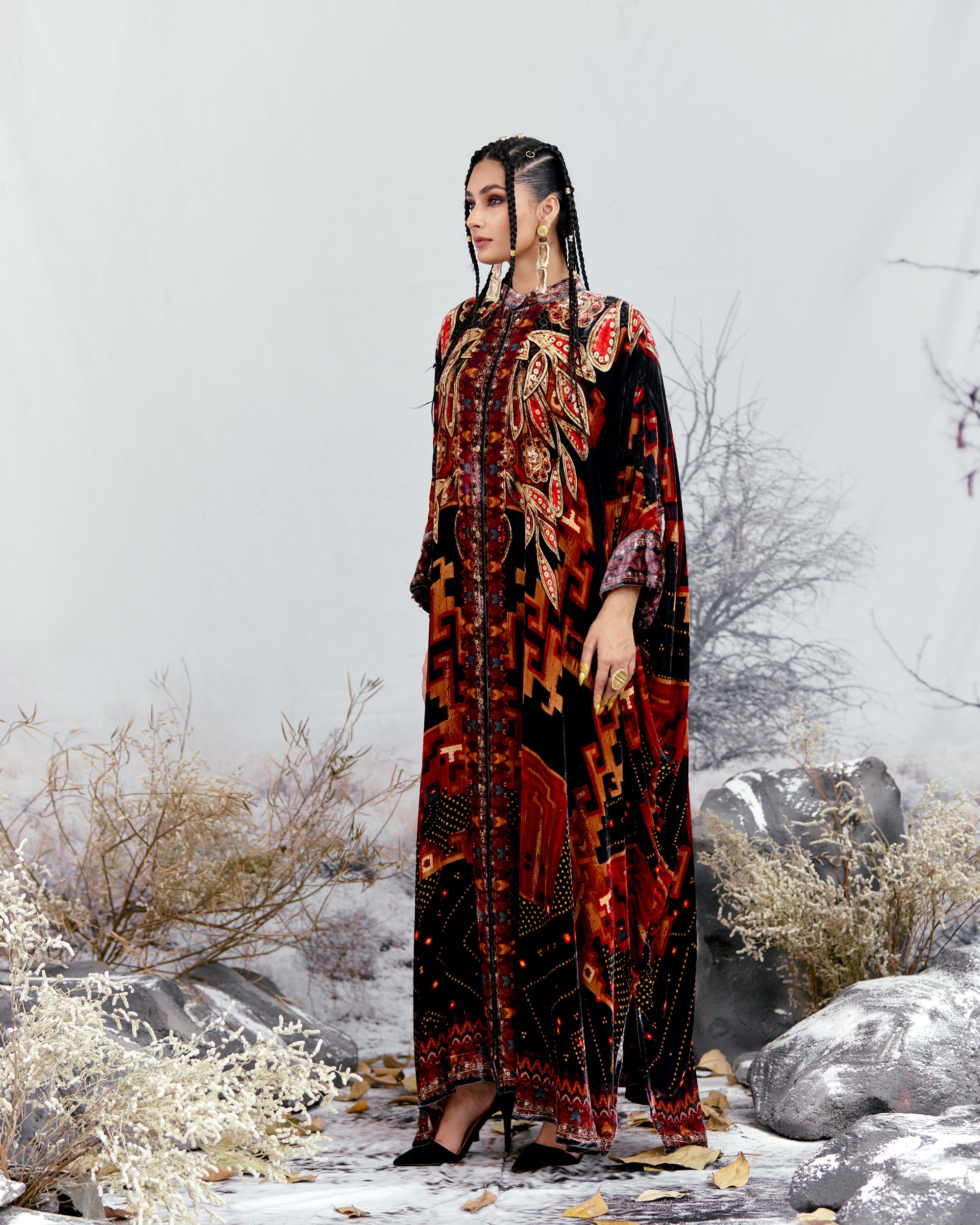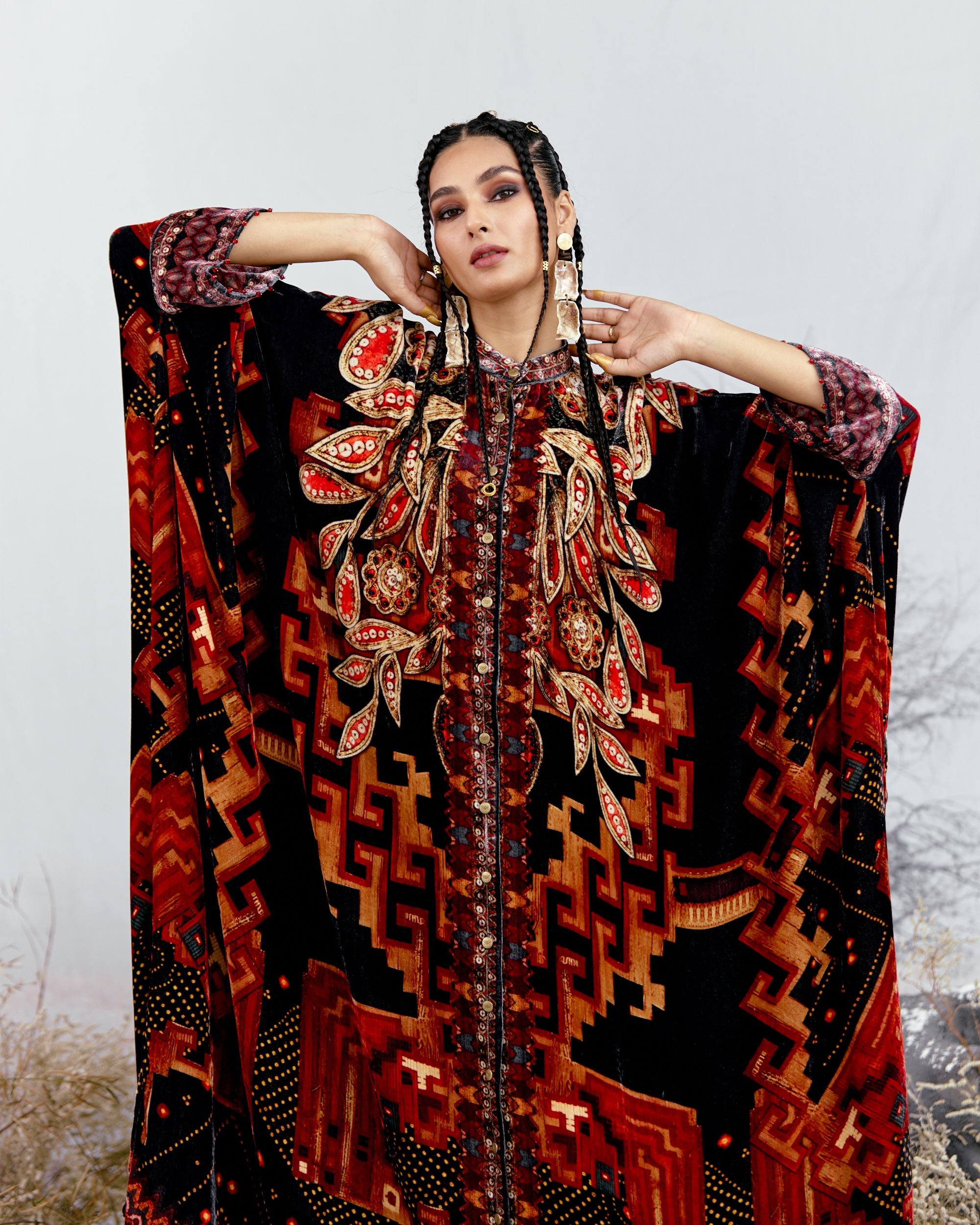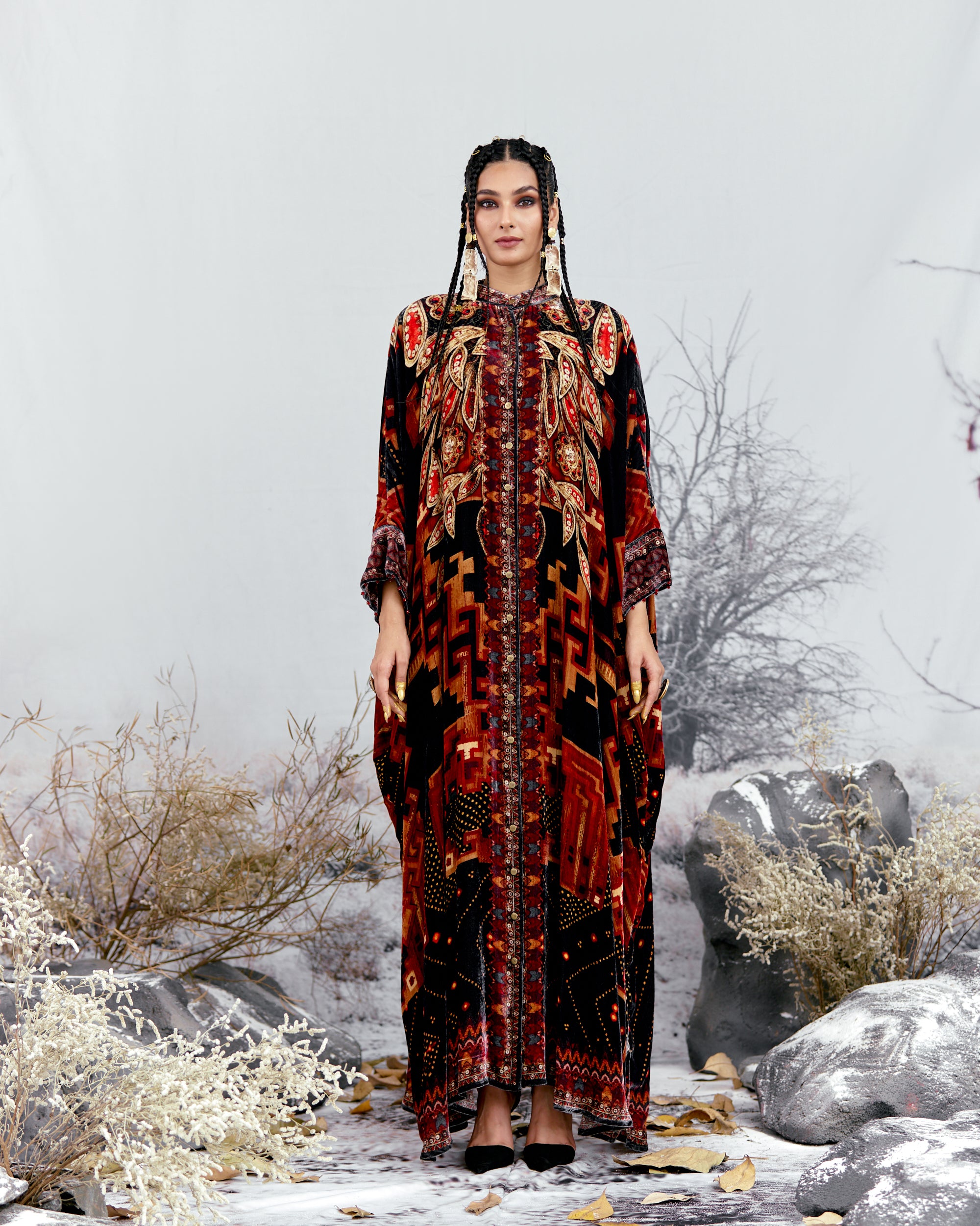 The Kaftan is a usual "Free Size" Kaftan Shirt of about 58" length but you may let us know the exact length needed by emailing us on store@ranawat.com or by entering your length in the "Notes" before Checkout.