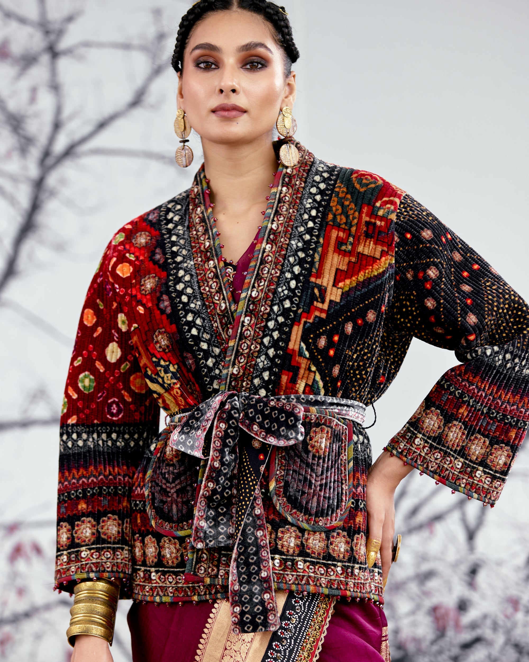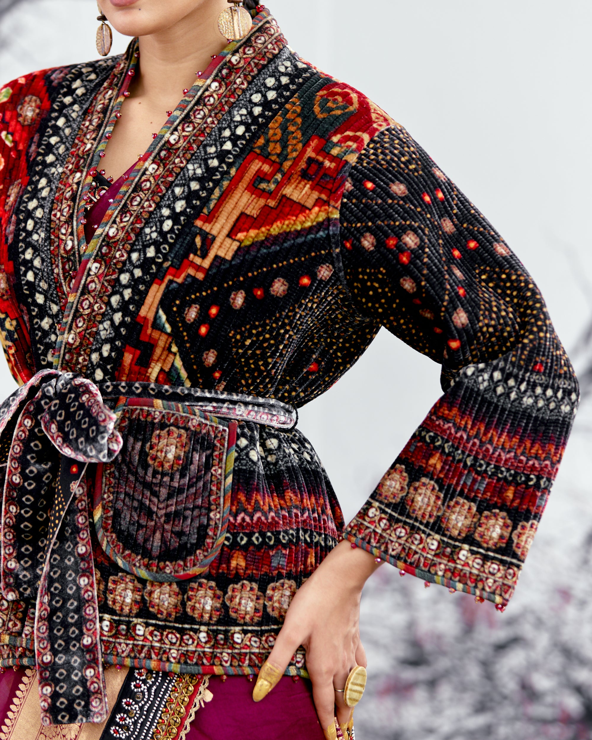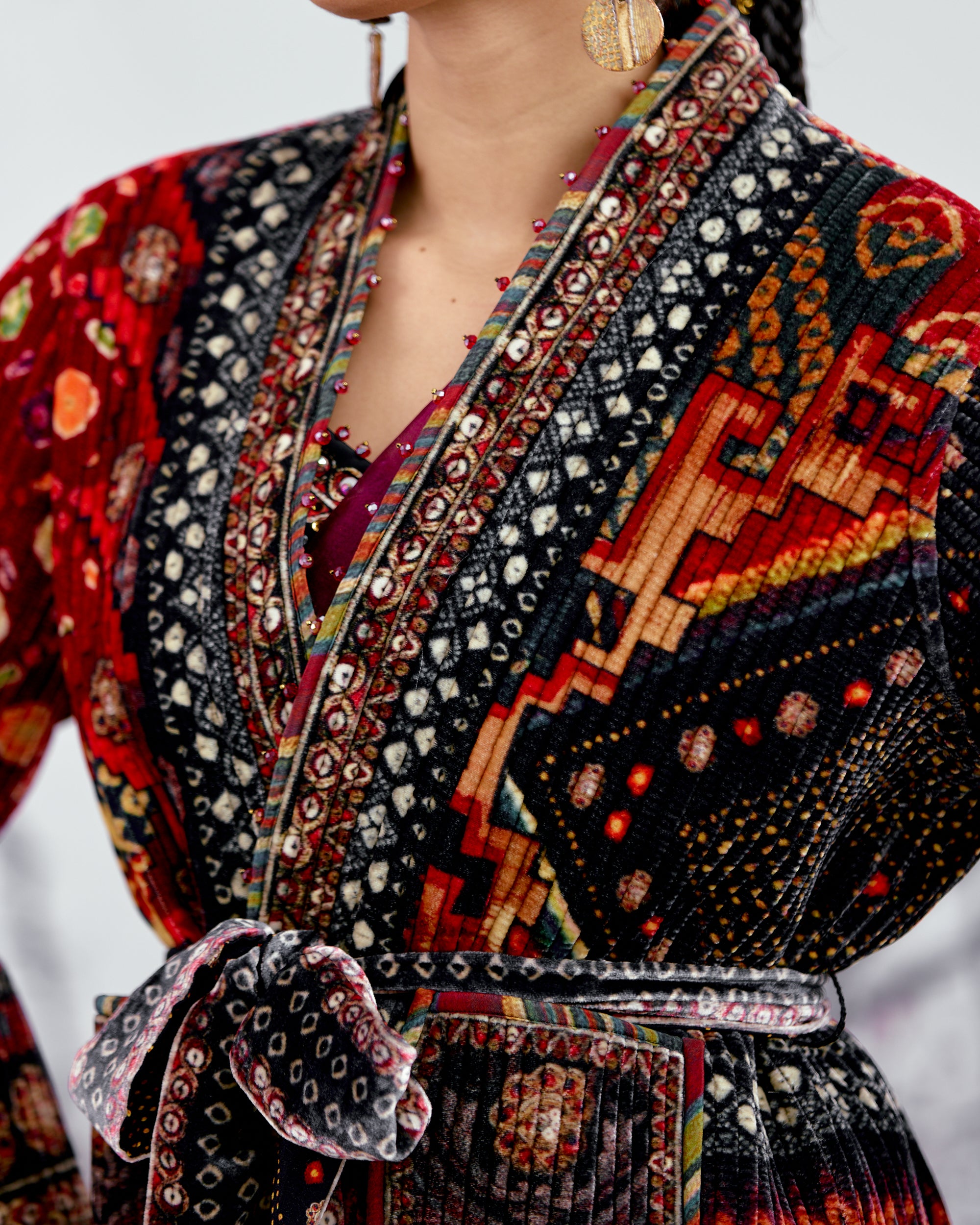The Kimono Jacket is fully quilted on a printed base with a coordinating printed lining inside.
