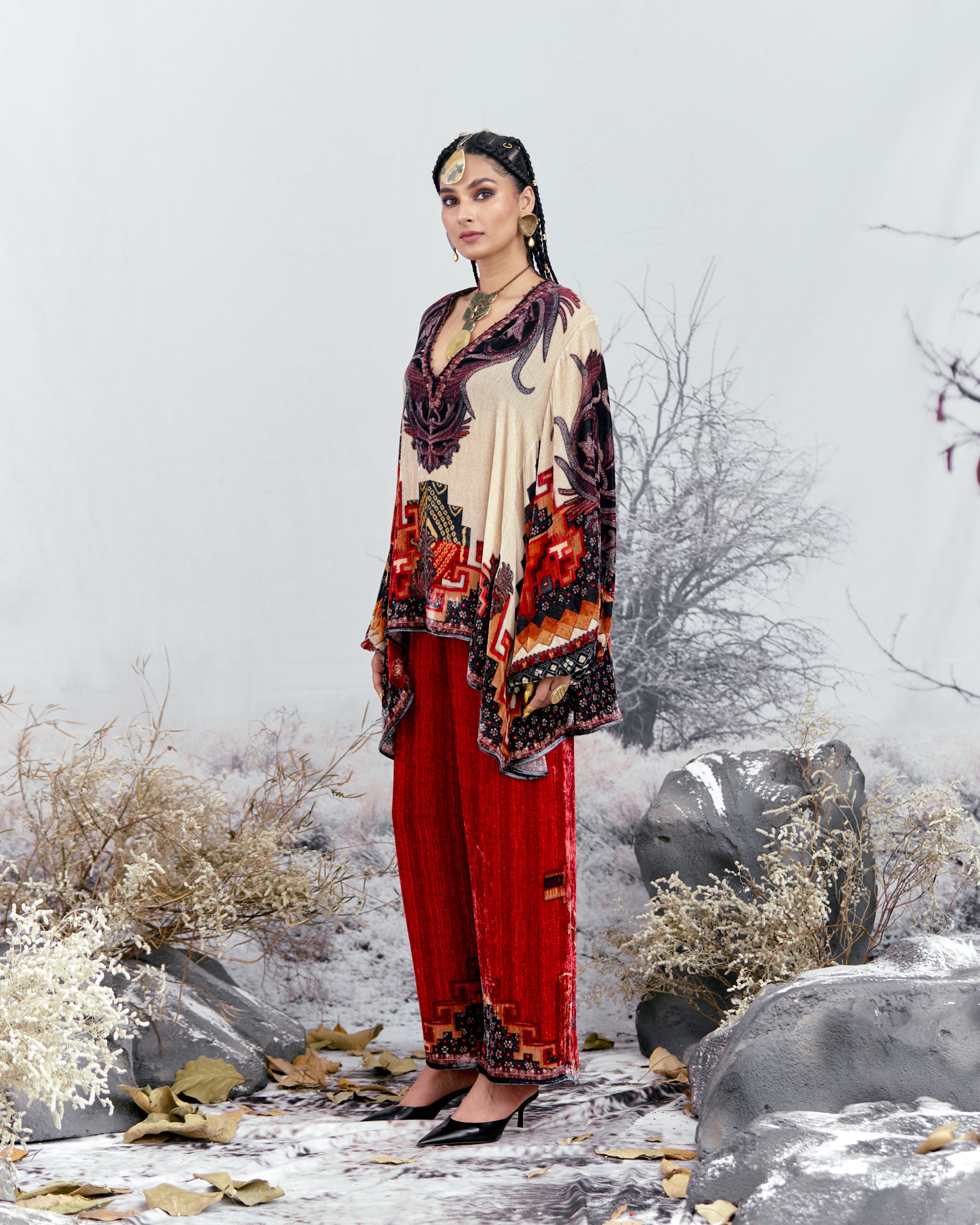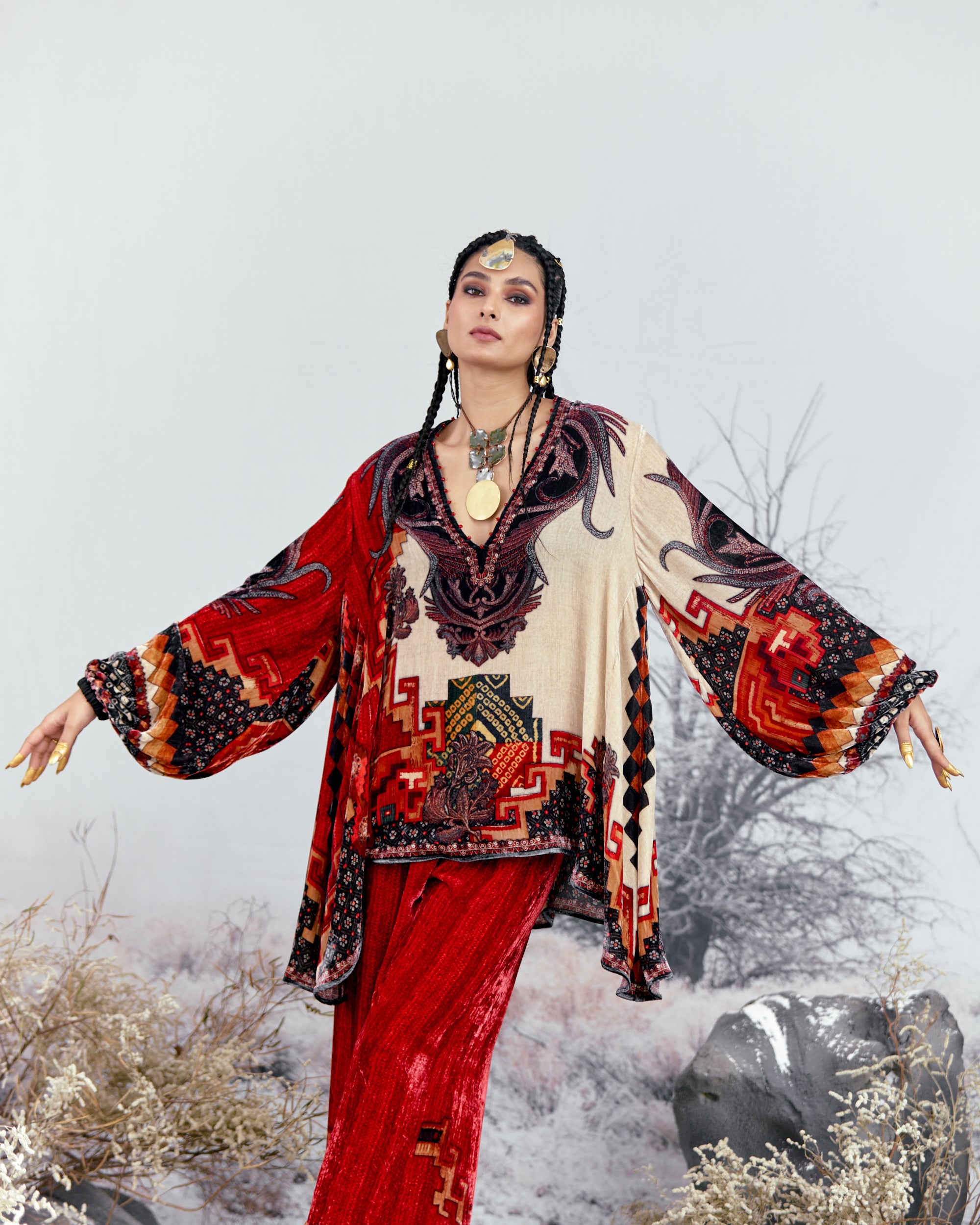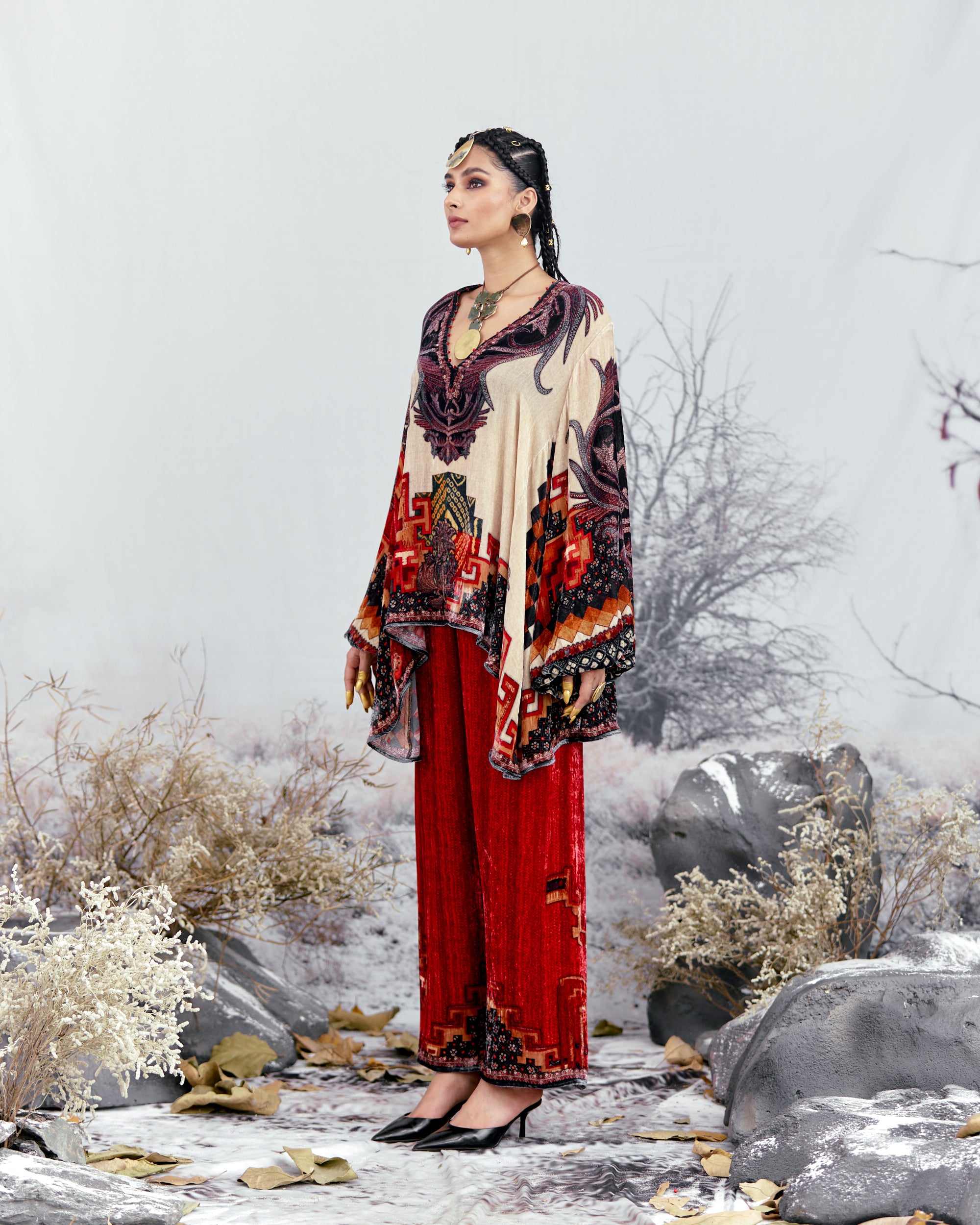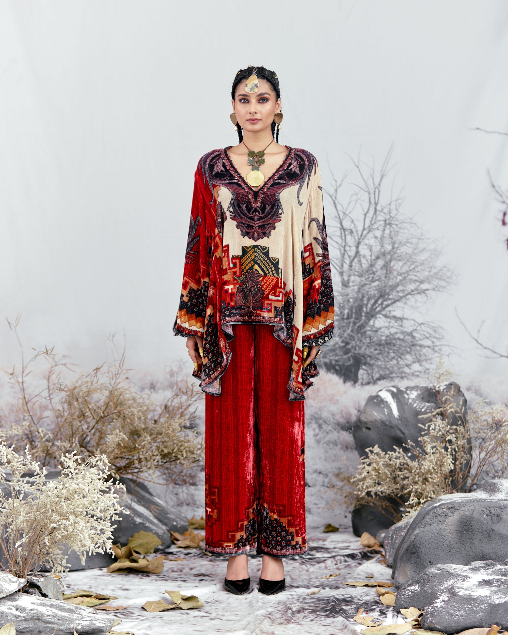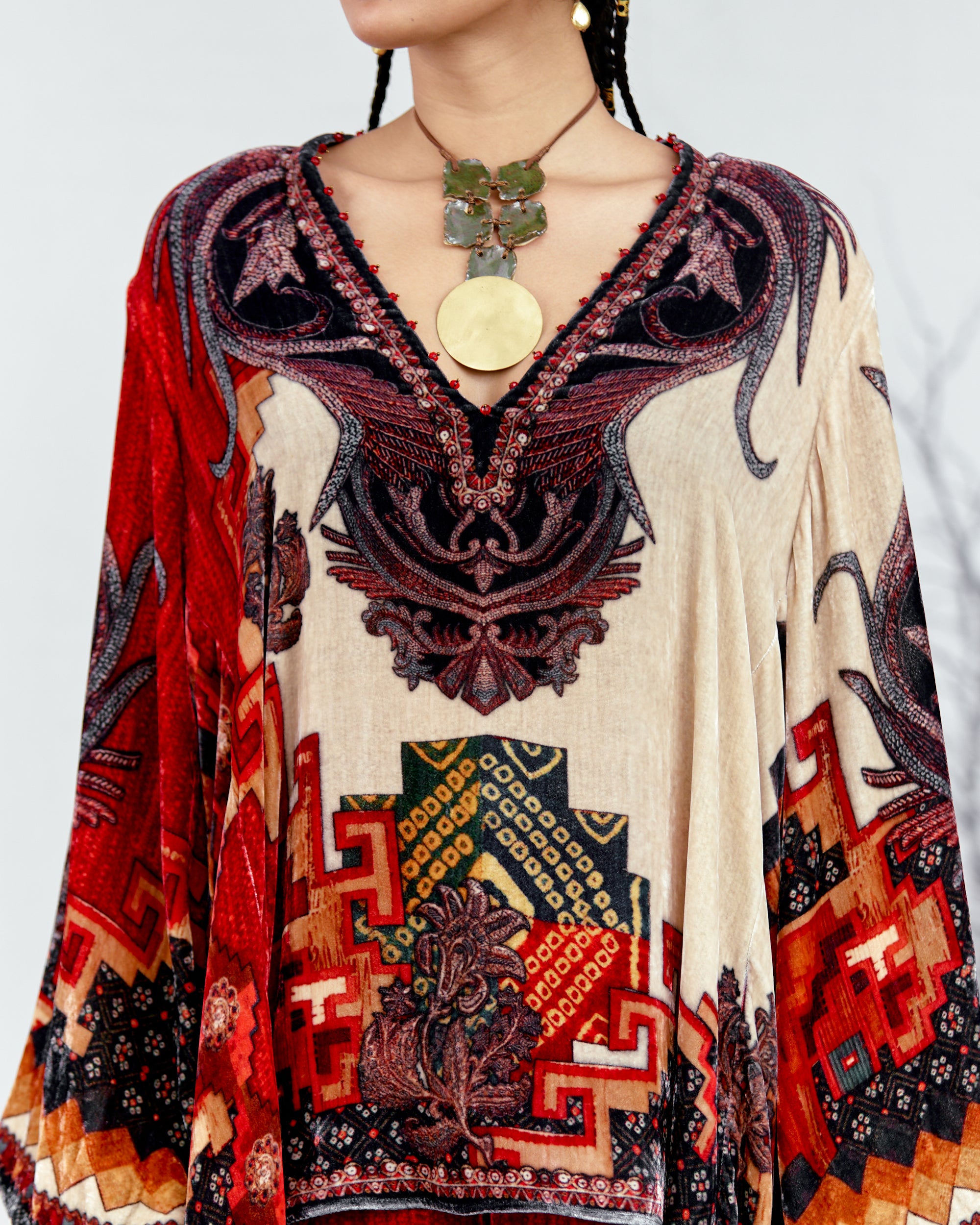 This tunic can also teamed with a coordinating Printed palazzos with a printed border at the hem.