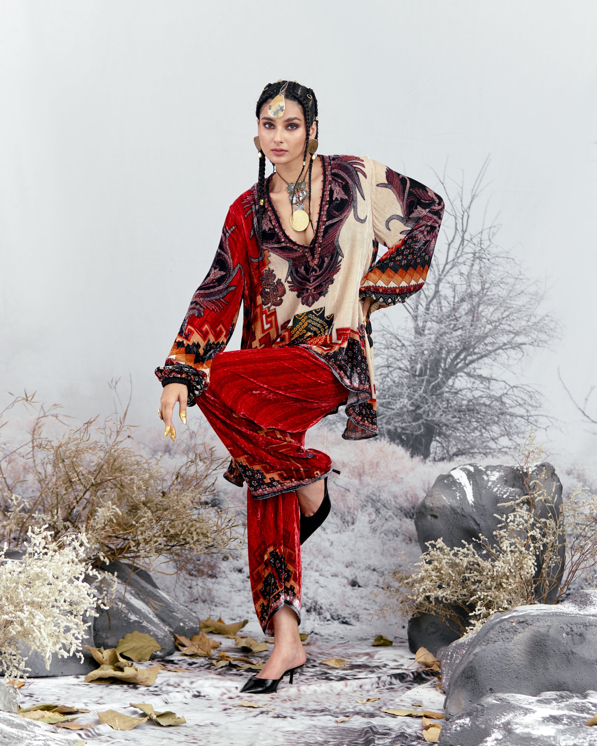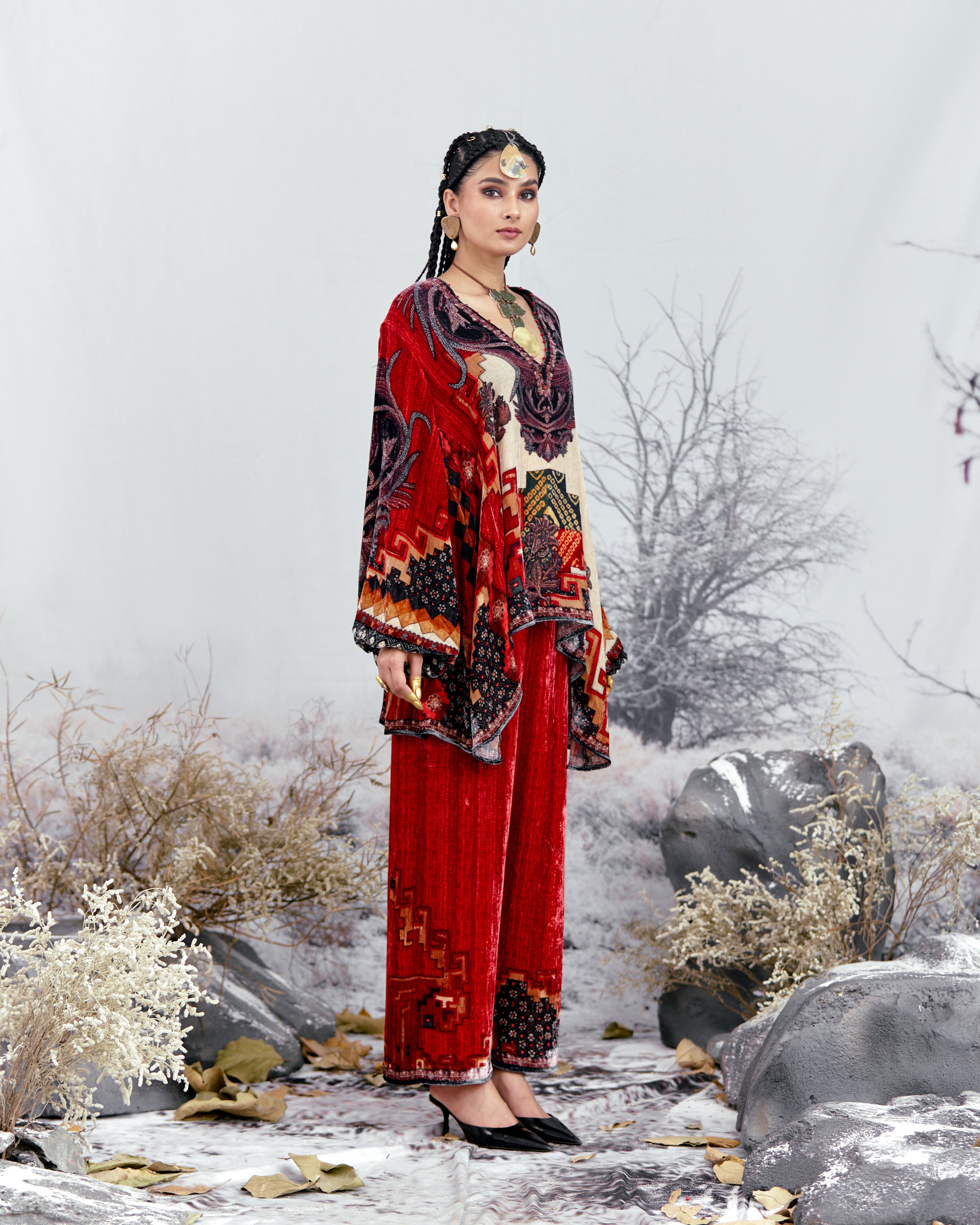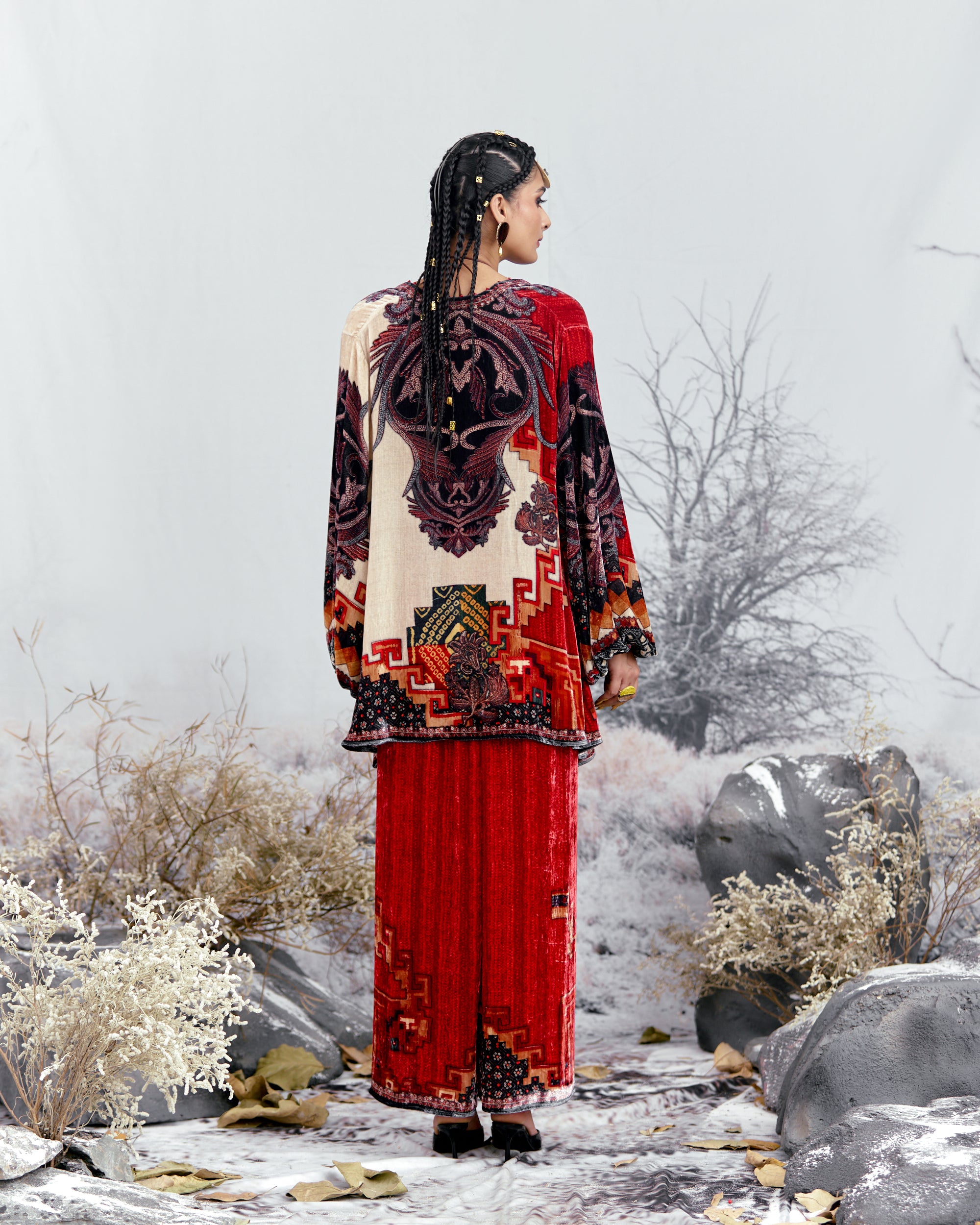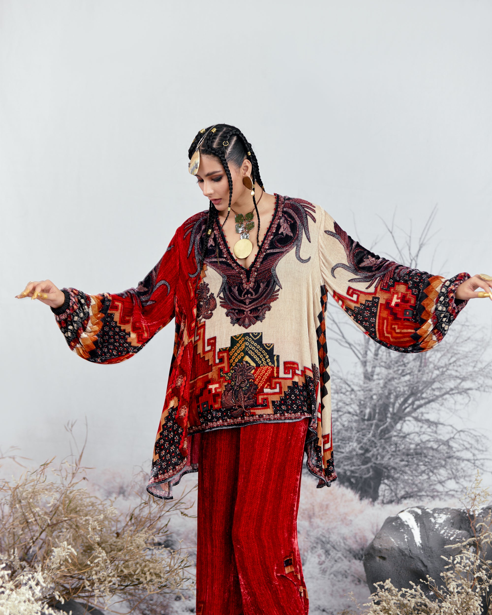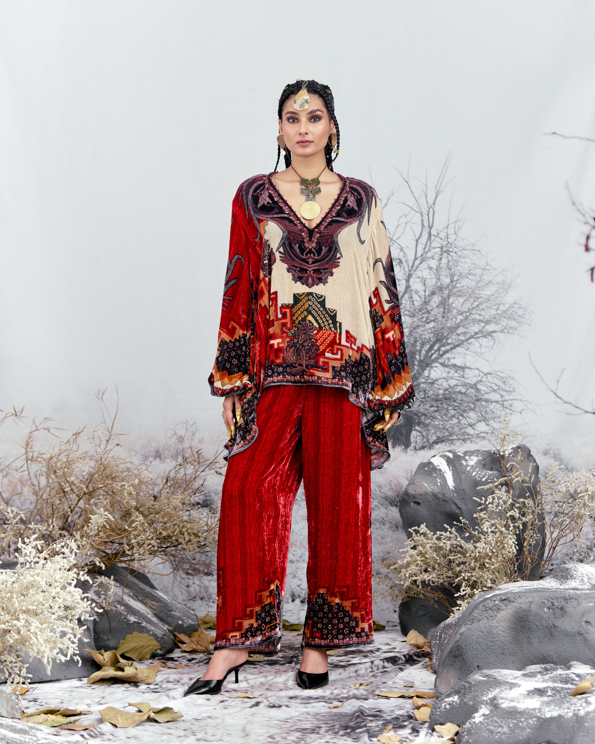 This tunic can also teamed with a coordinating Printed palazzos with a printed border at the hem.