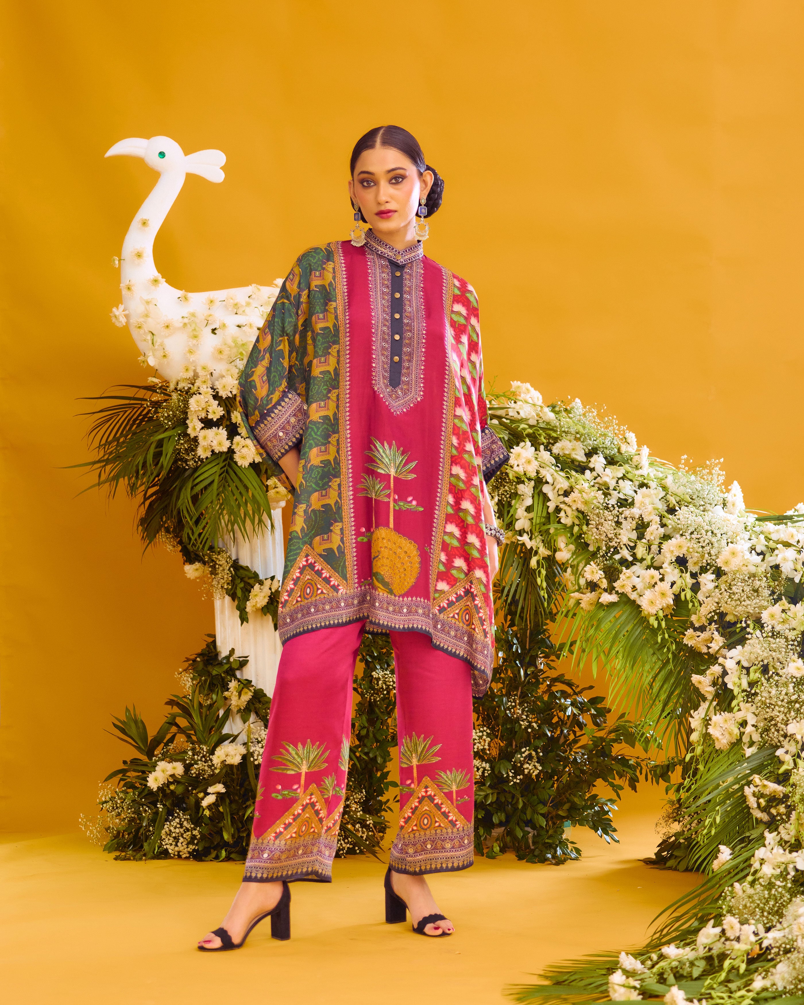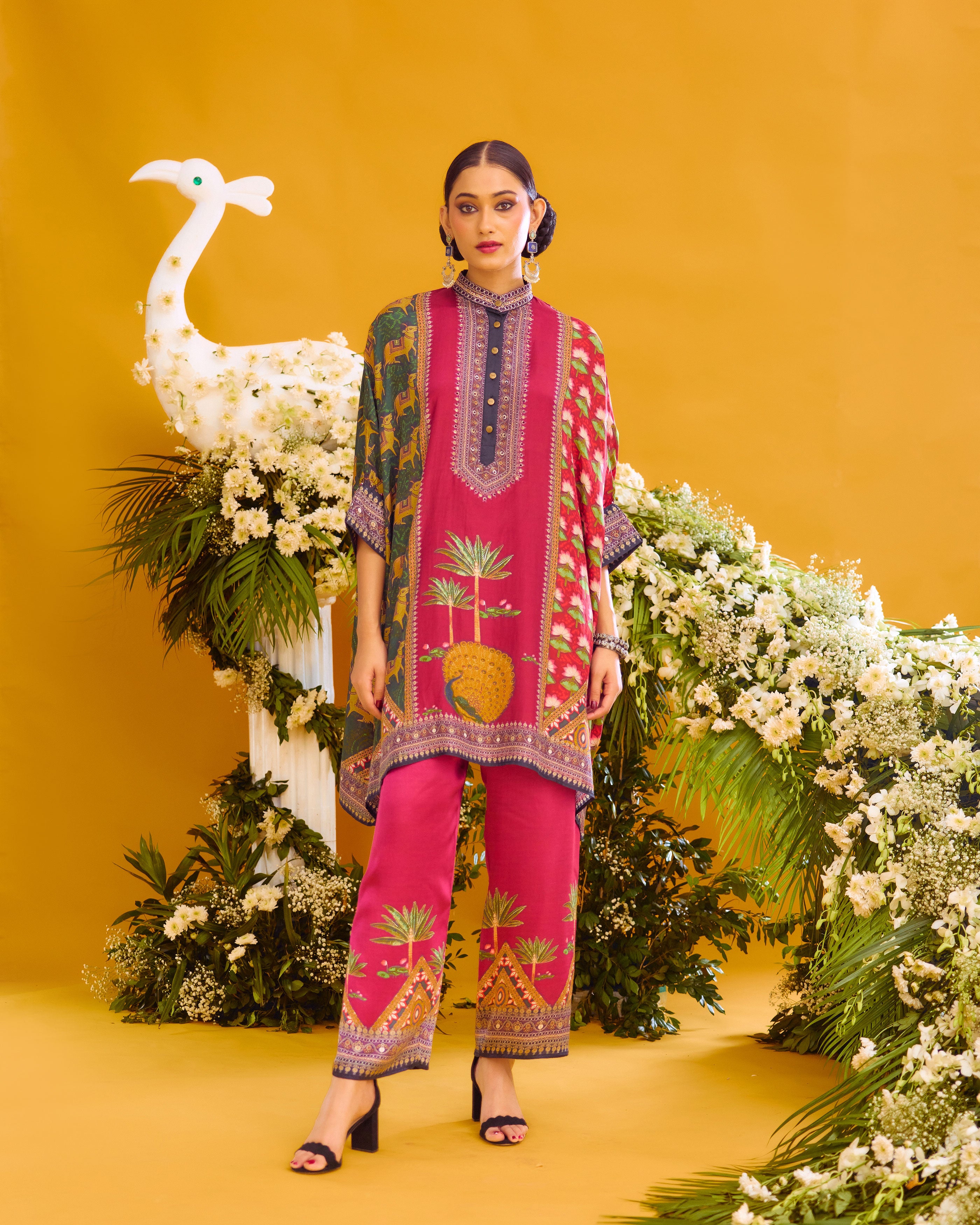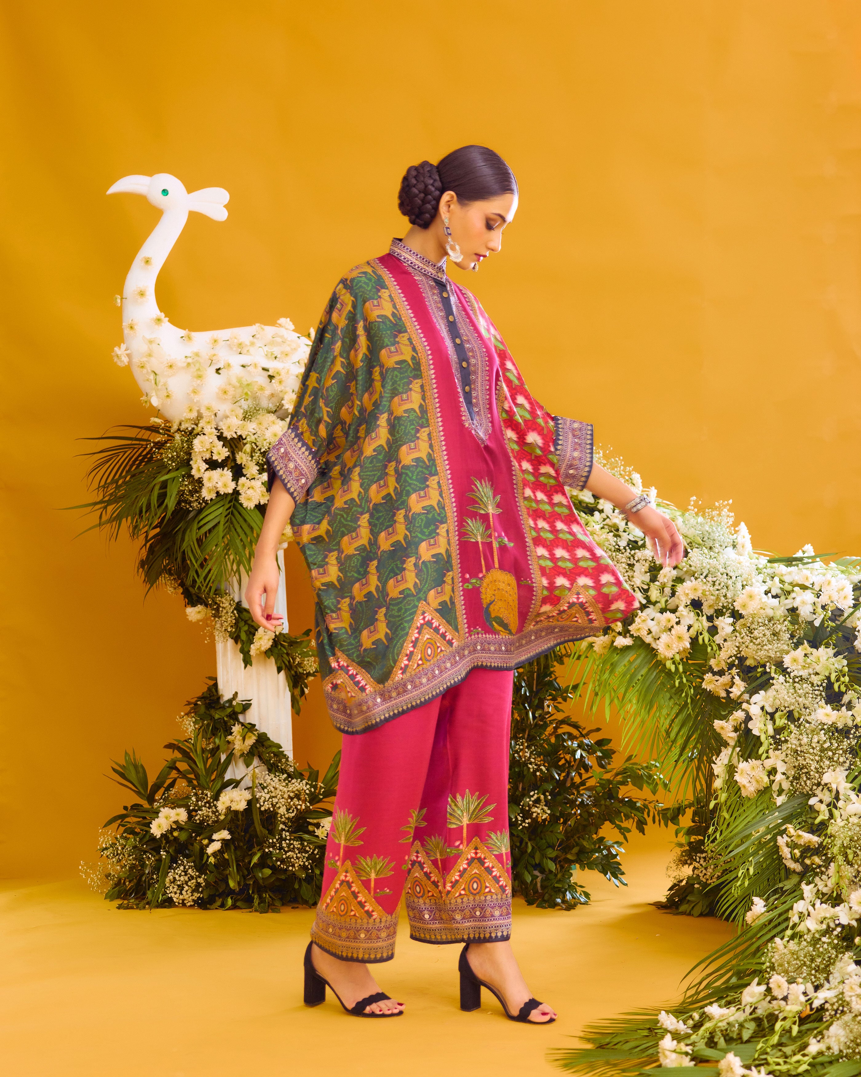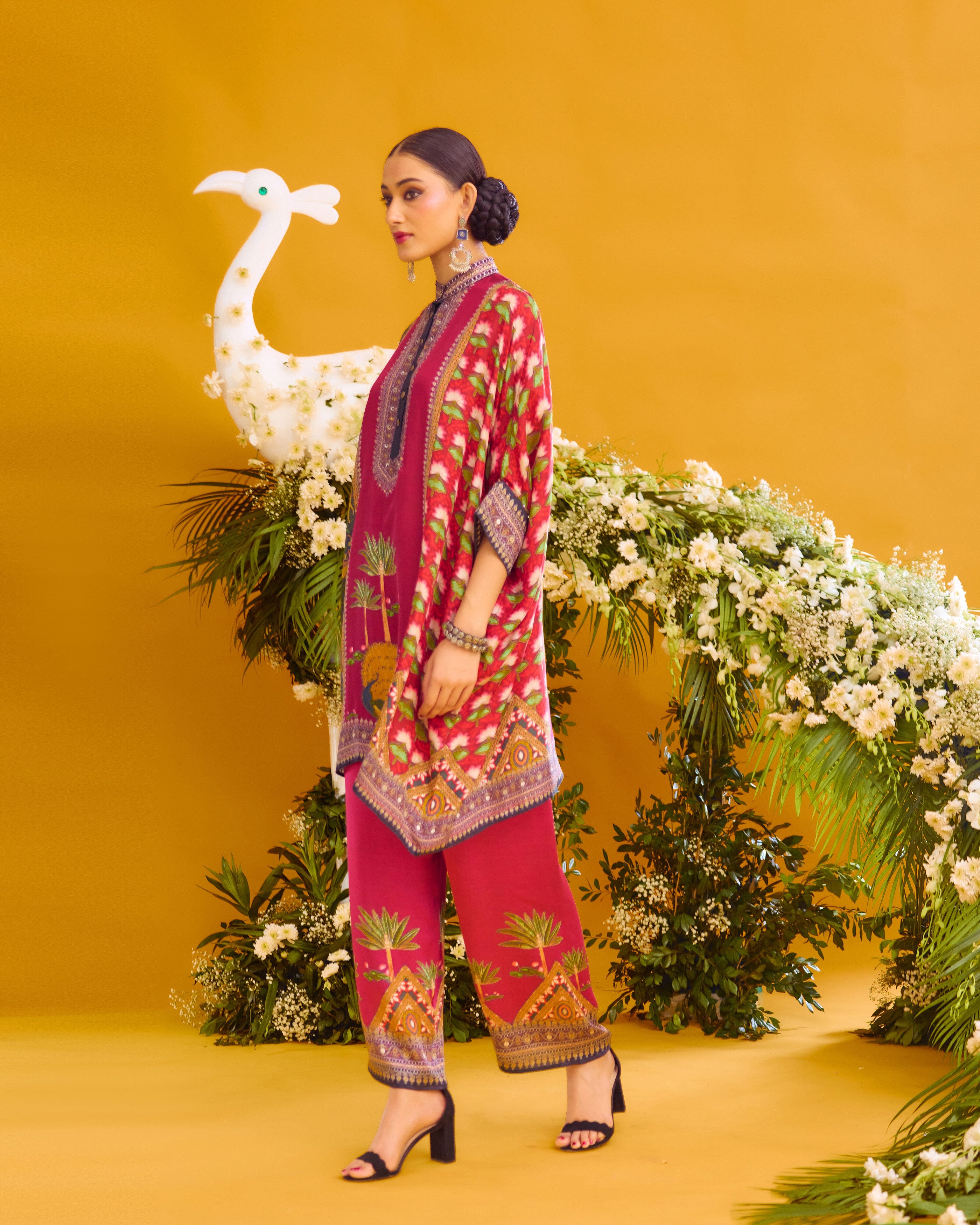 This tunic comes with a coordinating printed Palazzo pant which can be ordered as per the drop down menu as a set.