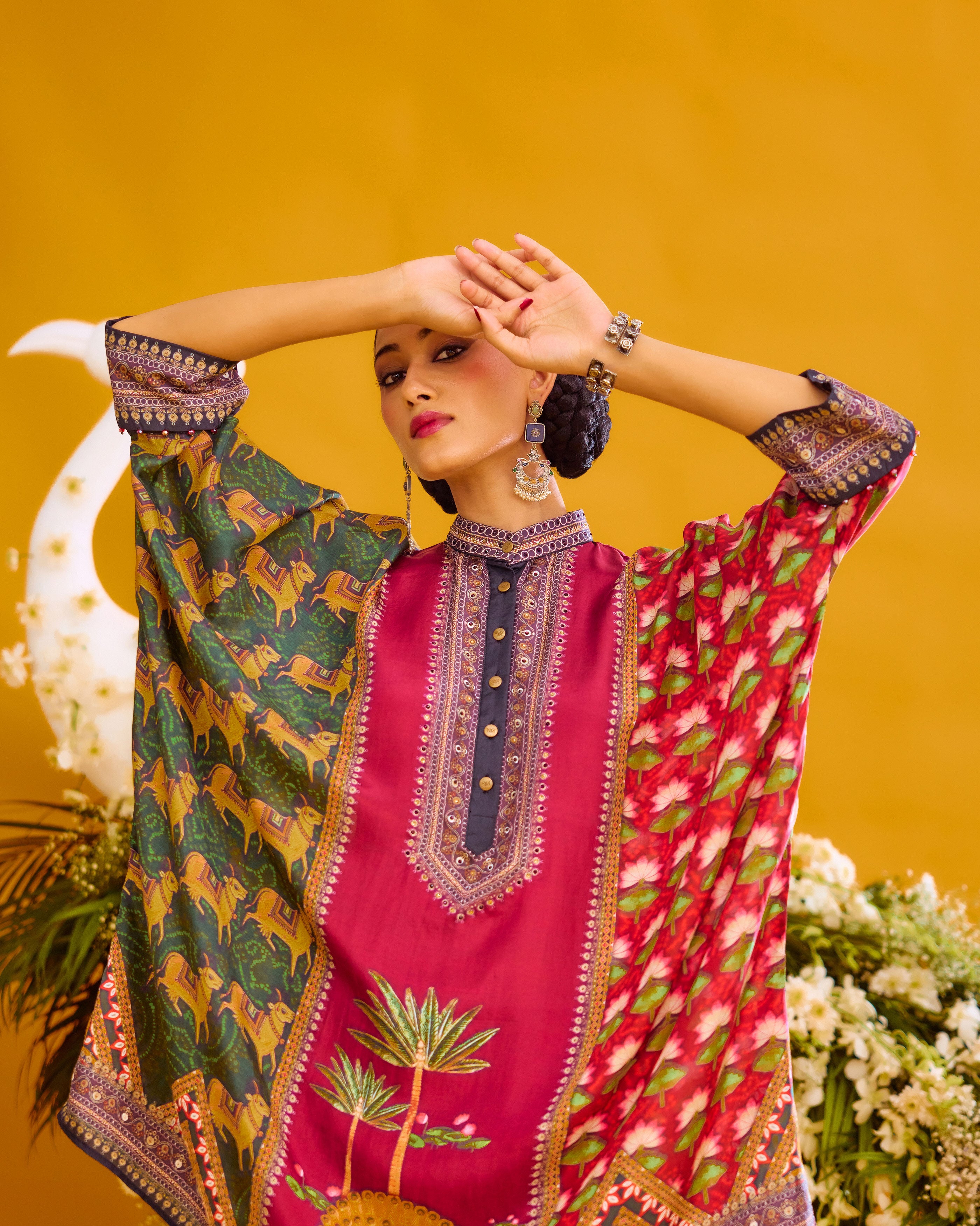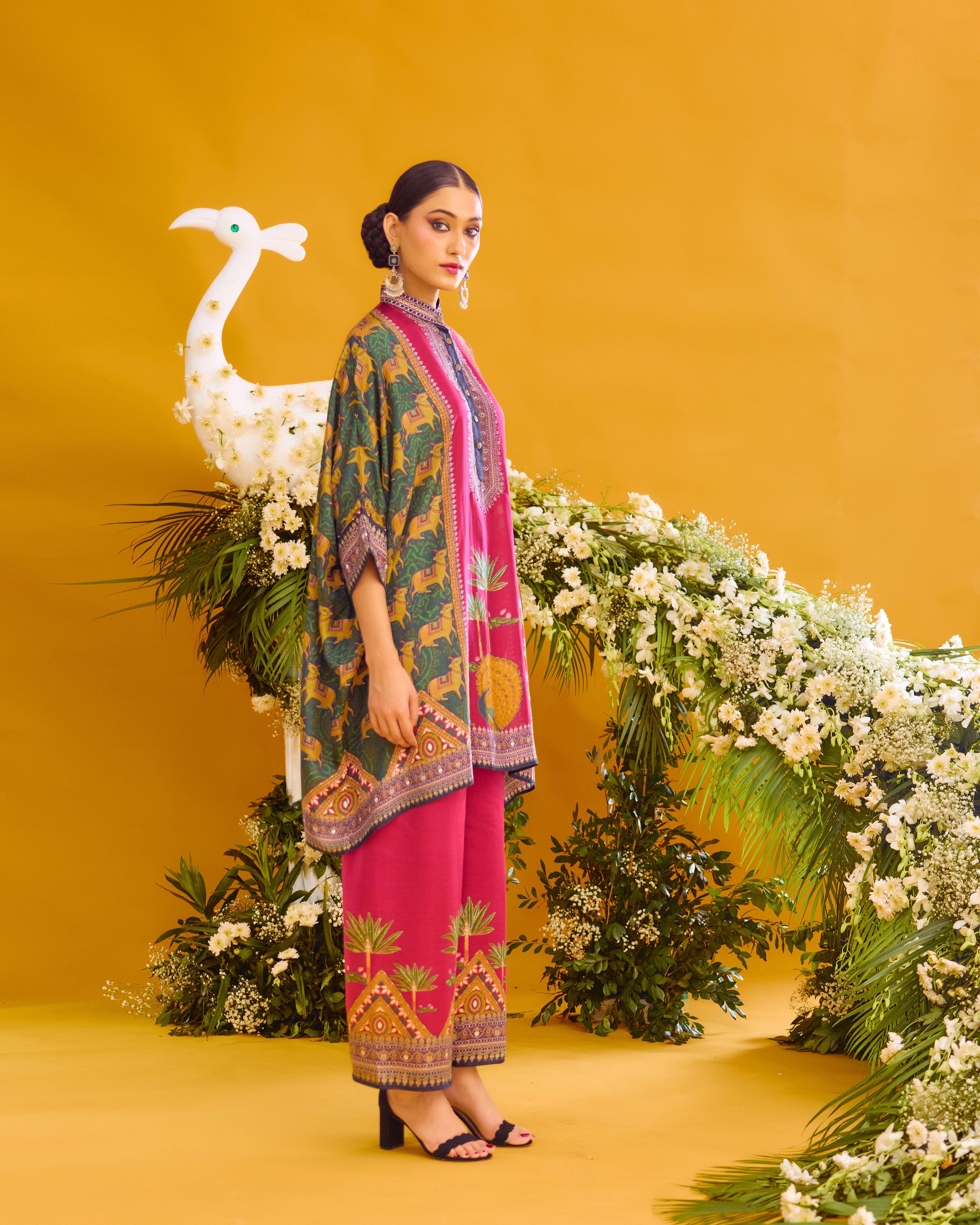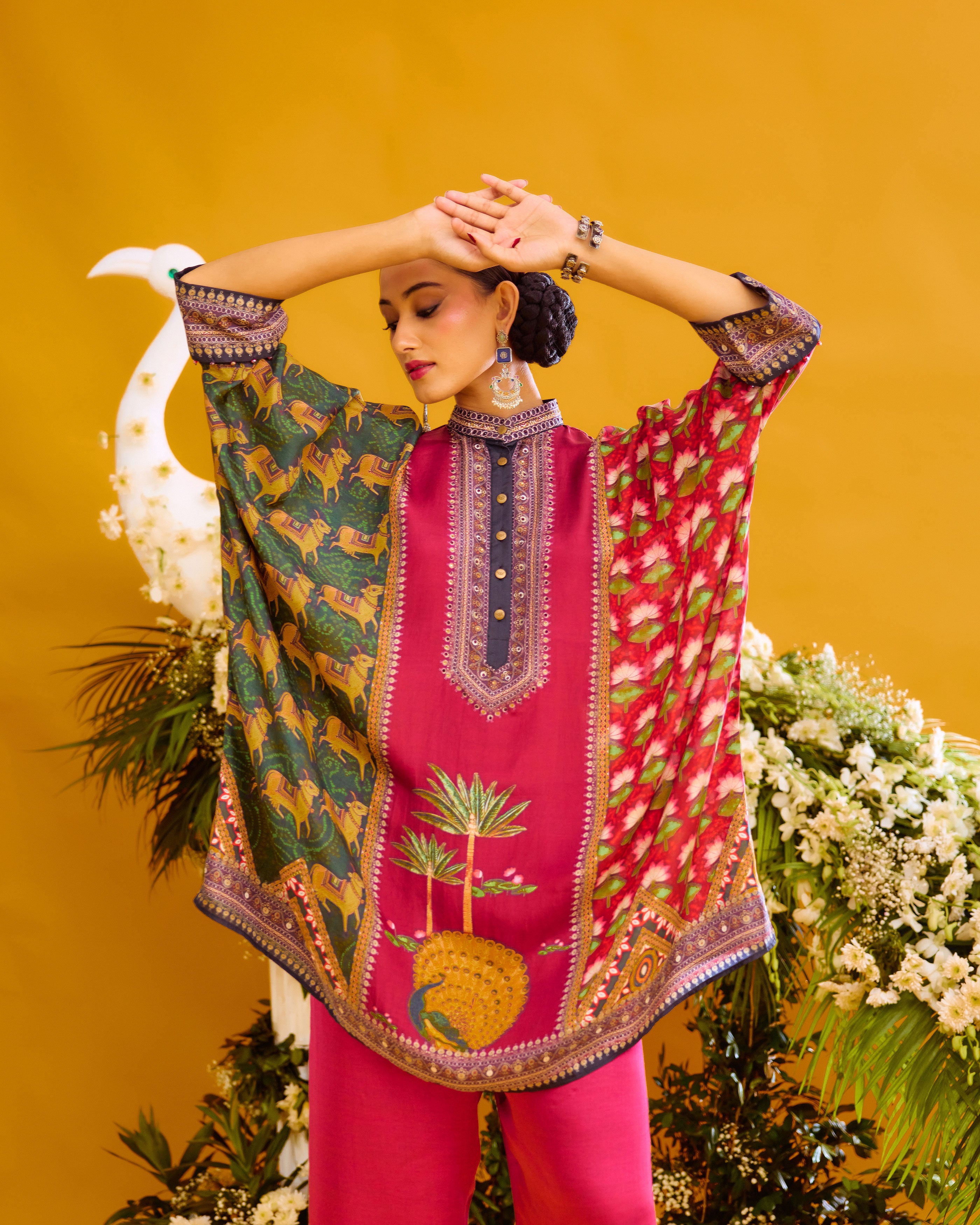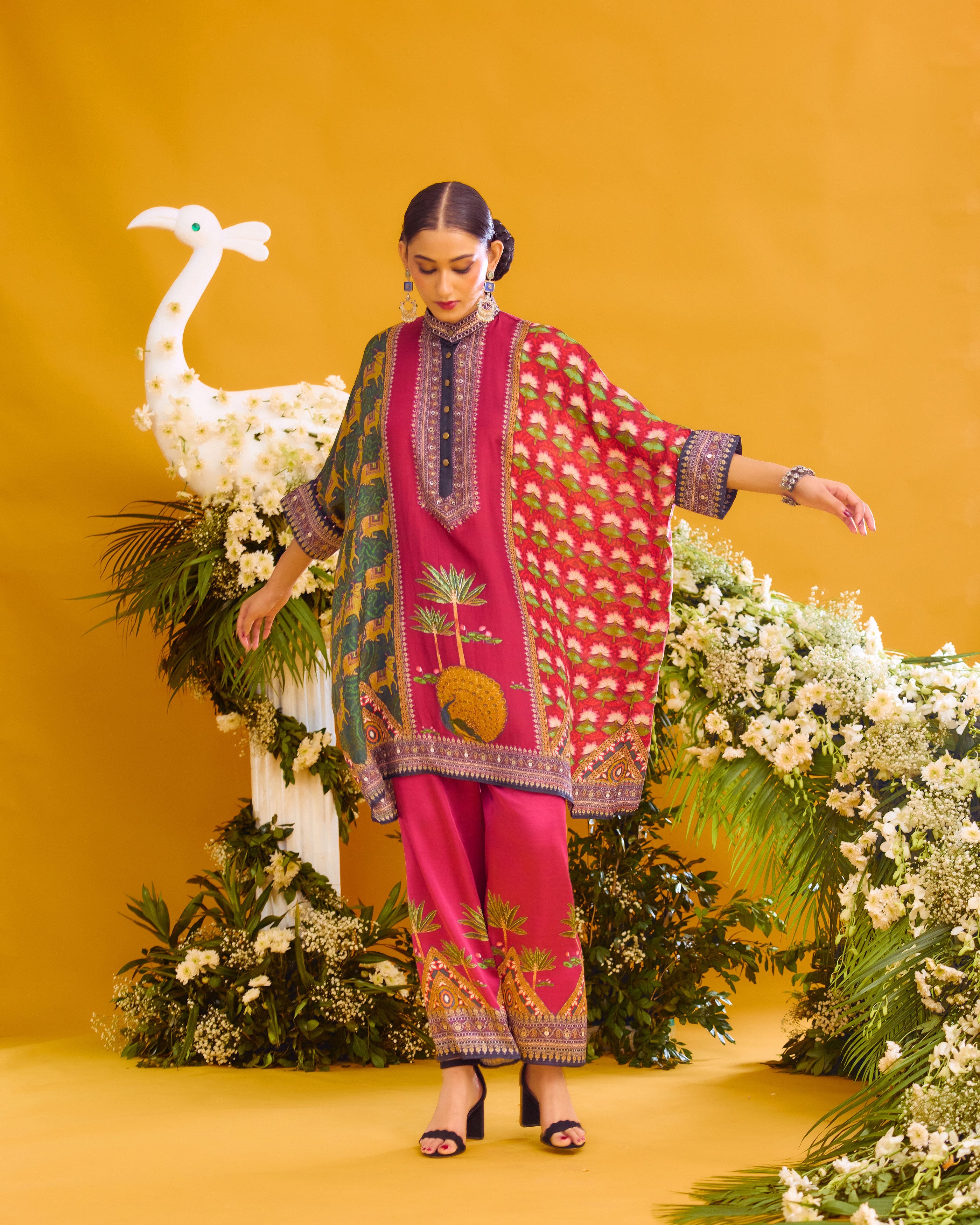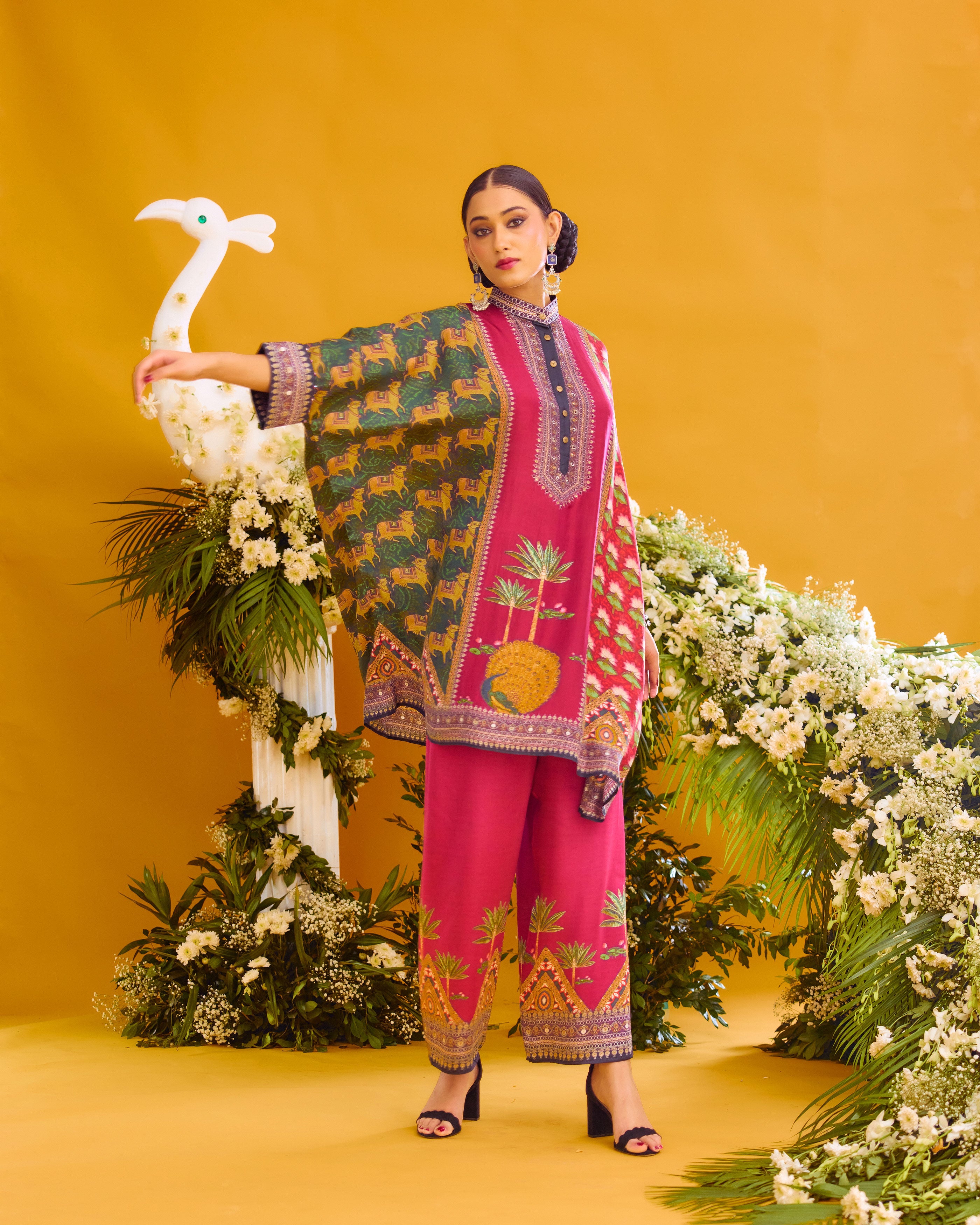 This tunic comes with a coordinating printed Palazzo pant which can be ordered as per the drop down menu as a set.